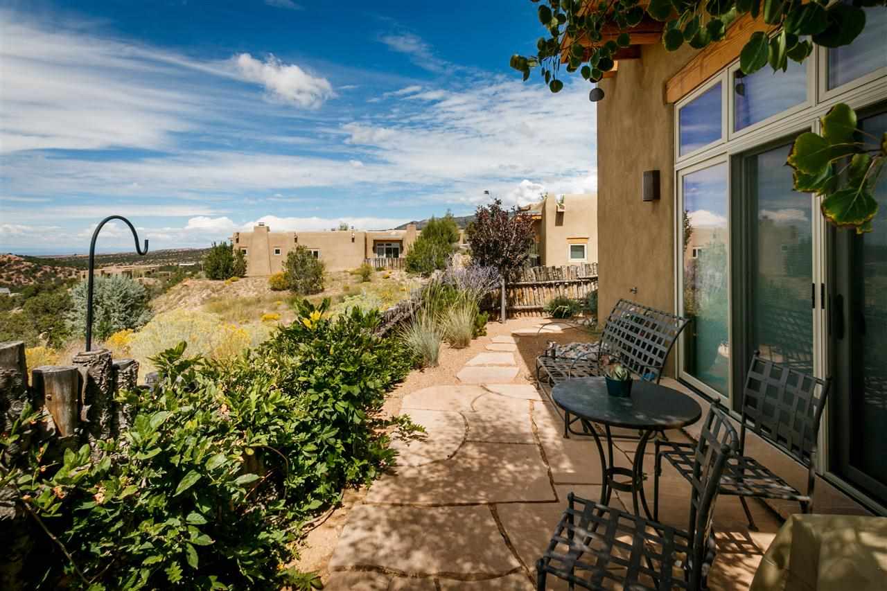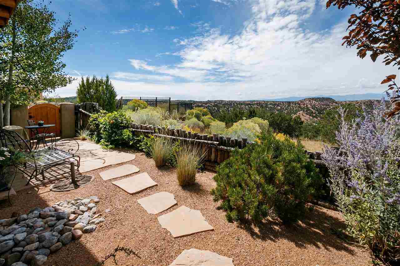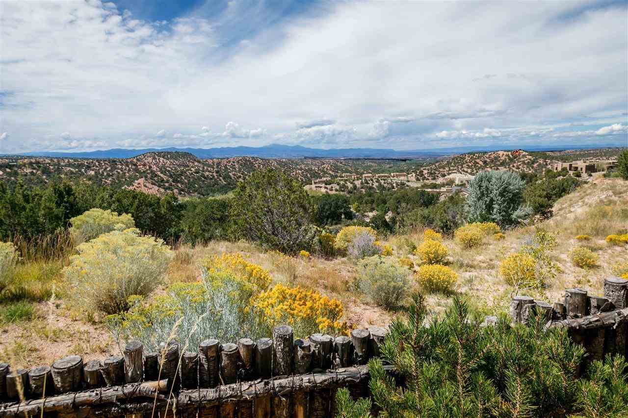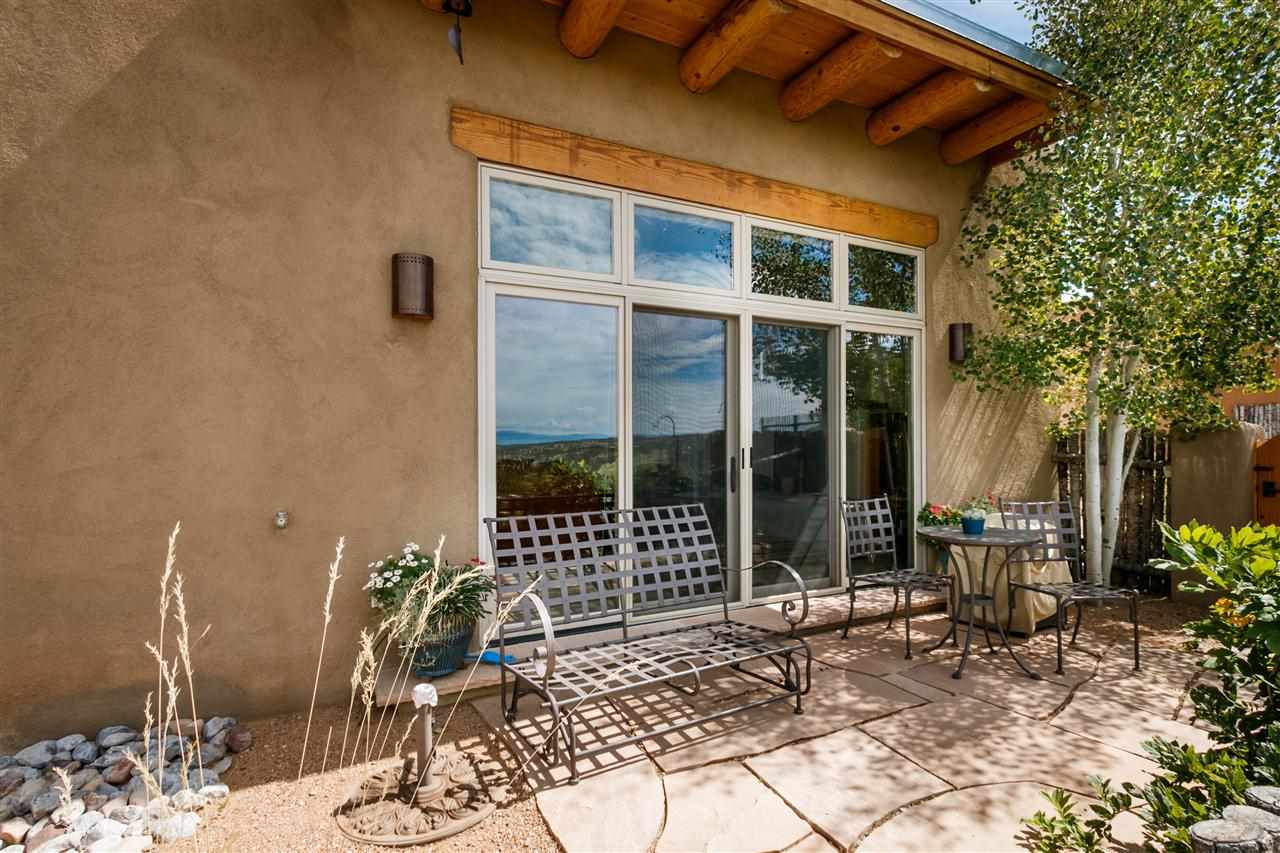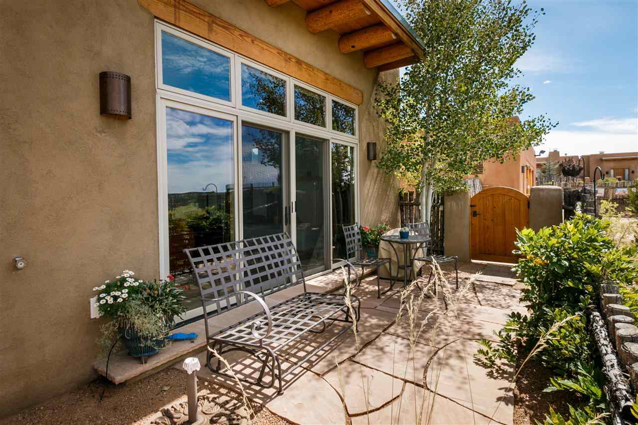 Stupendous Jemez mountain views from this freestanding unit above the iconic Bishops Lodge. Well laid out home to capture the views. Two well sized bedroom suites each with fireplace. Plenty of Santa Fe style with vigas, hard trowel plaster, tile floors, granite counters. Central a/c. One of the early buyers in the Bishops Villas development, the sellers chose this home as it is does not overlook a road nor another unit but instead, the open natural landscape with the valley and mountains beyond. Also handy to the pool. Meticulously maintained and lightly used second home. Can join the rental program at B. Lodge. Dues cover security gate, CAM, insurance, roads and pool/clubhouse.