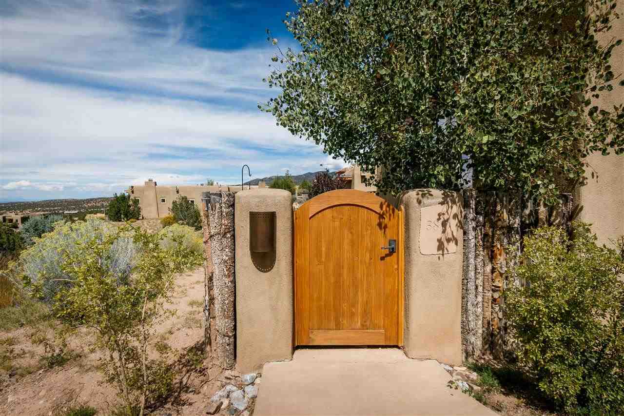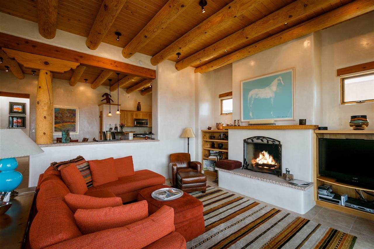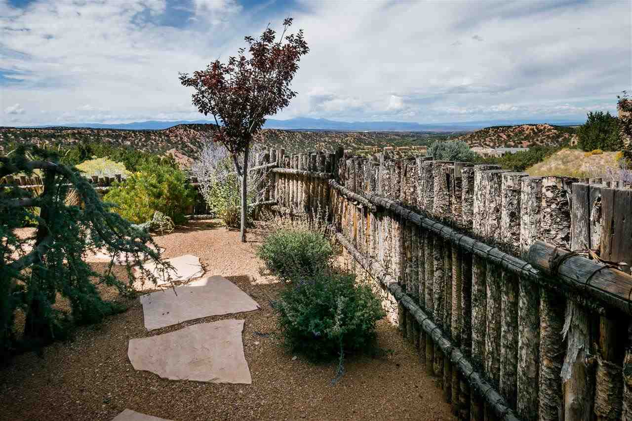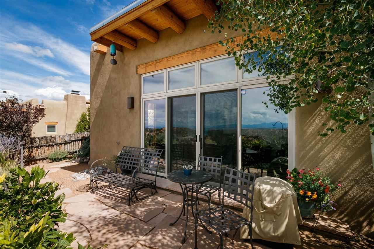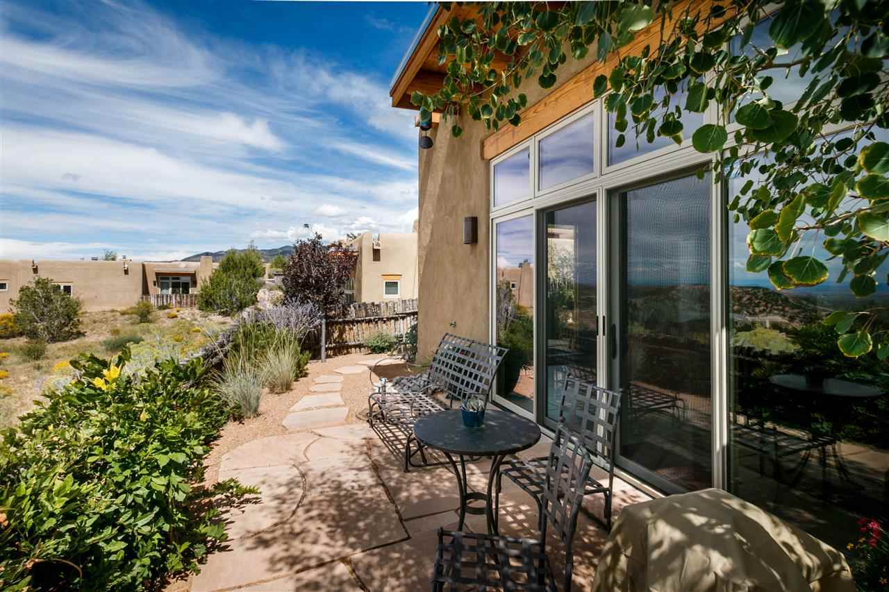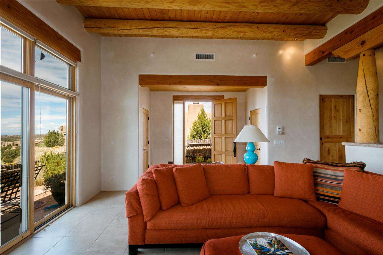 Stupendous Jemez mountain views from this freestanding unit above the iconic Bishops Lodge. Well laid out home to capture the views. Two well sized bedroom suites each with fireplace. Plenty of Santa Fe style with vigas, hard trowel plaster, tile floors, granite counters. Central a/c. One of the early buyers in the Bishops Villas development, the sellers chose this home as it is does not overlook a road nor another unit but instead, the open natural landscape with the valley and mountains beyond. Also handy to the pool. Meticulously maintained and lightly used second home. Can join the rental program at B. Lodge. Dues cover security gate, CAM, insurance, roads and pool/clubhouse.