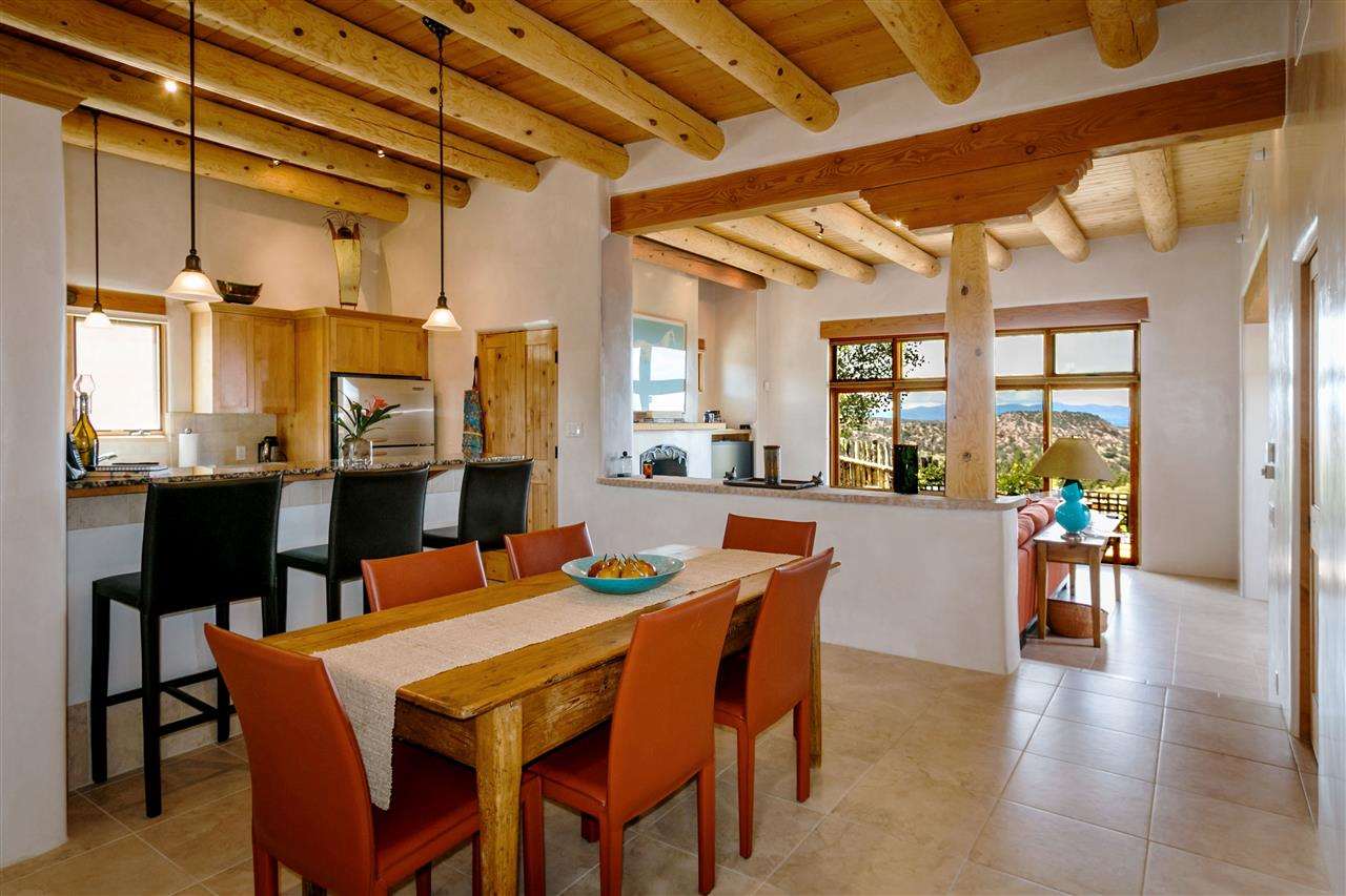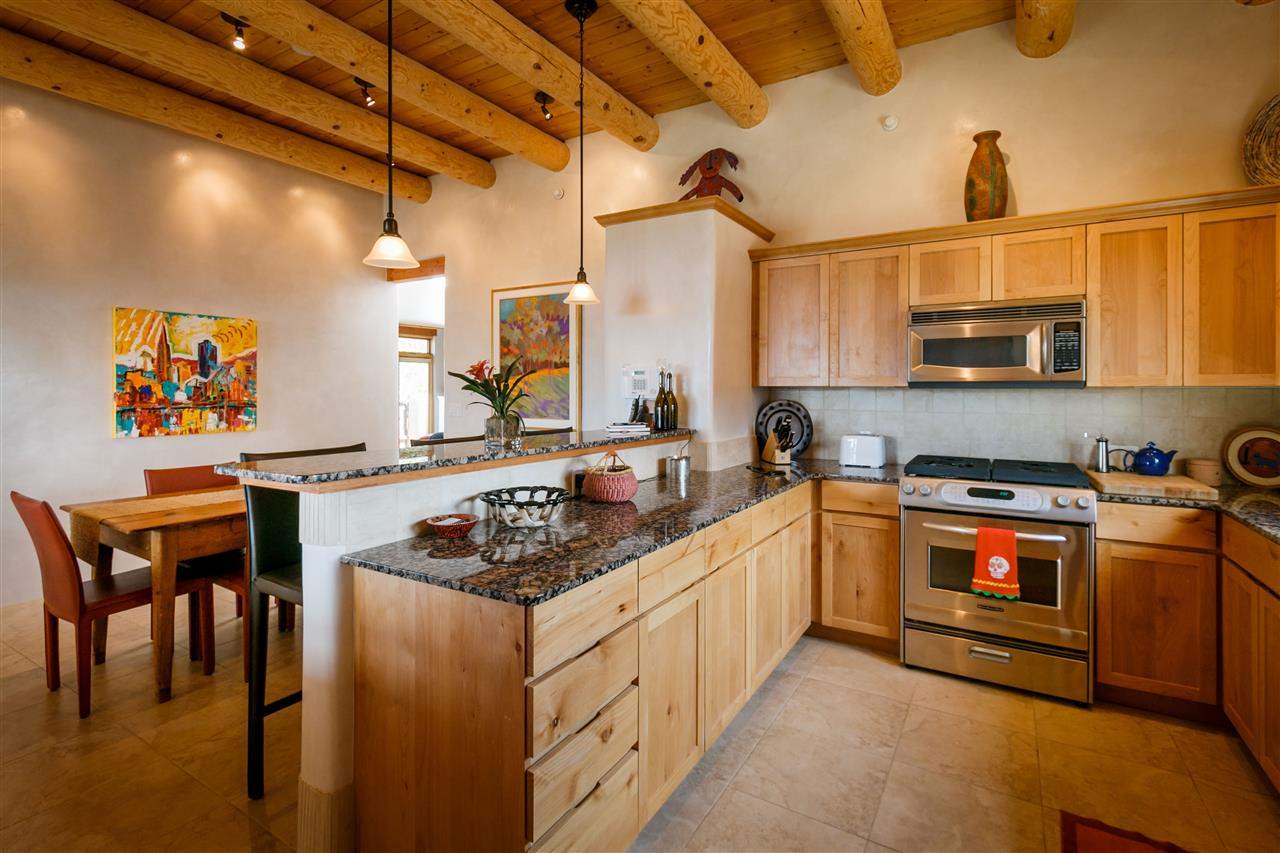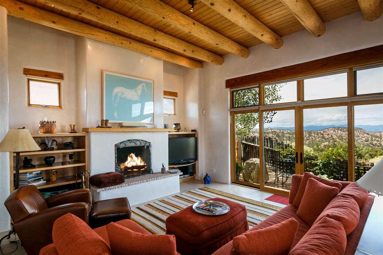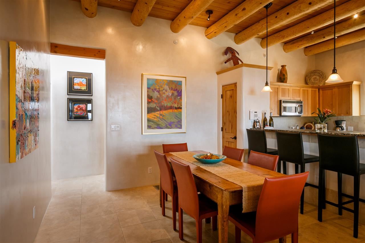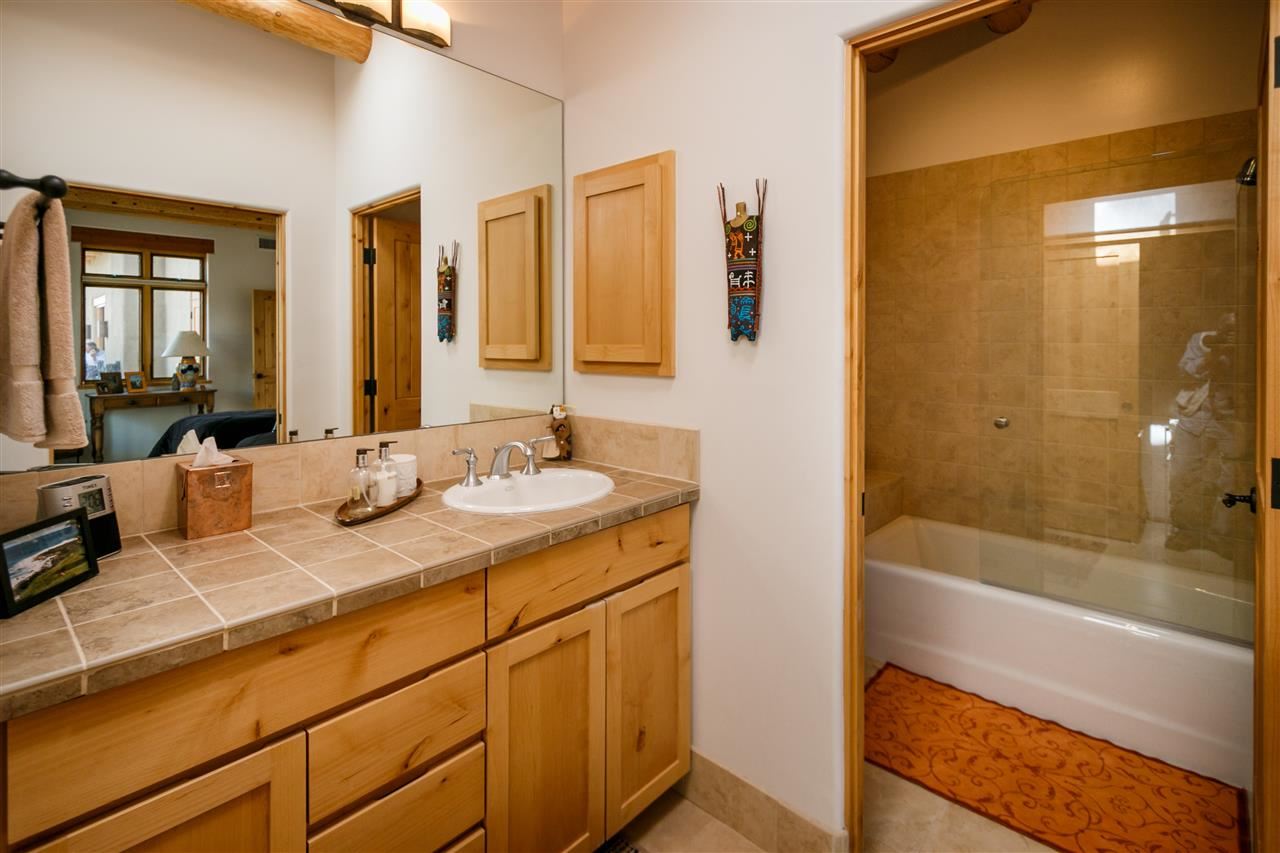 Stupendous Jemez mountain views from this freestanding unit above the iconic Bishops Lodge. Well laid out home to capture the views. Two well sized bedroom suites each with fireplace. Plenty of Santa Fe style with vigas, hard trowel plaster, tile floors, granite counters. Central a/c. One of the early buyers in the Bishops Villas development, the sellers chose this home as it is does not overlook a road nor another unit but instead, the open natural landscape with the valley and mountains beyond. Also handy to the pool. Meticulously maintained and lightly used second home. Can join the rental program at B. Lodge. Dues cover security gate, CAM, insurance, roads and pool/clubhouse.
