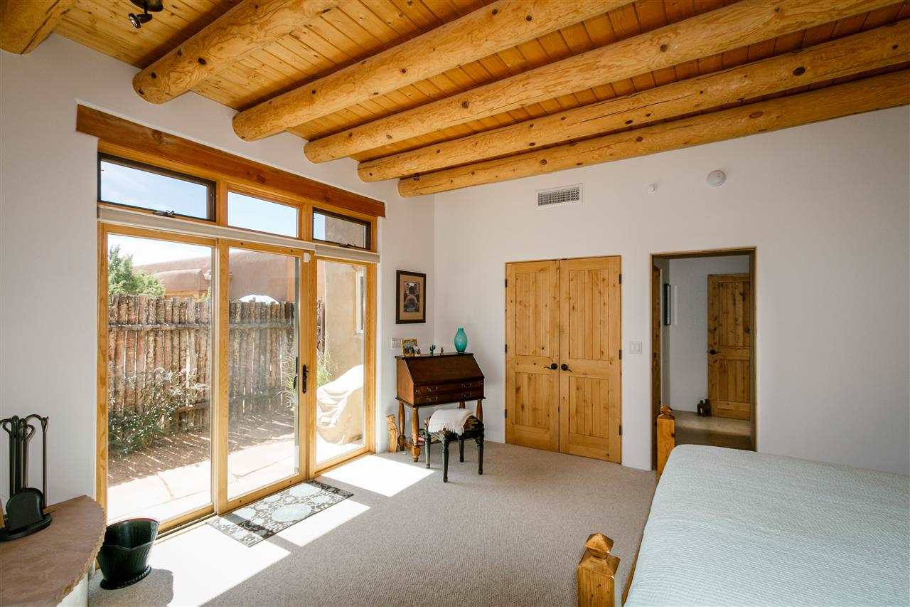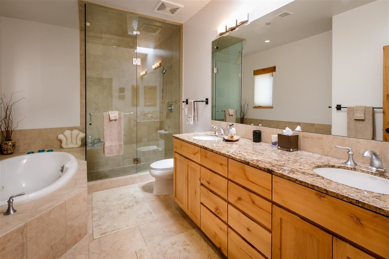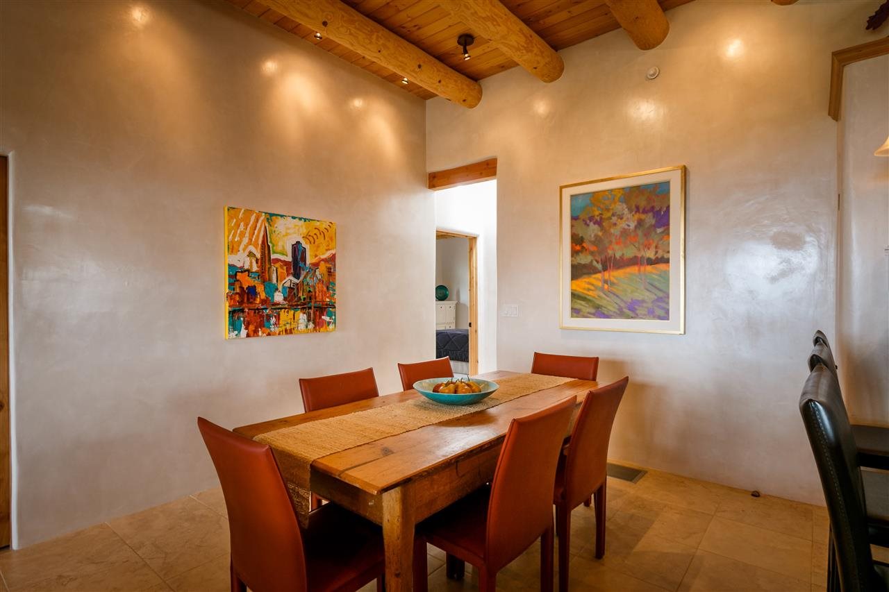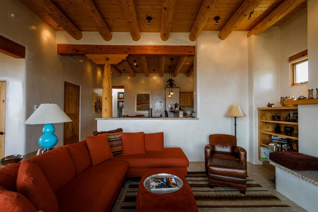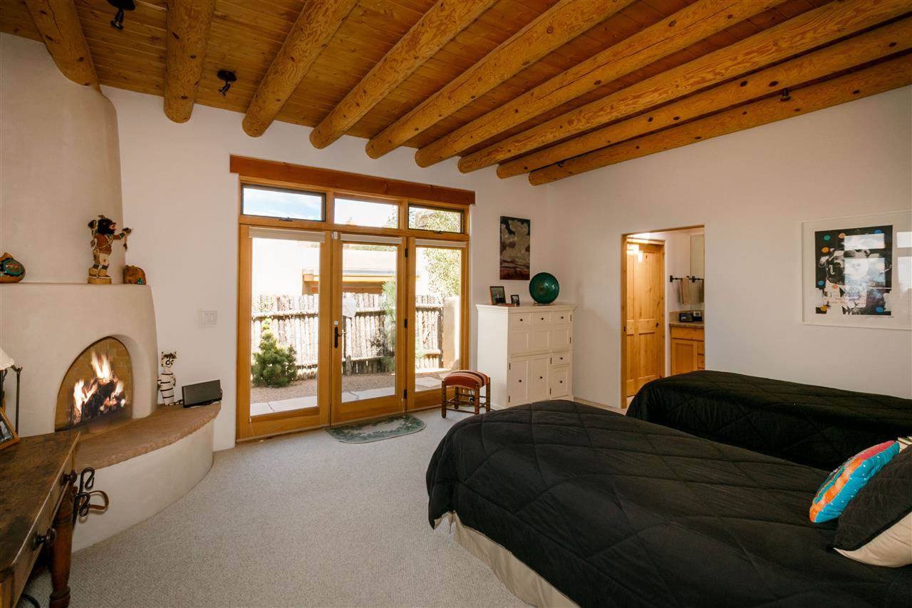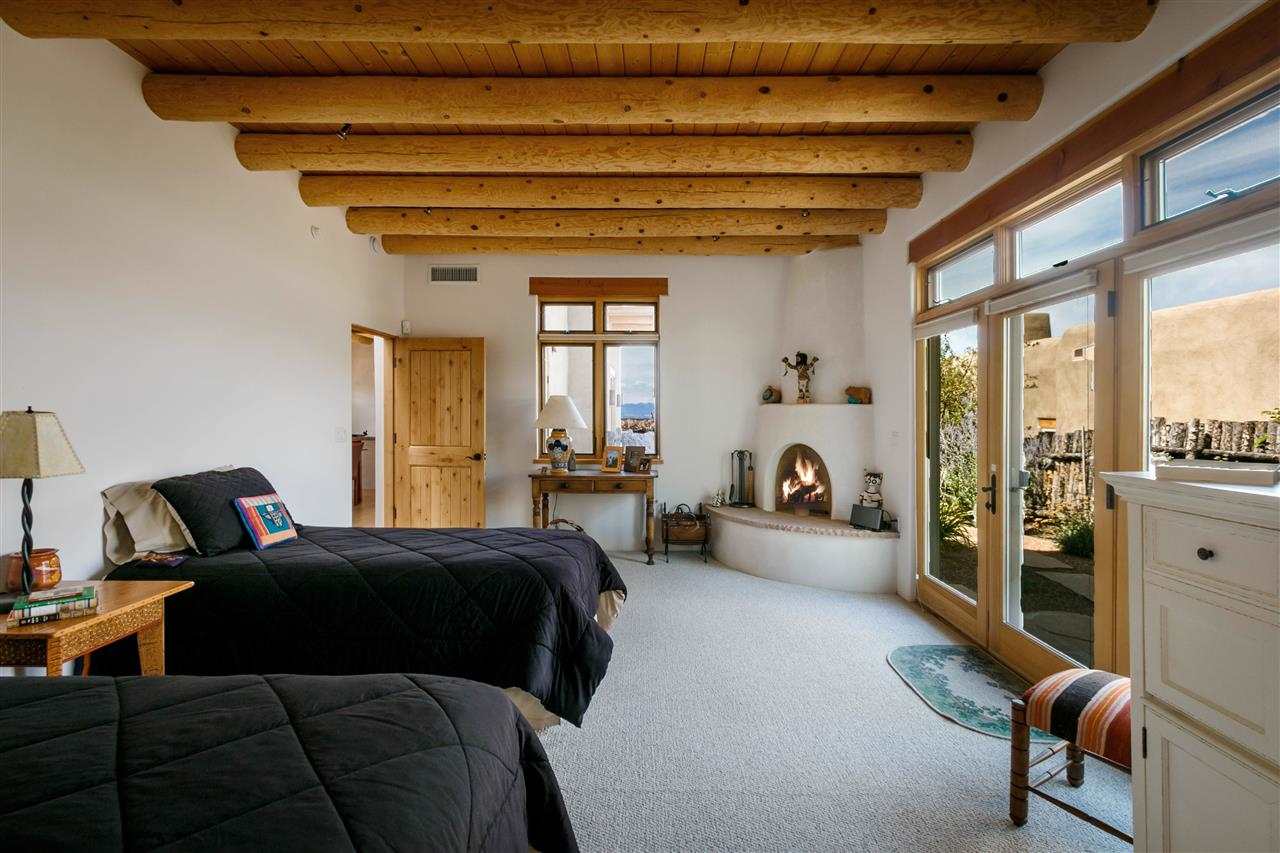 Stupendous Jemez mountain views from this freestanding unit above the iconic Bishops Lodge. Well laid out home to capture the views. Two well sized bedroom suites each with fireplace. Plenty of Santa Fe style with vigas, hard trowel plaster, tile floors, granite counters. Central a/c. One of the early buyers in the Bishops Villas development, the sellers chose this home as it is does not overlook a road nor another unit but instead, the open natural landscape with the valley and mountains beyond. Also handy to the pool. Meticulously maintained and lightly used second home. Can join the rental program at B. Lodge. Dues cover security gate, CAM, insurance, roads and pool/clubhouse.