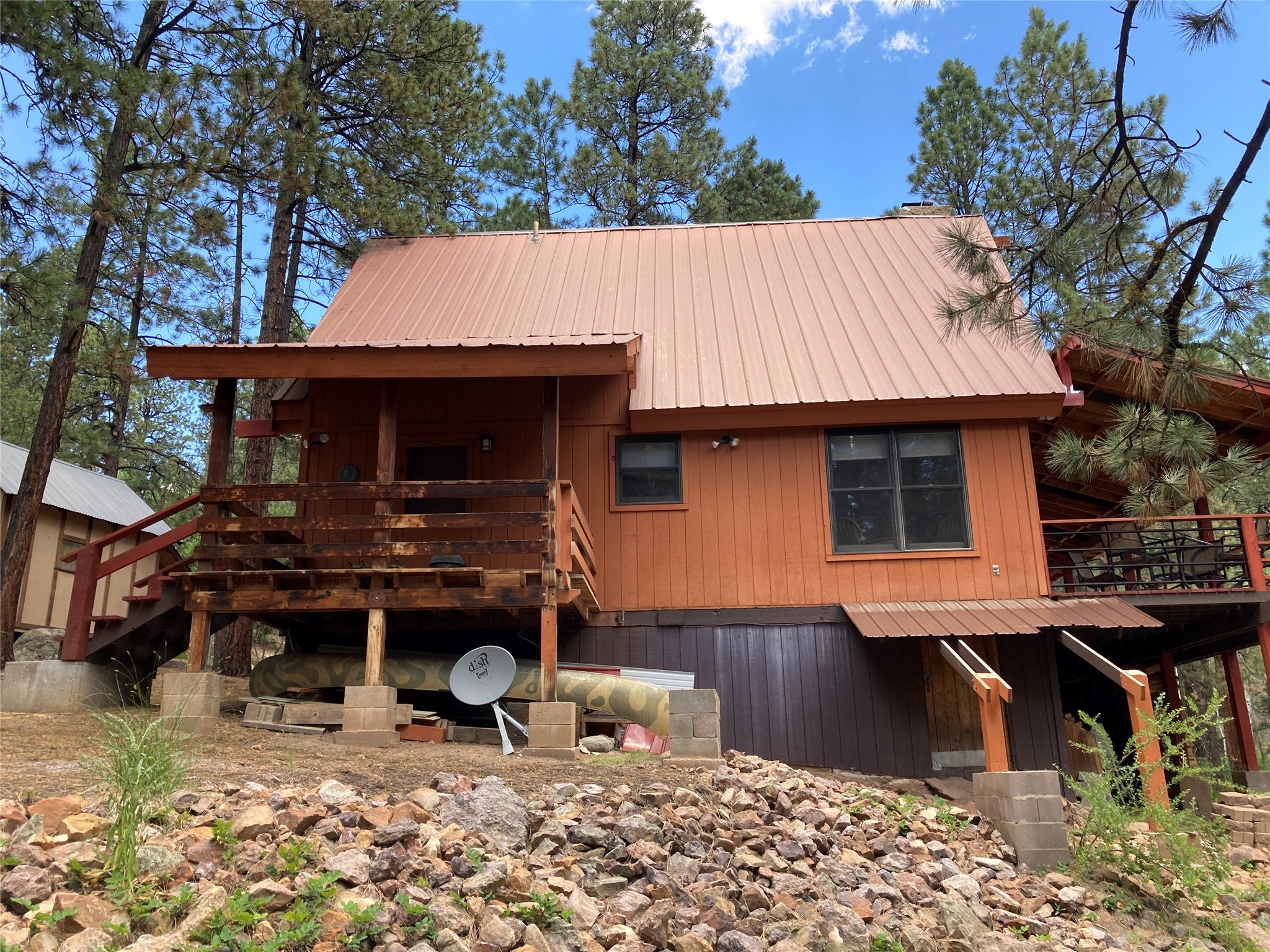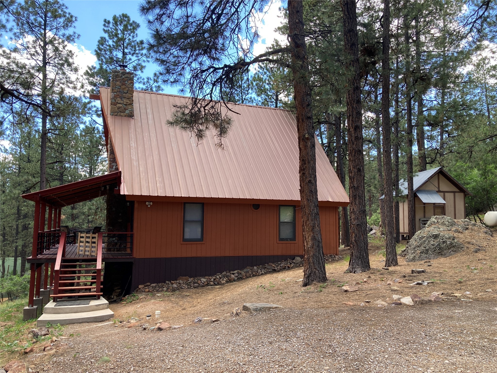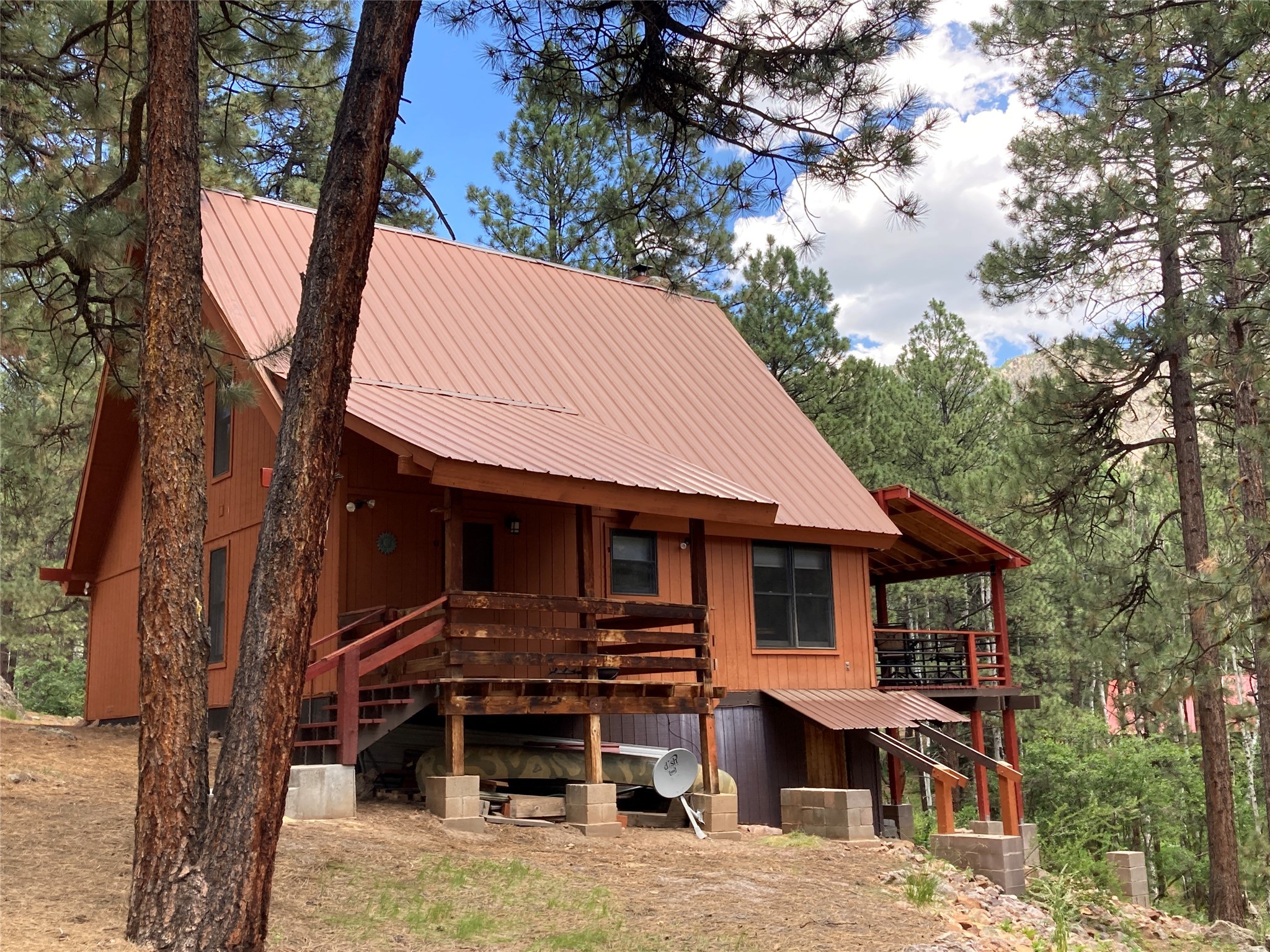Beautiful mountain get-away in the Brazos Canyon. This home, located on a one acre lot, has been well maintained and features a bedroom and full bath on each level, a second story loft area, a large main floor family room with a vaulted ceiling, ceiling fans, a wet bar, a small dining area and a kitchen with lots of storage and counter space. Outside there is a huge covered deck with views of the Brazos Cliffs, another smaller more private covered deck off of the kitchen, a storage shed, and ample parking for you and your guests. The surrounding forest is home to various species of wildlife including deer, wild turkey and the occasional bear. Fishing in the Brazos River is close enough to walk to, and shopping and dining in Chama is a short 20 minute drive. This is a great place to relax and enjoy life at altitude. Come take a look.