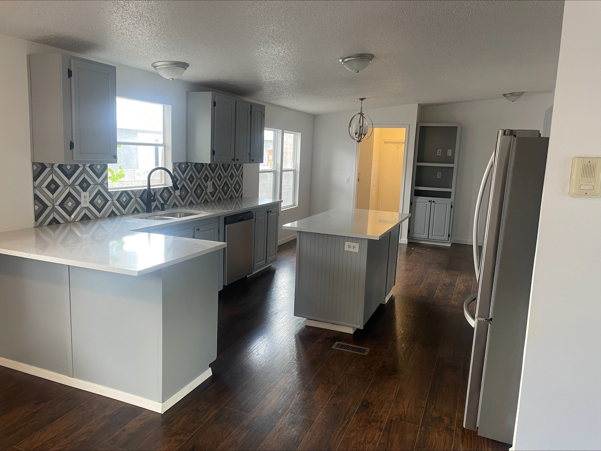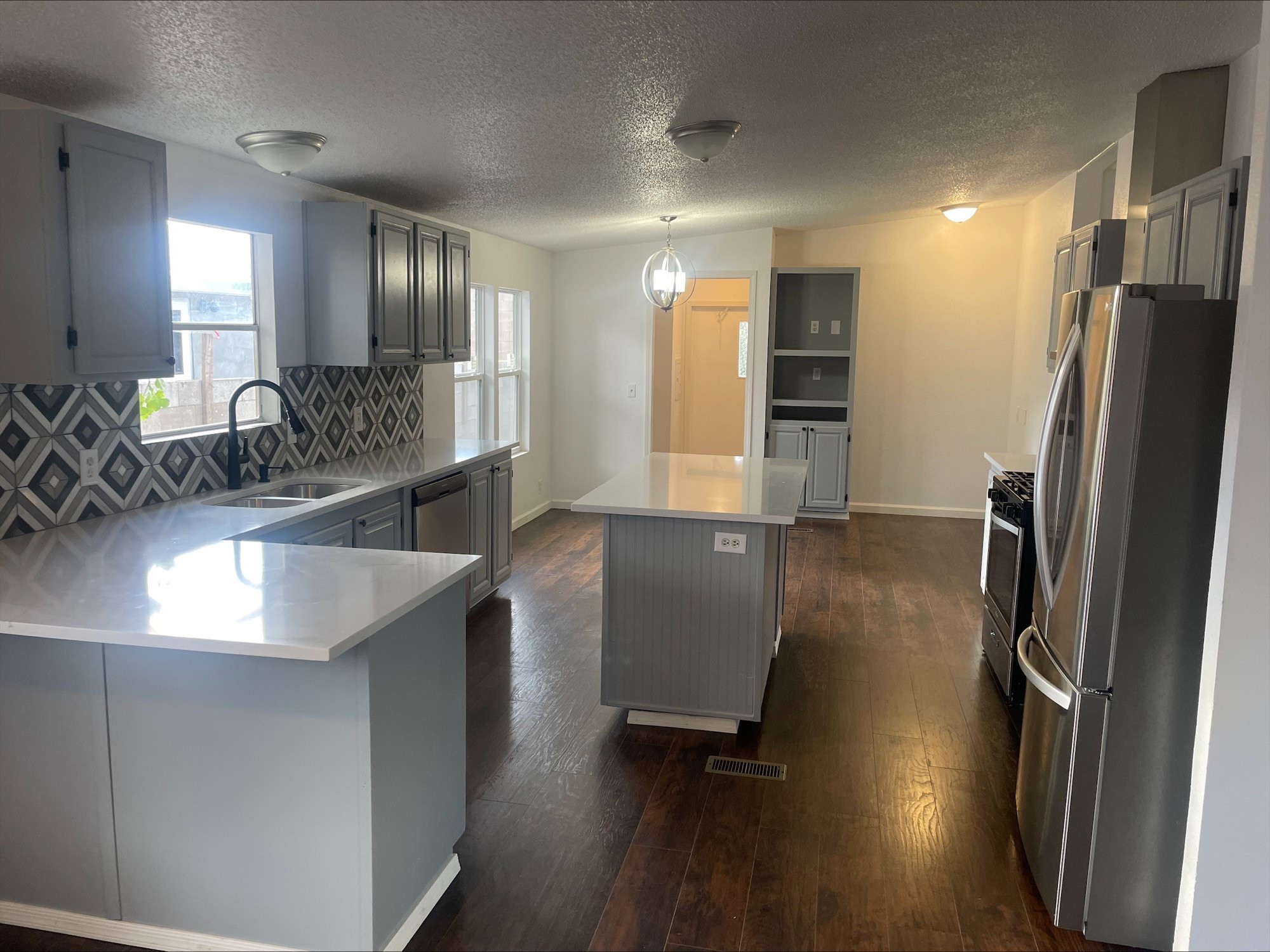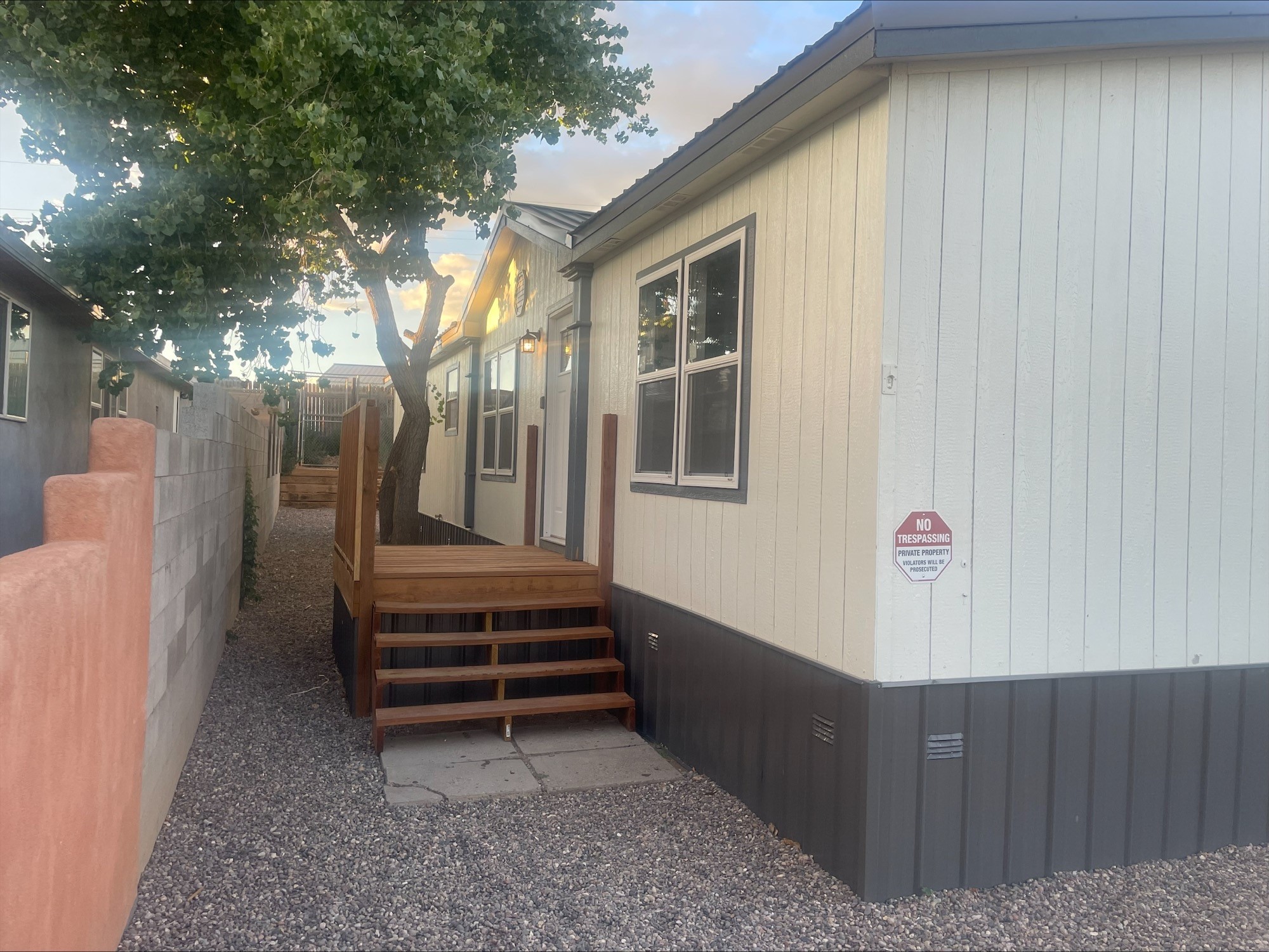The recently remodeled manufactured home in the Tierra Real neighborhood of Santa Fe, NM, features 3 bedrooms and 2 bathrooms. The interior boasts granite countertops, new floors, and a fireplace. The home also offers the convenience of being close to shopping centers. The property is gated with private parking and has a new propanel roof to top off its updates. It won't last long at this price. Come look at this beautiful home today.