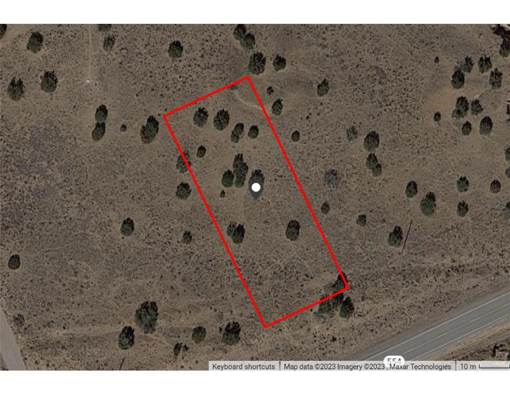 Nice flat half acre, mostly grassland but a few pinon and juniper. Borders on NM 554, so that side is fenced with barbed wire. There are utilities in the neighborhood, but none on the lot. Would need a driveway permit from the Department of Transportation to access it.