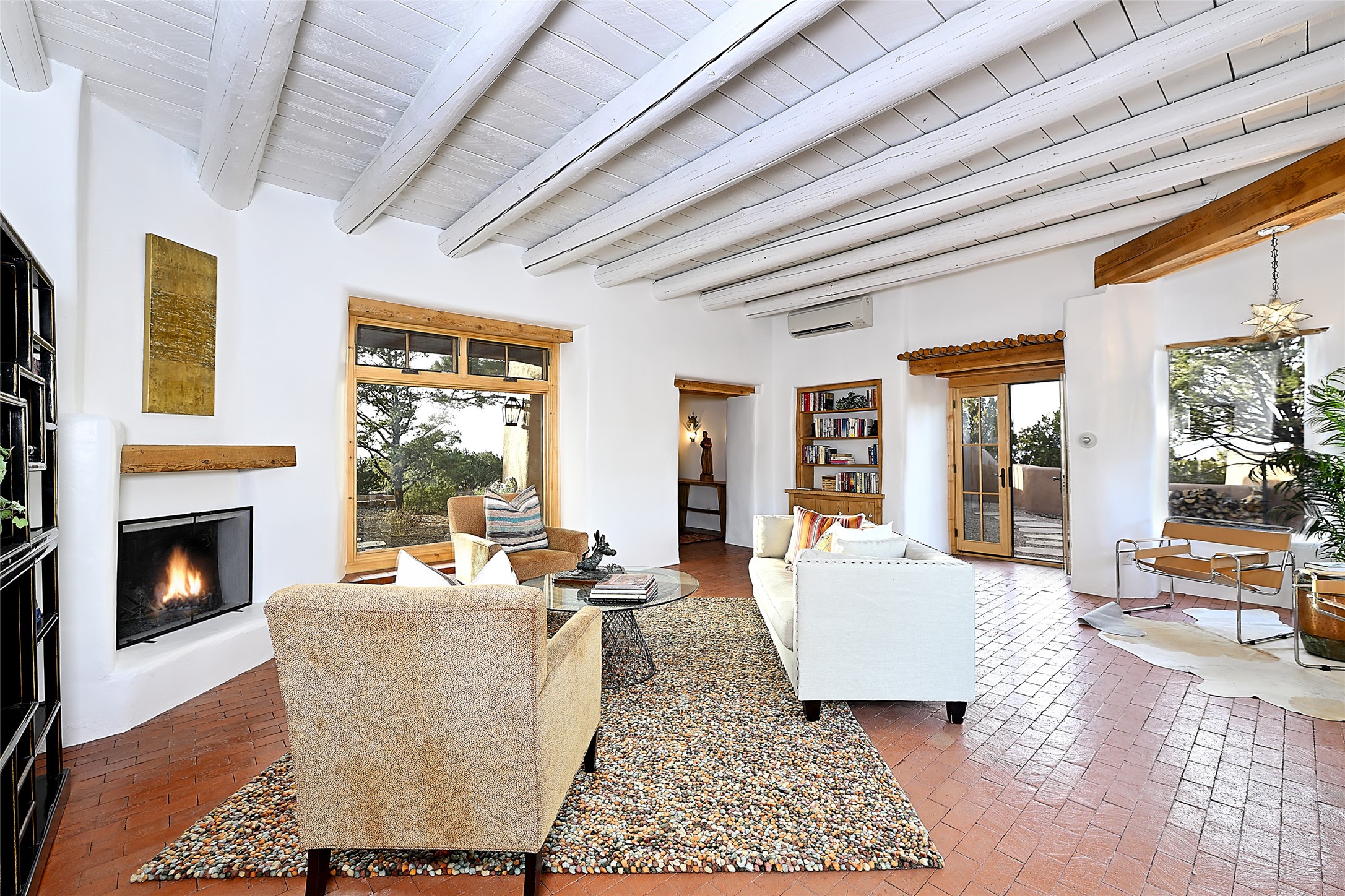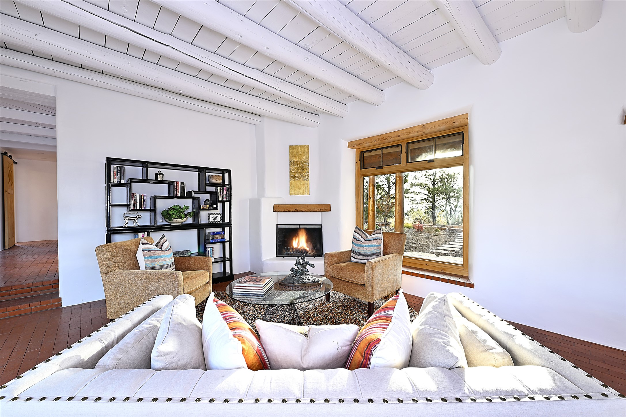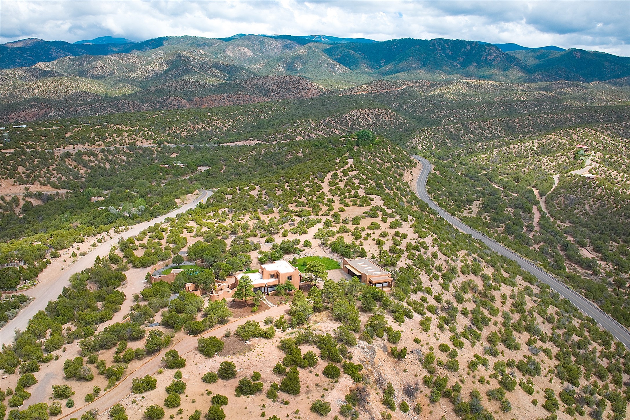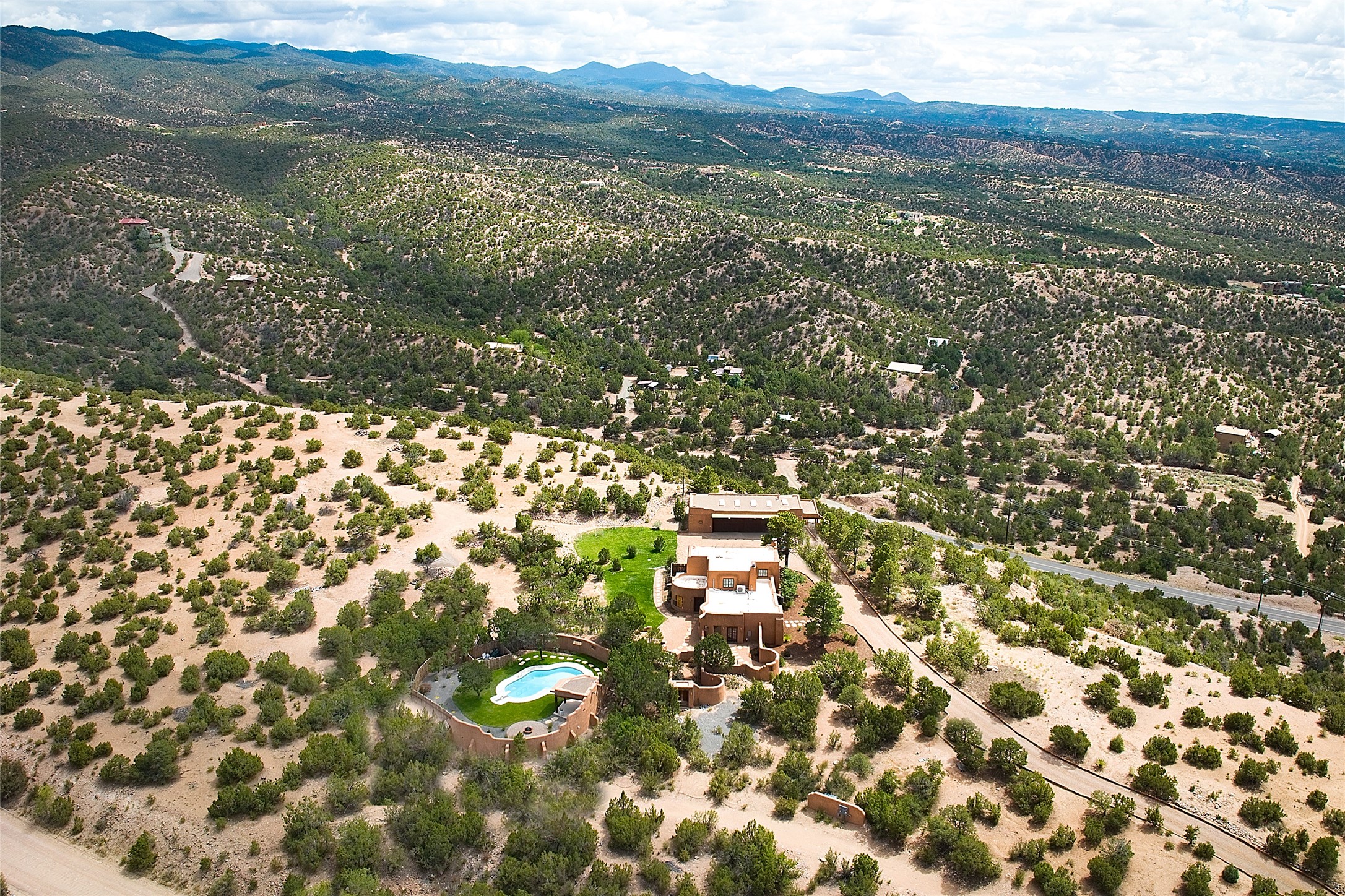 House and adjacent lot being sold together. Stunning Tesuque property...this beautiful 6 acre estate featuring a Bill Lumpkins home from 1972 has been completely remodeled under the direction of Hoopes + Associates ( Andrea Caraballo) and Chandler Prewitt Interiors. Perfectly located for rustic privacy yet only 20 minutes from town, 5 minutes to the amenities and restaurants of the Four Seasons, and ten minutes from the charming community center of Tesuque with its galleries and restaurants. The 3167 square foot two story main house features 3 bedrooms and 3 bathrooms with brick floors, vigas, chef's kitchen, all new windows and doors and some of the most INCREDIBLE VIEWS Santa Fe has to offer. A charming 286 square foot one room casita, separate 230 square foot studio plus a 4 car garage will give any buyer the options...privacy...and flexibility to enjoy a Santa Fe compound like no other! A separate pool area with a portal completes this amazing property. The premises have been completely landscaped with new walkways, irrigation system, ,trees, flowers, and sweeping lush lawns...this property is an exquisite example of Santa Fe style at its finest ! 5.3 acre adjacent lot is also available for sale!