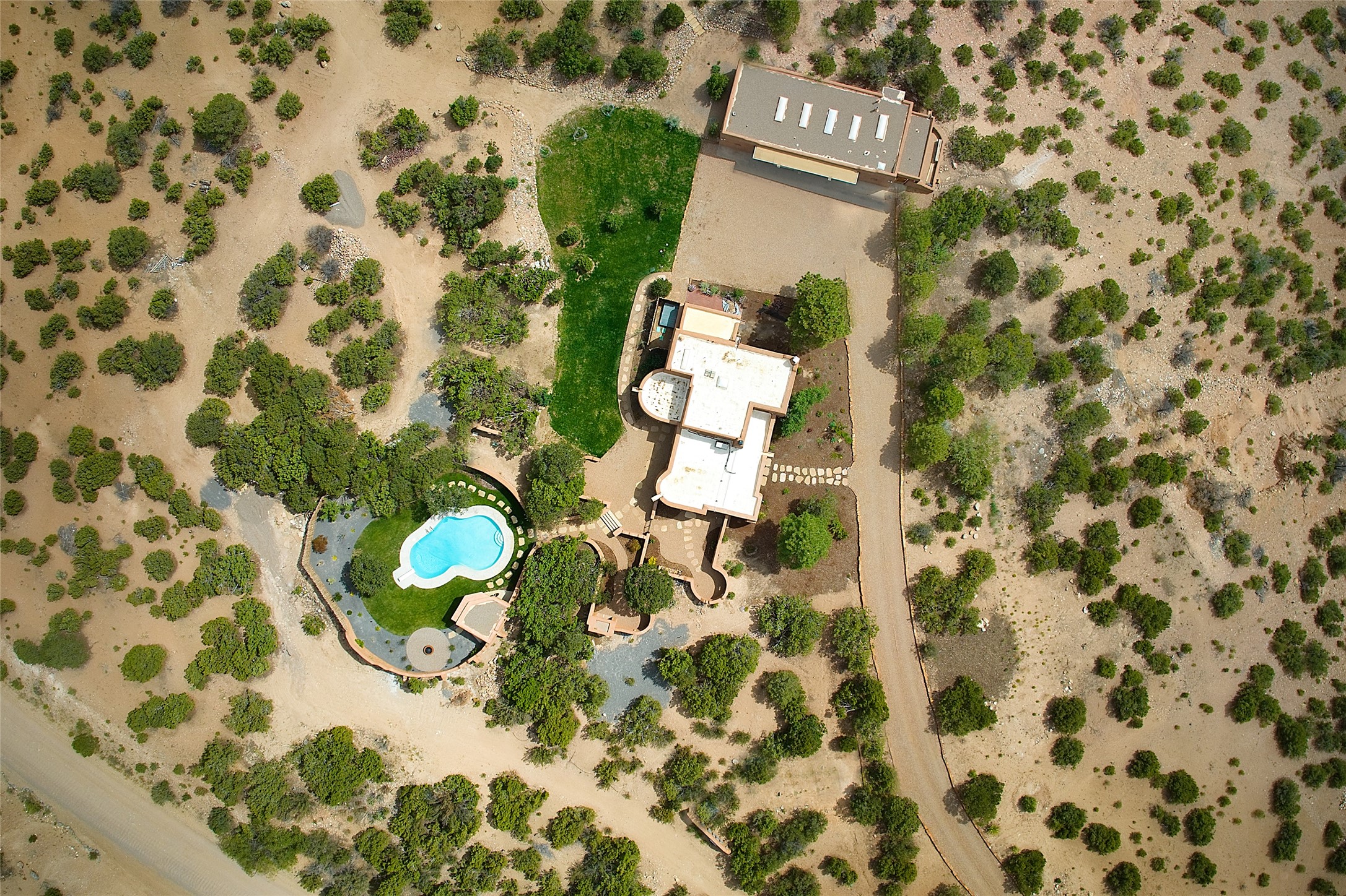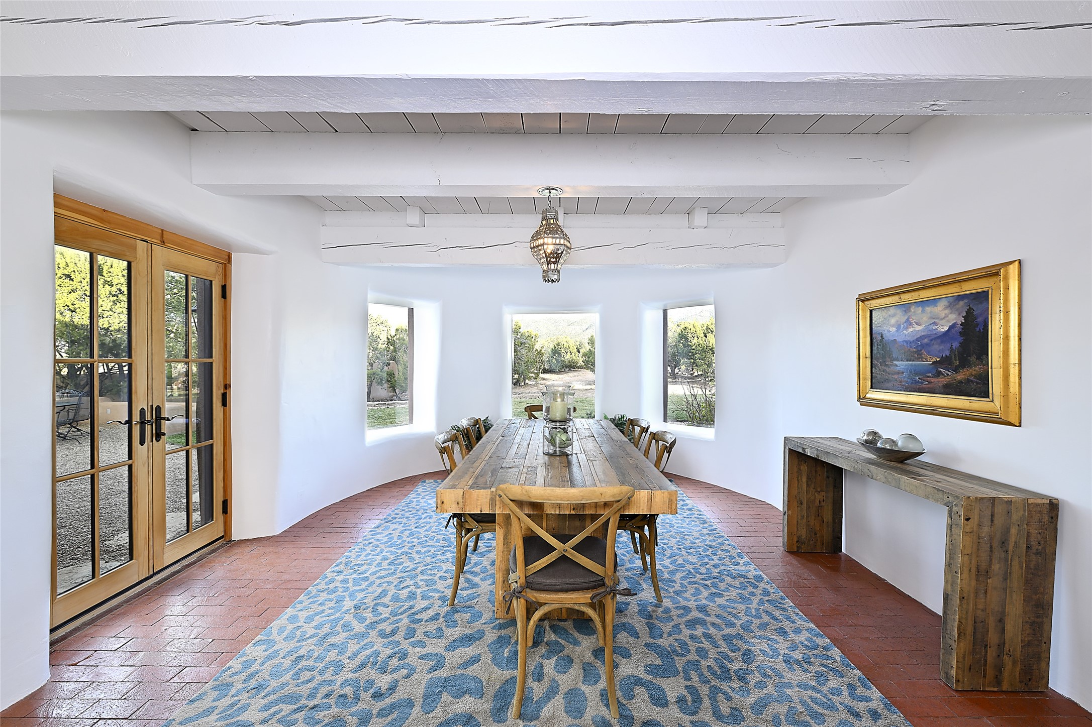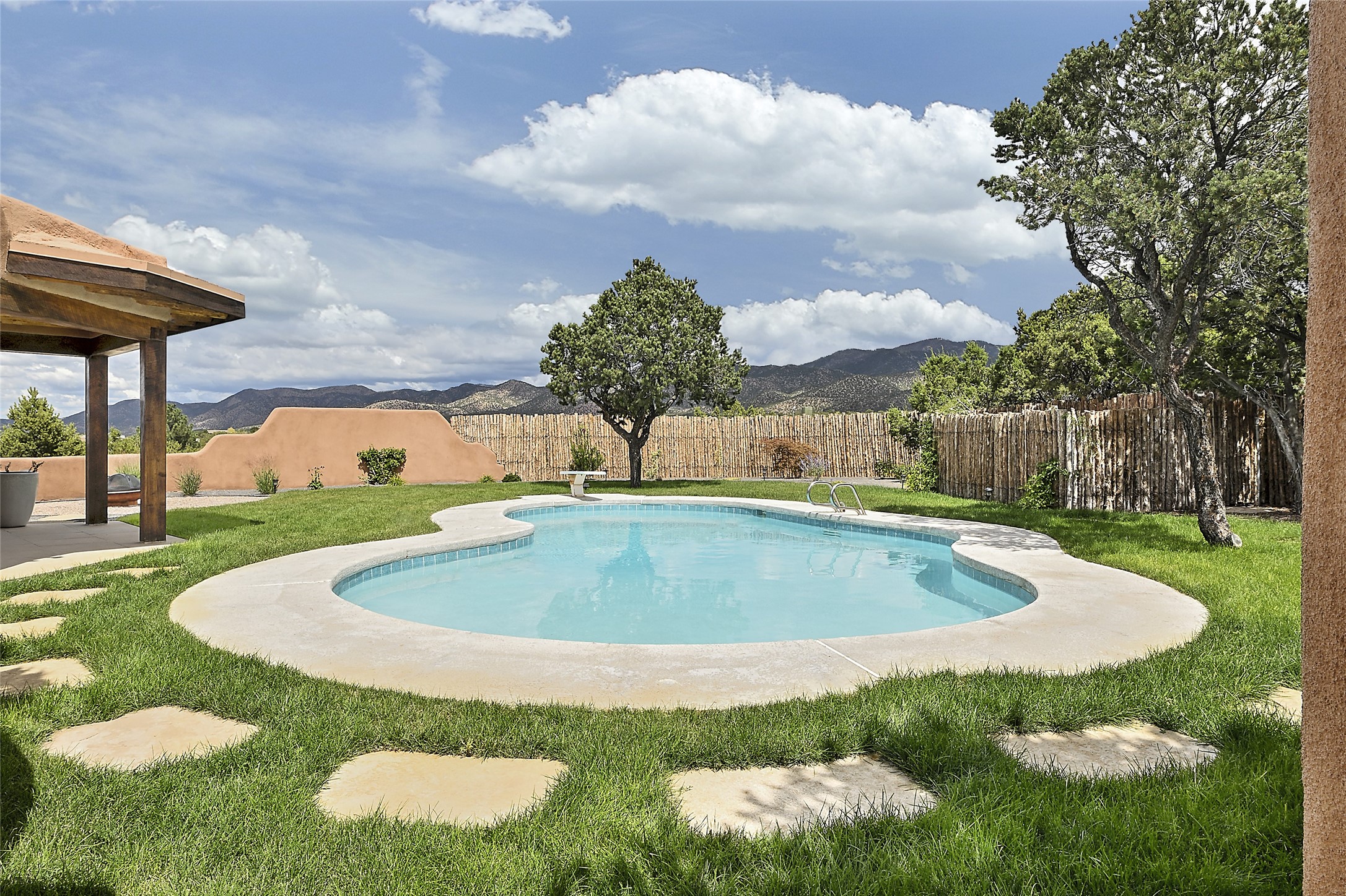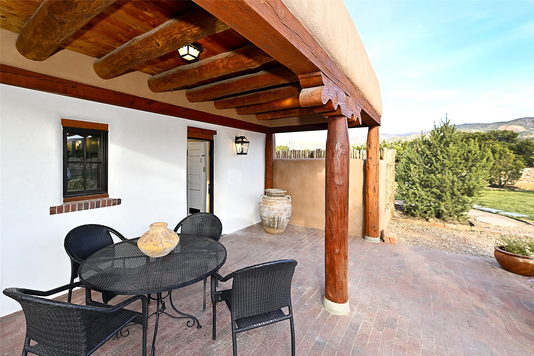 House and adjacent lot being sold together. Stunning Tesuque property...this beautiful 6 acre estate featuring a Bill Lumpkins home from 1972 has been completely remodeled under the direction of Hoopes + Associates ( Andrea Caraballo) and Chandler Prewitt Interiors. Perfectly located for rustic privacy yet only 20 minutes from town, 5 minutes to the amenities and restaurants of the Four Seasons, and ten minutes from the charming community center of Tesuque with its galleries and restaurants. The 3167 square foot two story main house features 3 bedrooms and 3 bathrooms with brick floors, vigas, chef's kitchen, all new windows and doors and some of the most INCREDIBLE VIEWS Santa Fe has to offer. A charming 286 square foot one room casita, separate 230 square foot studio plus a 4 car garage will give any buyer the options...privacy...and flexibility to enjoy a Santa Fe compound like no other! A separate pool area with a portal completes this amazing property. The premises have been completely landscaped with new walkways, irrigation system, ,trees, flowers, and sweeping lush lawns...this property is an exquisite example of Santa Fe style at its finest ! 5.3 acre adjacent lot is also available for sale!