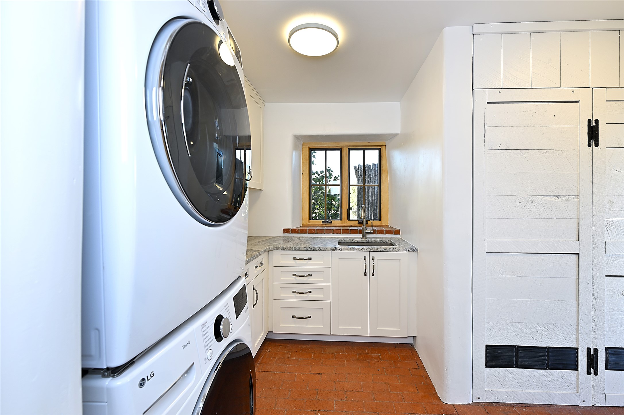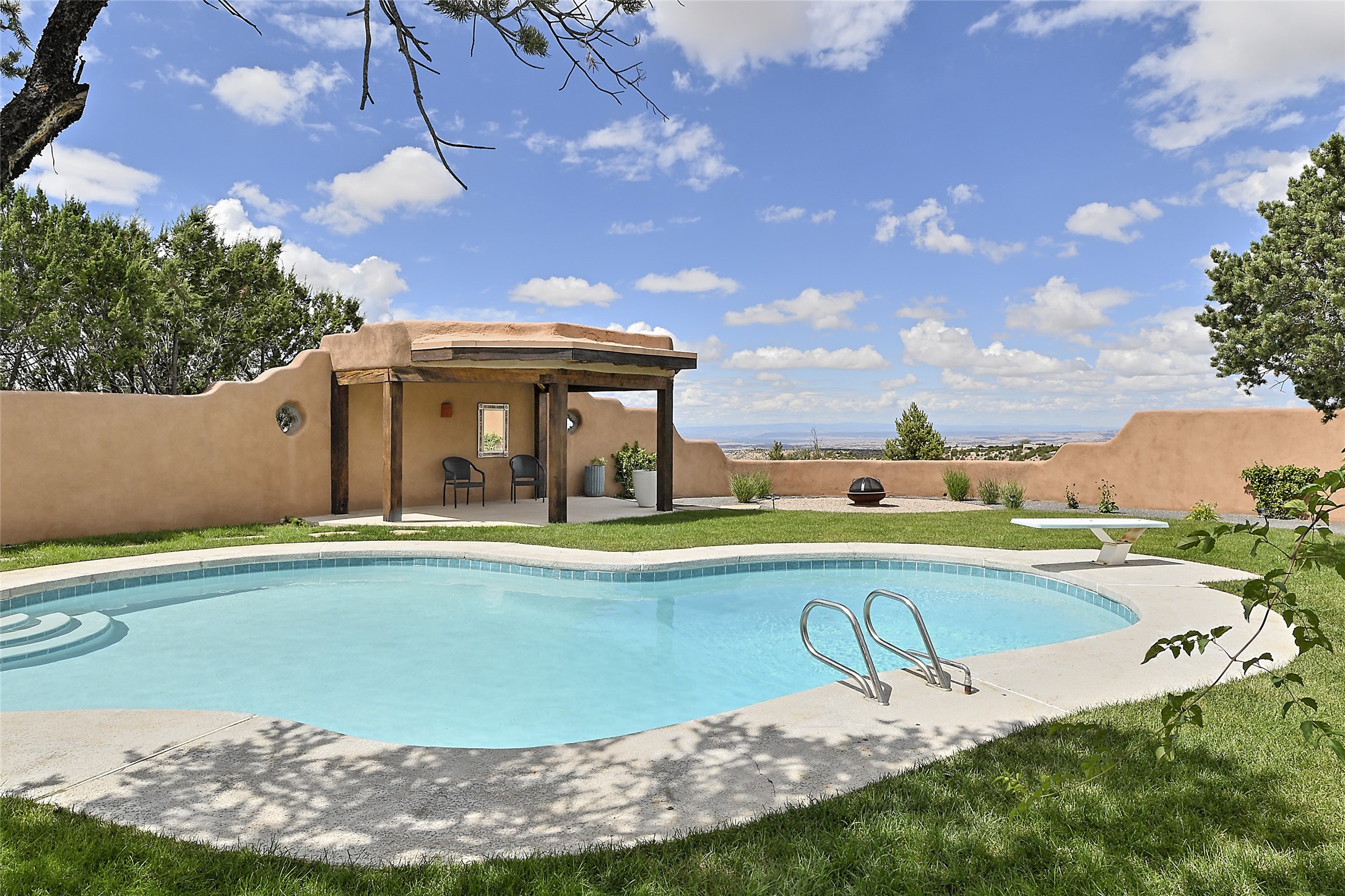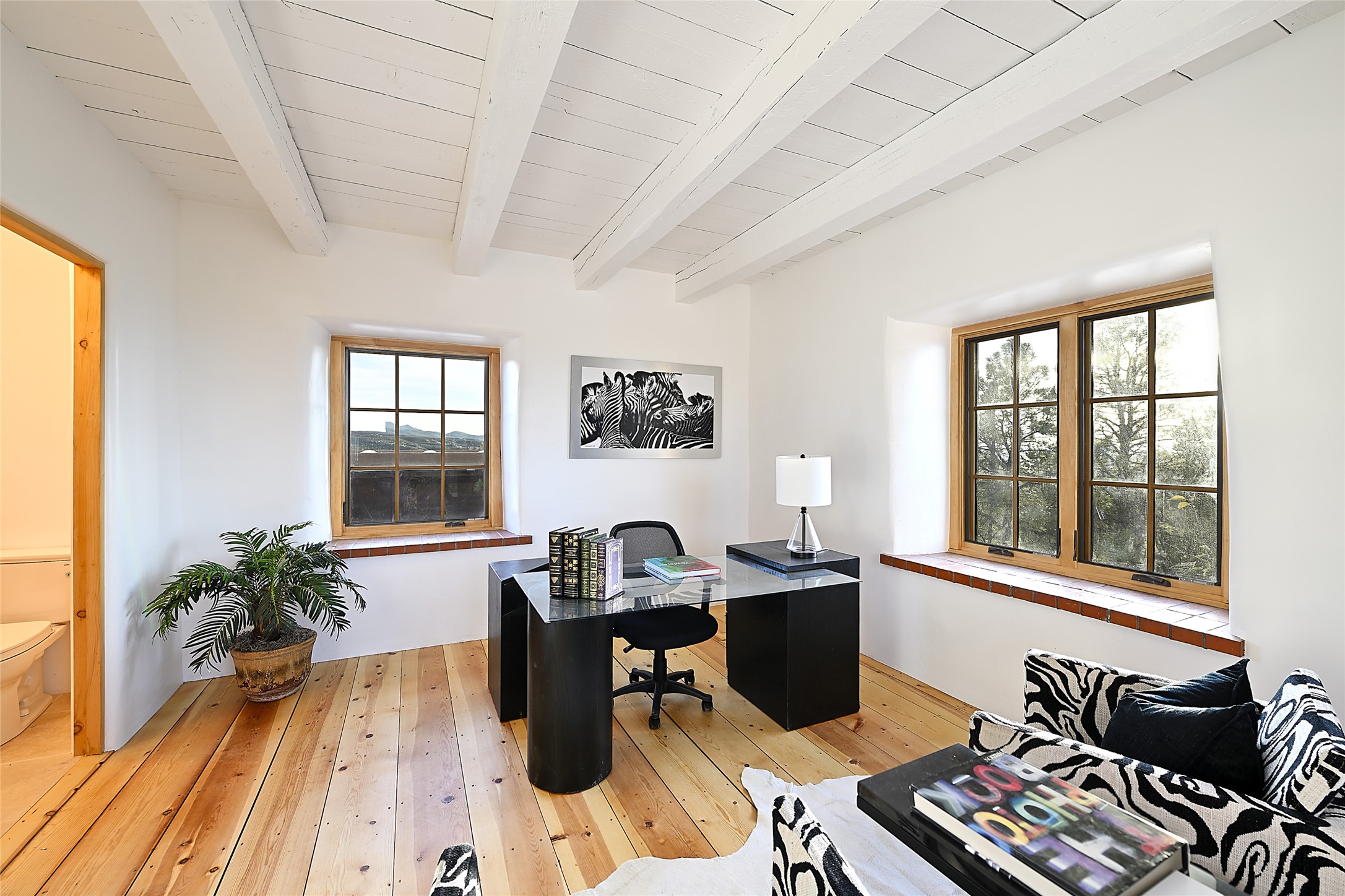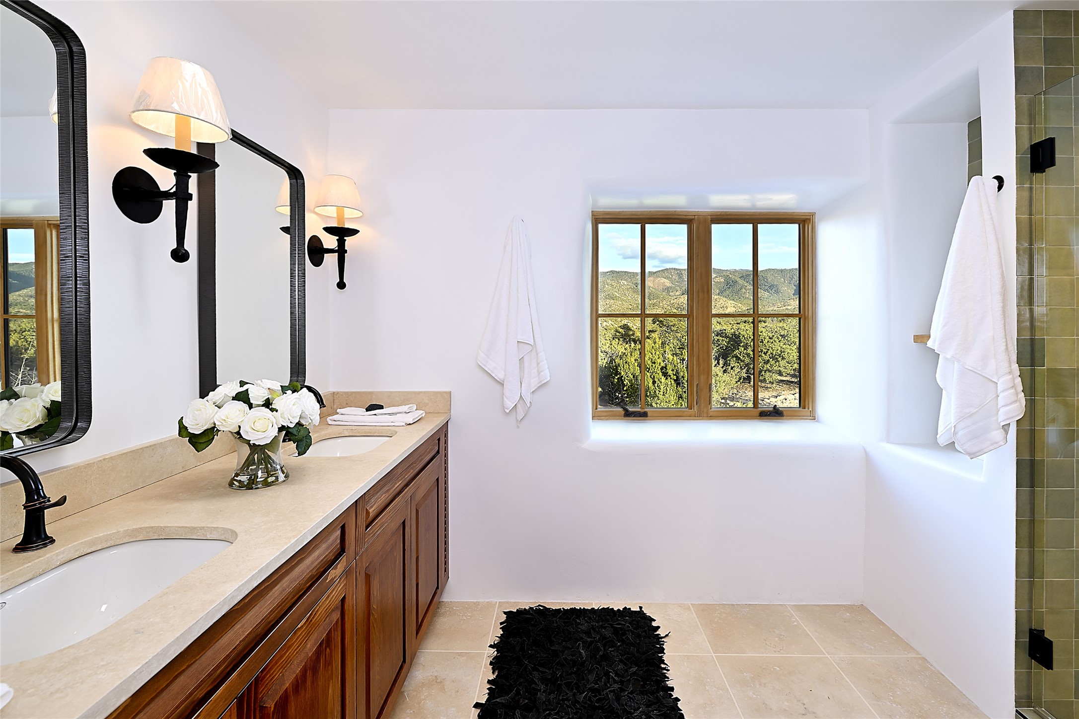 House and adjacent lot being sold together. Stunning Tesuque property...this beautiful 6 acre estate featuring a Bill Lumpkins home from 1972 has been completely remodeled under the direction of Hoopes + Associates ( Andrea Caraballo) and Chandler Prewitt Interiors. Perfectly located for rustic privacy yet only 20 minutes from town, 5 minutes to the amenities and restaurants of the Four Seasons, and ten minutes from the charming community center of Tesuque with its galleries and restaurants. The 3167 square foot two story main house features 3 bedrooms and 3 bathrooms with brick floors, vigas, chef's kitchen, all new windows and doors and some of the most INCREDIBLE VIEWS Santa Fe has to offer. A charming 286 square foot one room casita, separate 230 square foot studio plus a 4 car garage will give any buyer the options...privacy...and flexibility to enjoy a Santa Fe compound like no other! A separate pool area with a portal completes this amazing property. The premises have been completely landscaped with new walkways, irrigation system, ,trees, flowers, and sweeping lush lawns...this property is an exquisite example of Santa Fe style at its finest ! 5.3 acre adjacent lot is also available for sale!