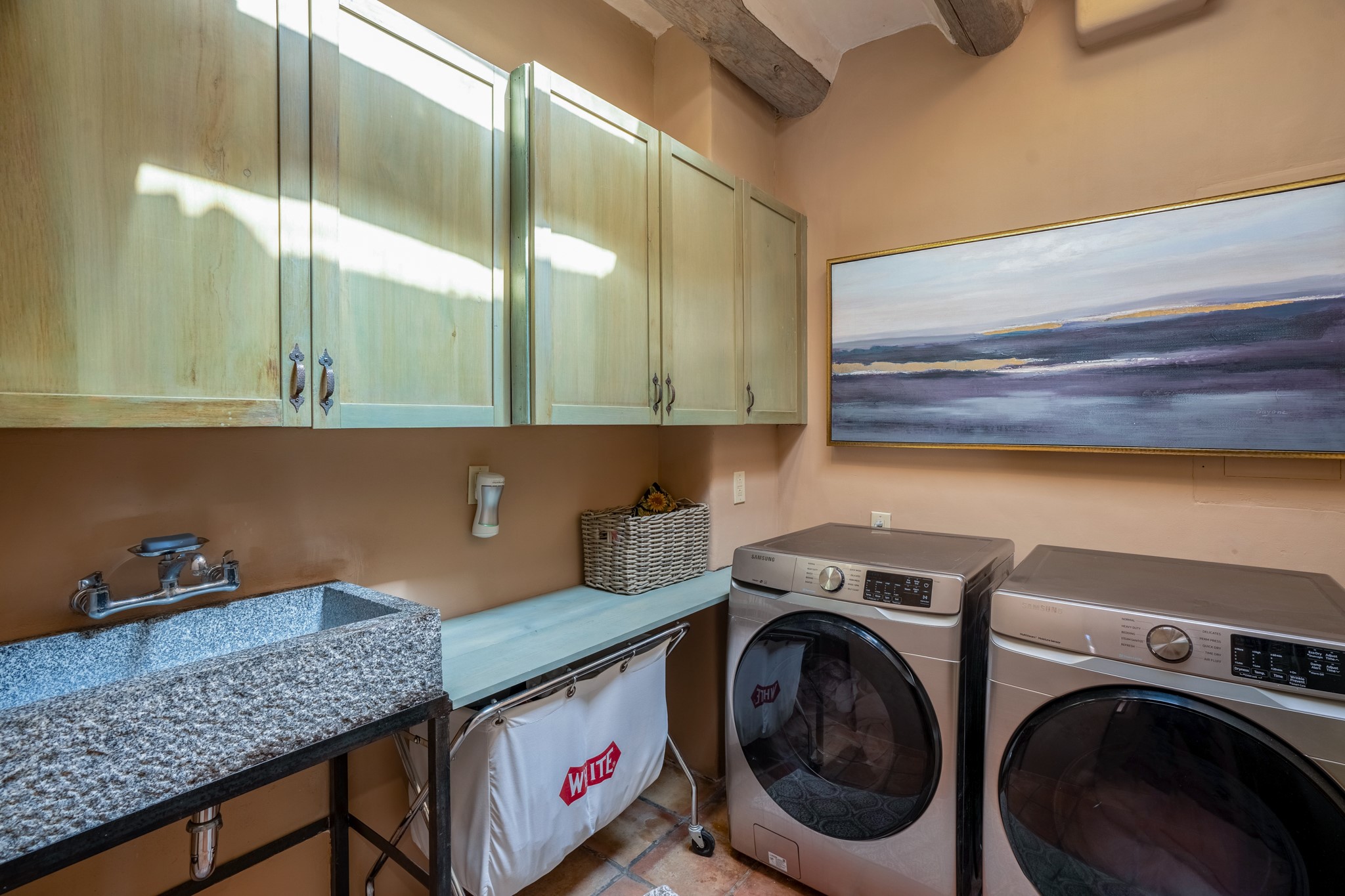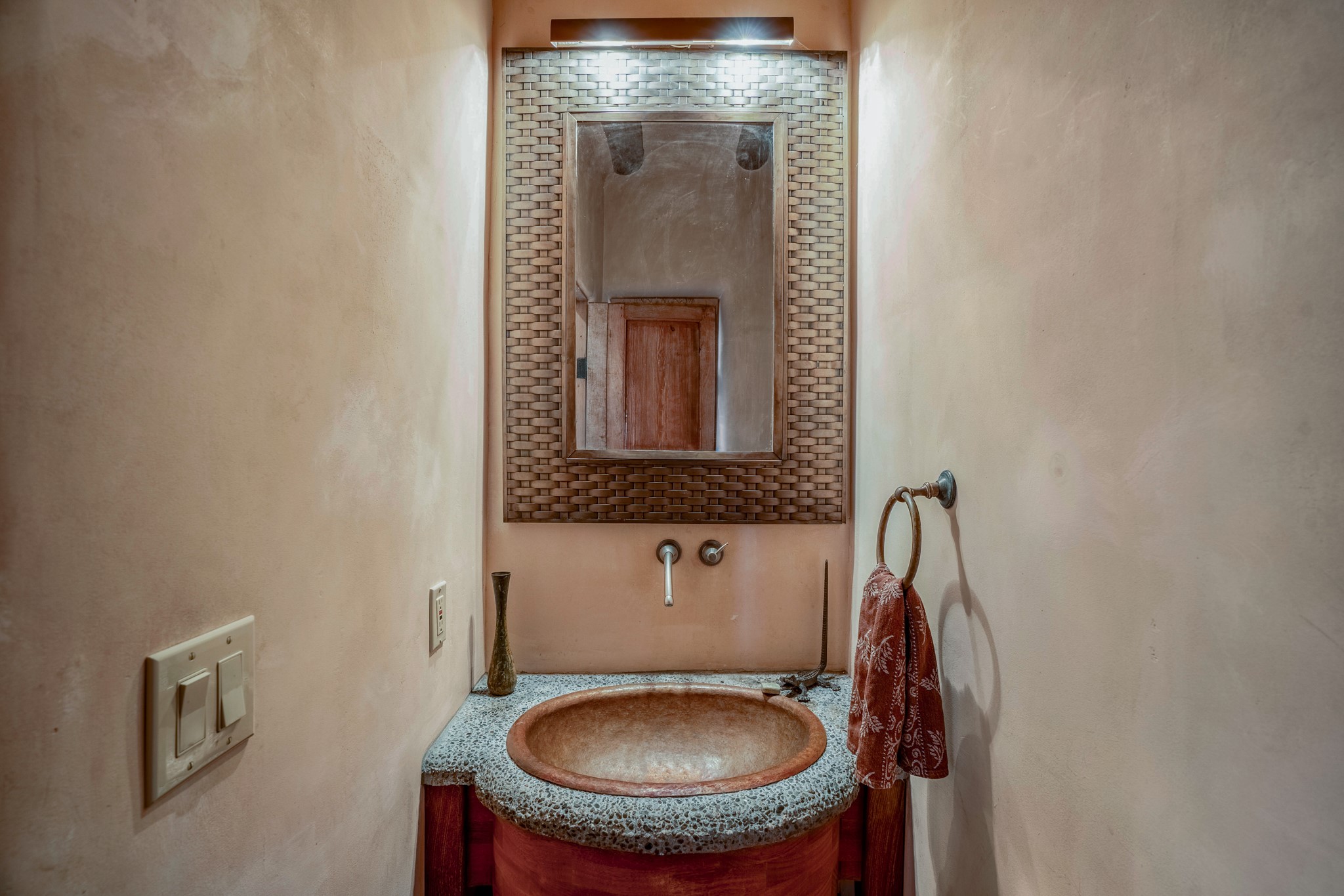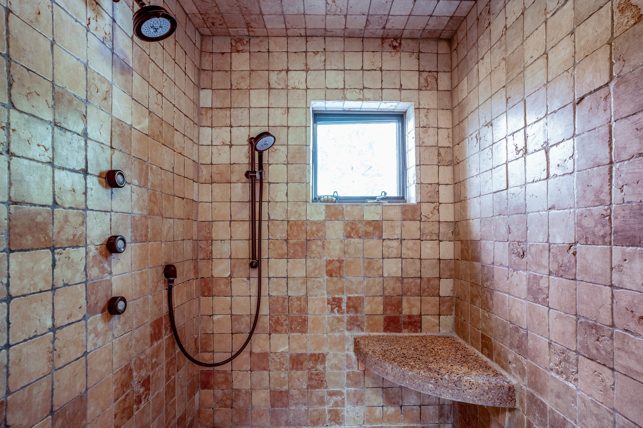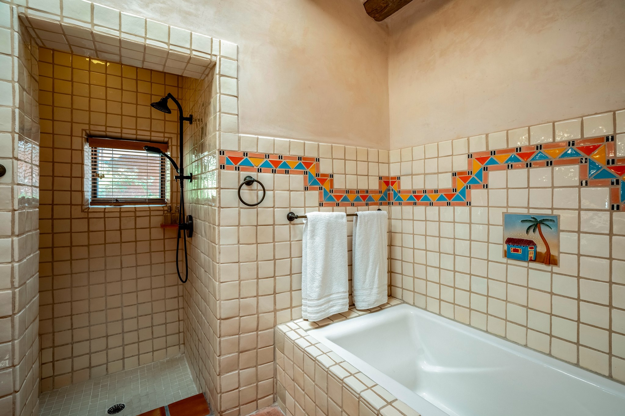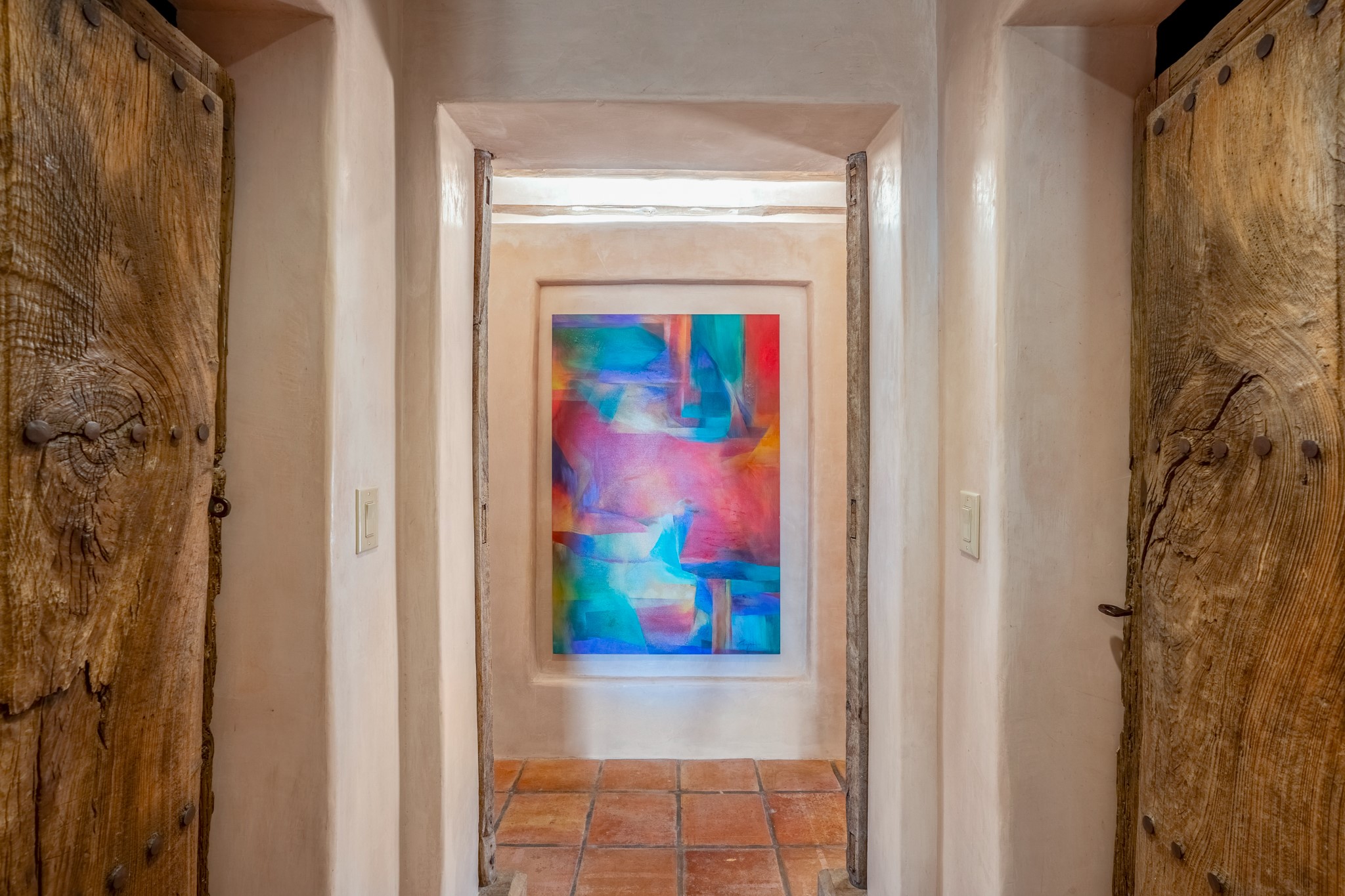 Nestled in the Santa Fe foothills and only 5 miles to the Plaza lies a magnificent representation of Pueblo Revival architecture; an adobe home that enjoys maximum privacy, located on a 5 acre densely wooded and entirely fenced property, with spectacular views. This unique home, built in 1997, consists of a main house, a guest house, expansive outdoor portals, pool, in-ground hot tub and a detached garage. The fountain courtyard entrance sets the tone for this special home. Upon stepping into the 4,100 sq ft main house, you begin by experiencing this unique rendition with its 16 ft coved vigas ceilings, a shepherd's fireplace and abundant natural light. The living area opens onto the dramatic South-facing portal that encompasses sitting and dining areas, as well as a media/bar for your outdoor entertainment. The kitchen is the heart of this spectacular house with a raised wood burning fireplace, maple countertops, a bar and a pass through to the attached den. The primary suite is located in the West wing of the property and includes a large office, which opens to the portal, and a lovely bedroom with a kiva fireplace and private balcony. The beautifully renovated bathroom includes a 2-person air tub, a steam shower, its own fireplace and access to the central courtyard. The East wing has a guest bedroom with a full ensuite bathroom and a third very large bedroom, presently used as a flex room and plumbed for an additional bathroom. The stunning pool area is that of a Southwestern resort with a deep pool, in-ground hot tub and panoramic views. The lovely 820 sq ft 1 bedroom, detached guest house enjoys its own portal, a full kitchen and steam shower. 96 Double Arrow has the heart of Spain and the soul of Santa Fe embedded in each handmade adobe brick, a rare opportunity to purchase an authentic foothills adobe hacienda just minutes from downtown Santa Fe.