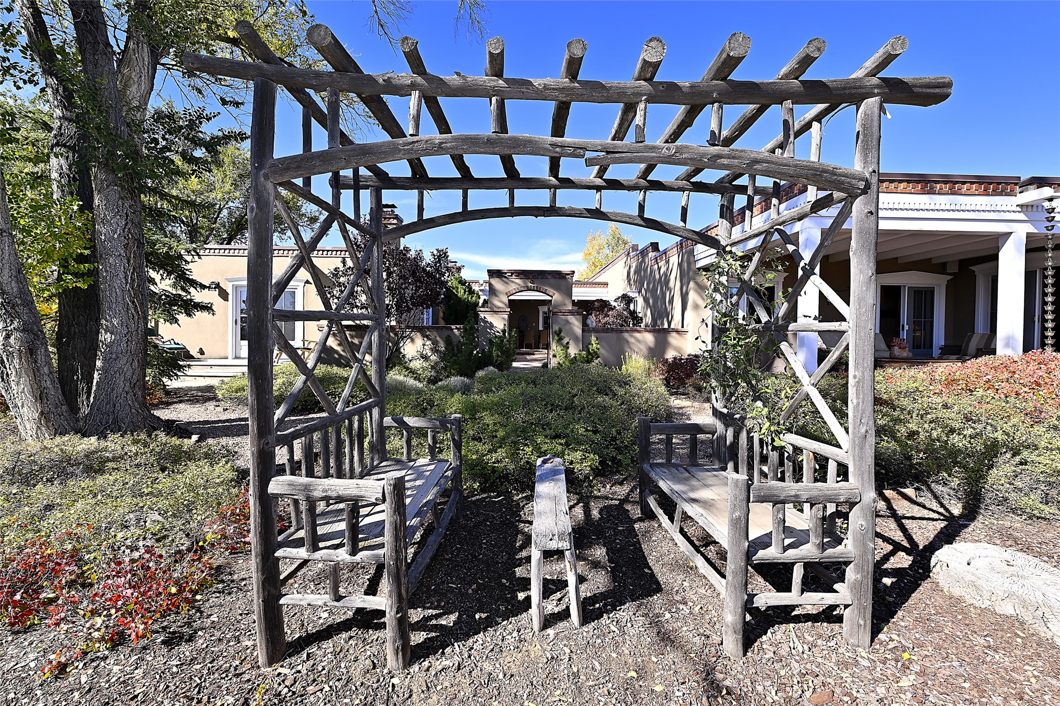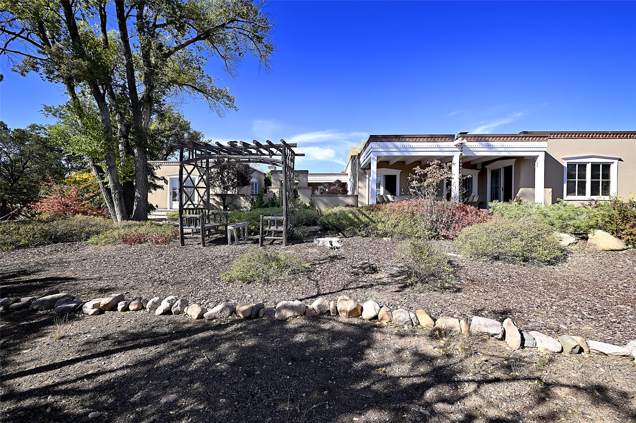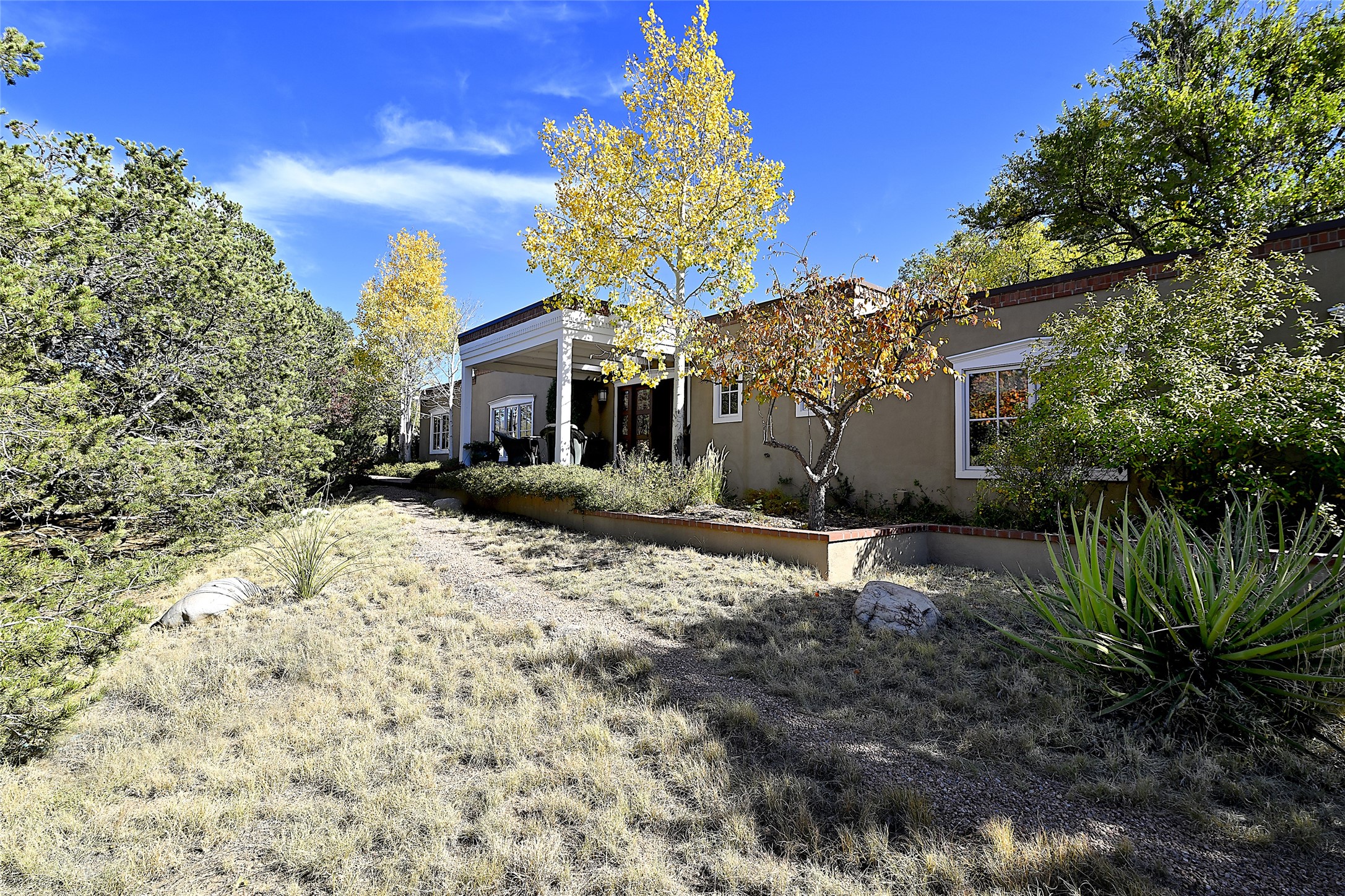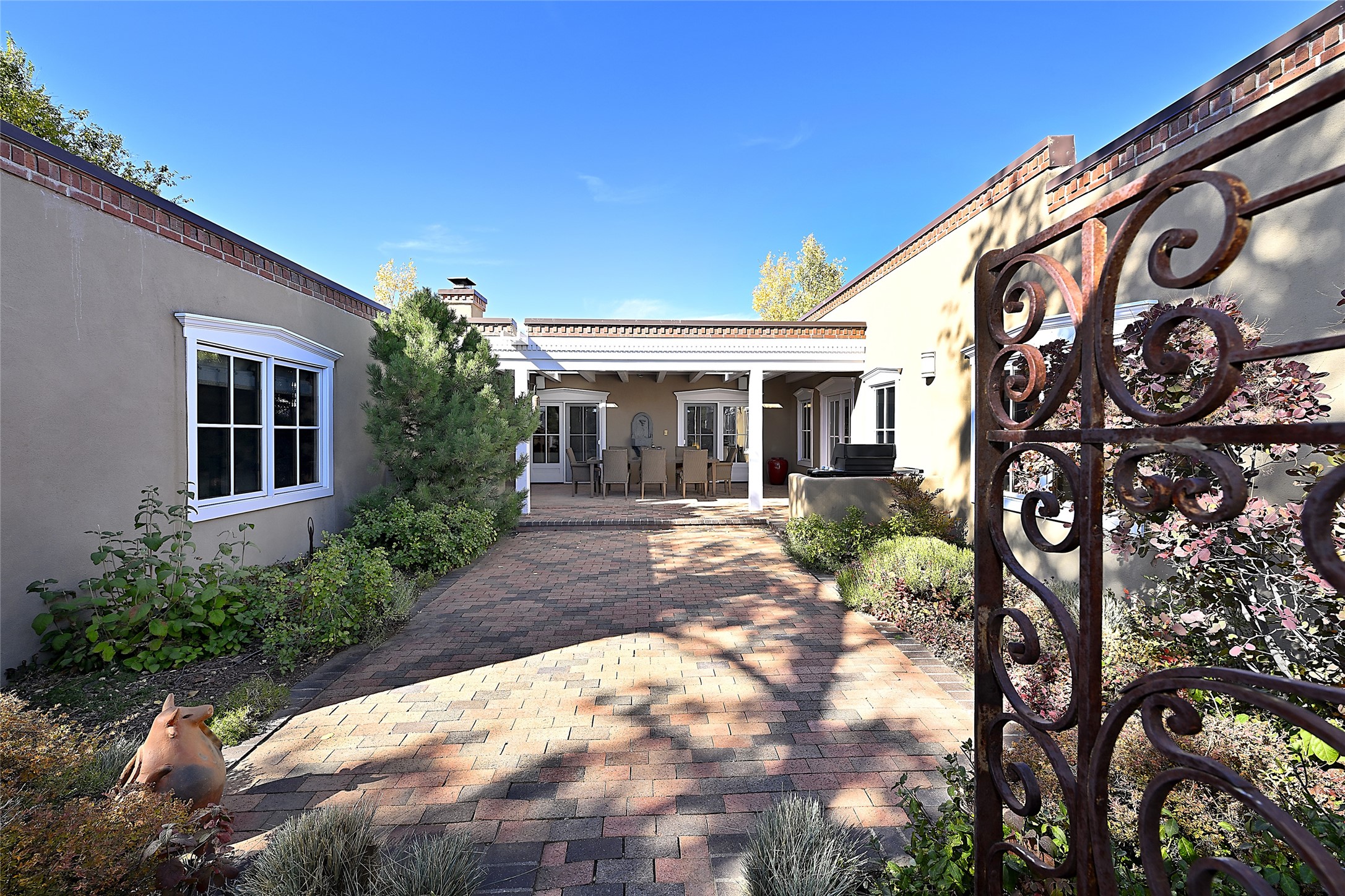 Unparalleled privacy is yours in this gated Museum Hill residence with 3 Bedrooms, 4 1/2 Baths, Office & Studio on 1.9 acres. It combines a classic Territorial exterior w Craftsman interior style, totally renovated by Wolf Corp in 2005. Living room features a cozy fireplace & wood-beamed ceiling. Kitchen is a culinary masterpiece w 4' x 8' granite island, Two Sub-Zero refrigerator drawers, 48" Sub-Zero refrigerator, 36" Wolf Range/Oven, walk-in pantry, counter-level gas fireplace plus breakfast nook w banco. Portal off Kitchen has a fireplace & soothing fountain. Media / Family Room includes a wine bar w Sub-Zero wine chiller, fireplace, easy access to the back portal & yard thru 2 sets of sliding glass doors plus adjacent Powder Bath. Art Studio is accessed from the back portal or through the 2-car Garage w large storage area. Master Bedroom & Bath suite offers a Kiva fireplace, dual walk-in closets, access to a private outdoor area w hot tub plus spacious bath w double sinks, steam shower & soothing soaking tub. Office has a built-in desk & en-suite bath. Bedroom 2 offers two twin beds & en-suite bath, while Bedroom 3 opens to the outdoor patio area & has an en-suite bath w double sinks. Special features include hand-forged hardware, custom alder cabinets, 3 forced-air heat and A/C units, as well as a new septic system in 2005. This property is a true gem--gated, renovated by Wolf Corp, on 1.9 acres, and just a short 1.1-mile stroll to Kaune's Market & the Food Trucks.