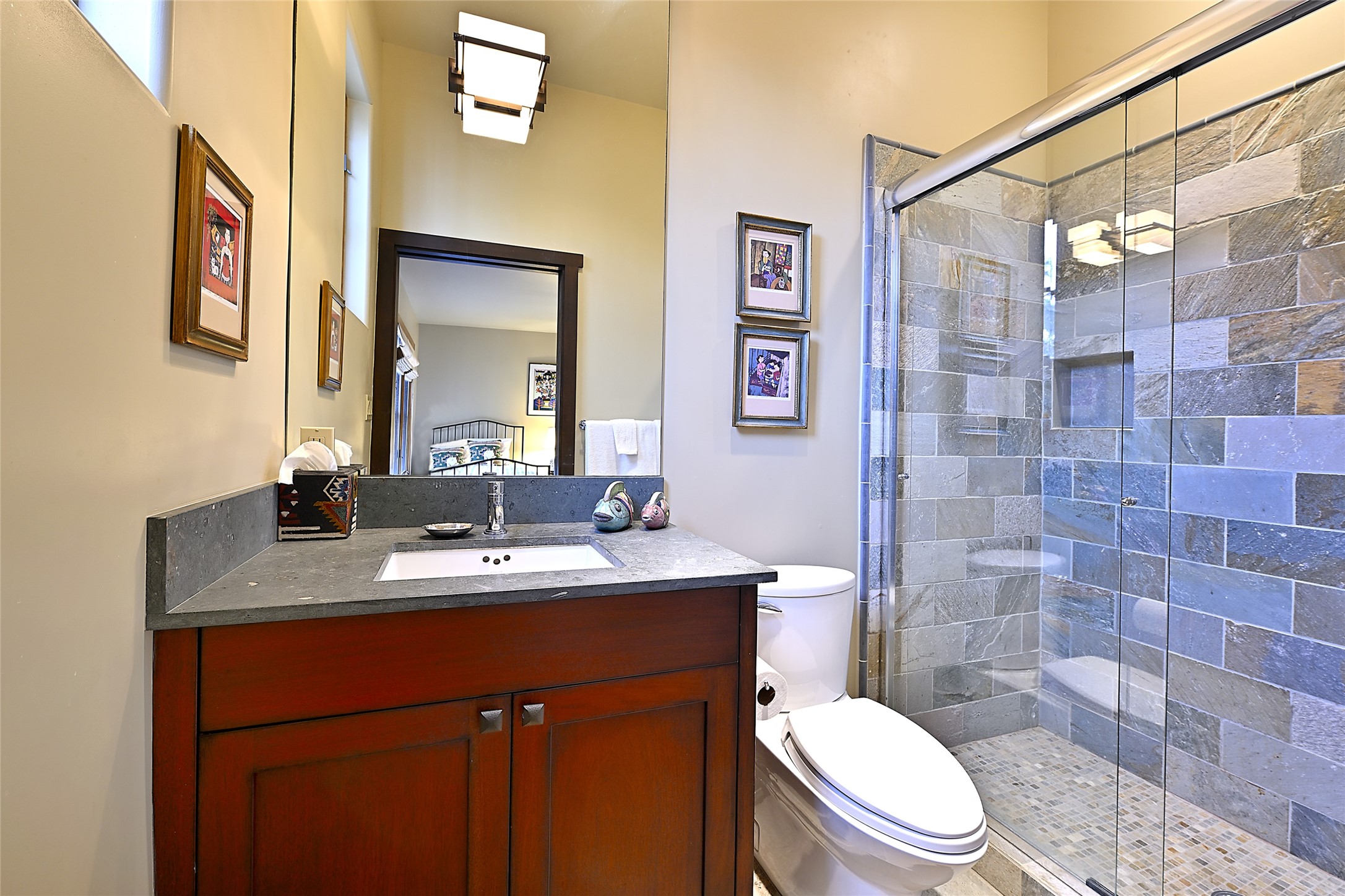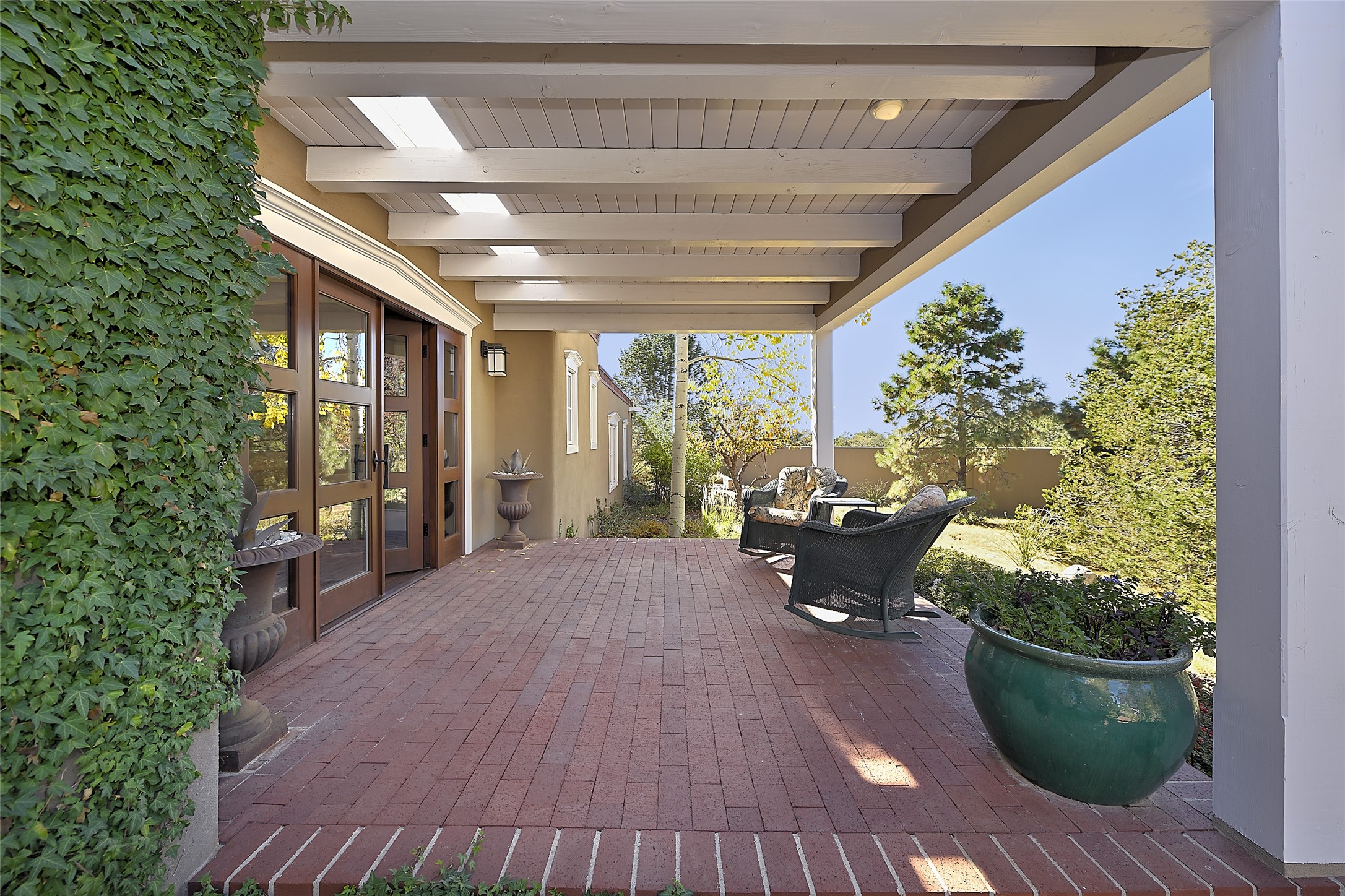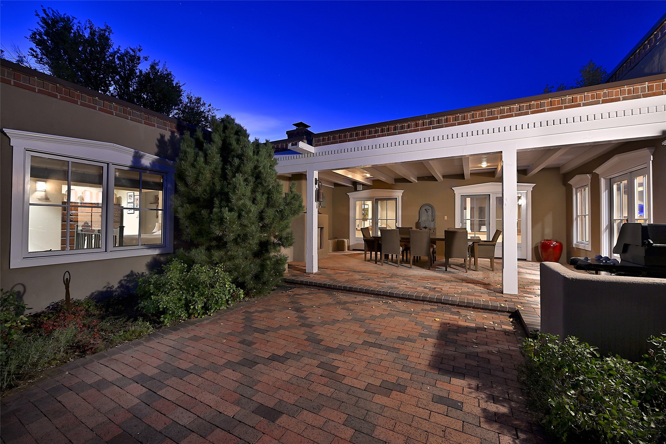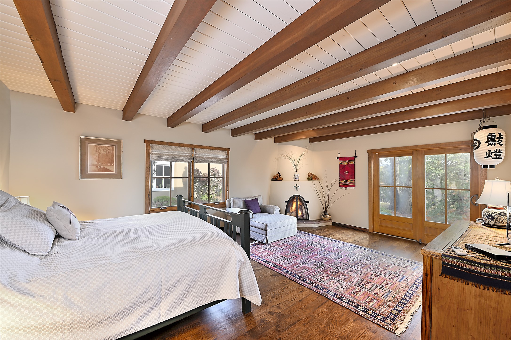 Unparalleled privacy is yours in this gated Museum Hill residence with 3 Bedrooms, 4 1/2 Baths, Office & Studio on 1.9 acres. It combines a classic Territorial exterior w Craftsman interior style, totally renovated by Wolf Corp in 2005. Living room features a cozy fireplace & wood-beamed ceiling. Kitchen is a culinary masterpiece w 4' x 8' granite island, Two Sub-Zero refrigerator drawers, 48" Sub-Zero refrigerator, 36" Wolf Range/Oven, walk-in pantry, counter-level gas fireplace plus breakfast nook w banco. Portal off Kitchen has a fireplace & soothing fountain. Media / Family Room includes a wine bar w Sub-Zero wine chiller, fireplace, easy access to the back portal & yard thru 2 sets of sliding glass doors plus adjacent Powder Bath. Art Studio is accessed from the back portal or through the 2-car Garage w large storage area. Master Bedroom & Bath suite offers a Kiva fireplace, dual walk-in closets, access to a private outdoor area w hot tub plus spacious bath w double sinks, steam shower & soothing soaking tub. Office has a built-in desk & en-suite bath. Bedroom 2 offers two twin beds & en-suite bath, while Bedroom 3 opens to the outdoor patio area & has an en-suite bath w double sinks. Special features include hand-forged hardware, custom alder cabinets, 3 forced-air heat and A/C units, as well as a new septic system in 2005. This property is a true gem--gated, renovated by Wolf Corp, on 1.9 acres, and just a short 1.1-mile stroll to Kaune's Market & the Food Trucks.