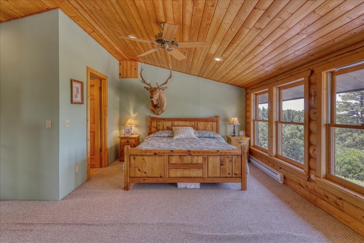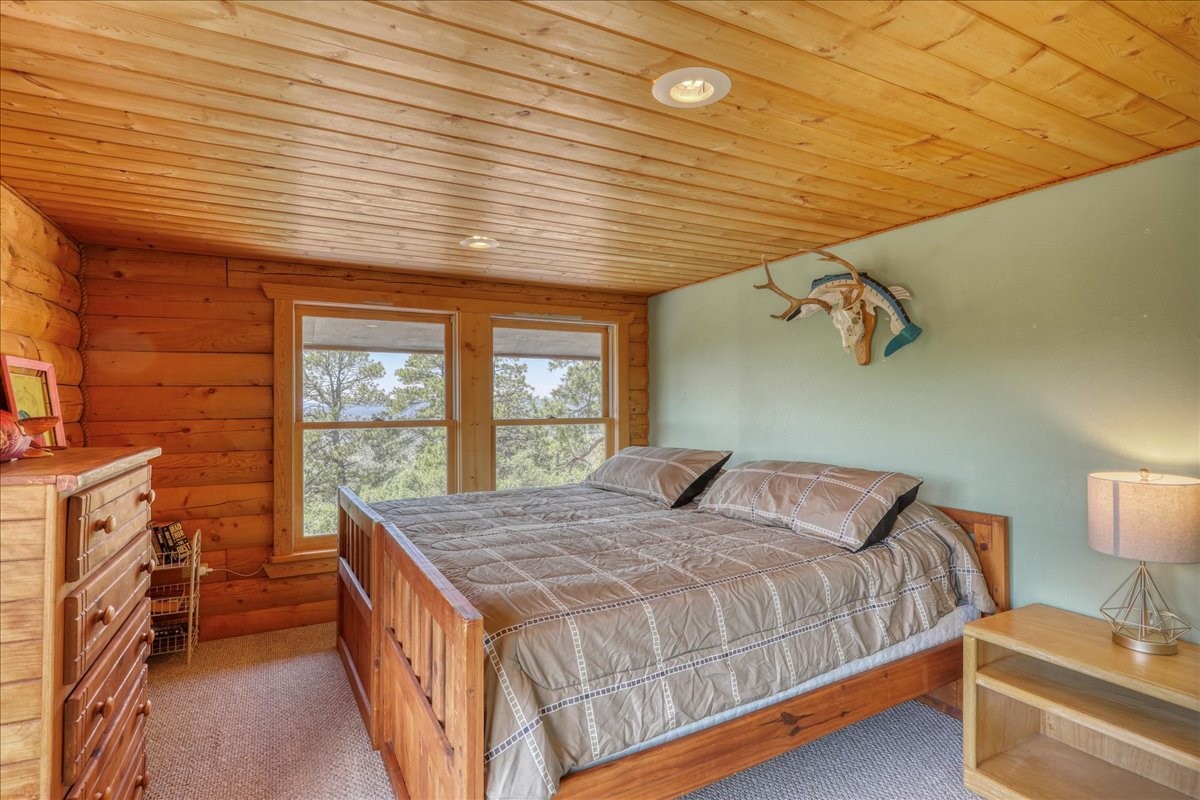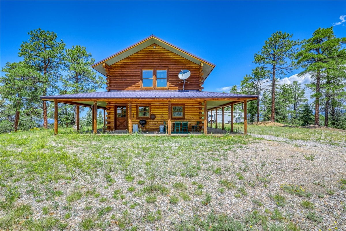 Picture yourself living on top of the world with 360 degree views of the mountains. To the west is Heron Lake and north is Chama Peak. Down below are meadows and rocky canyons which are home to many different species of wildlife making this a true mountain oasis. The ground floor of this log home has an expansive living/dining area with ample room for all the family and friends and includes the laundry and a 1/2 bath. Upstairs is a deluxe master suite with a 3/4 bath and the 2nd bedroom with it's own private 3/4 bath. The land is very diverse from mountain tops to valley meadows and extreme rock canyons. Enjoy sitting by the fire and or enjoying the sunset or apply for elk permits and hunt elk, deer and turkey on your own piece of this Northern NM paradise. Interactive map on video link