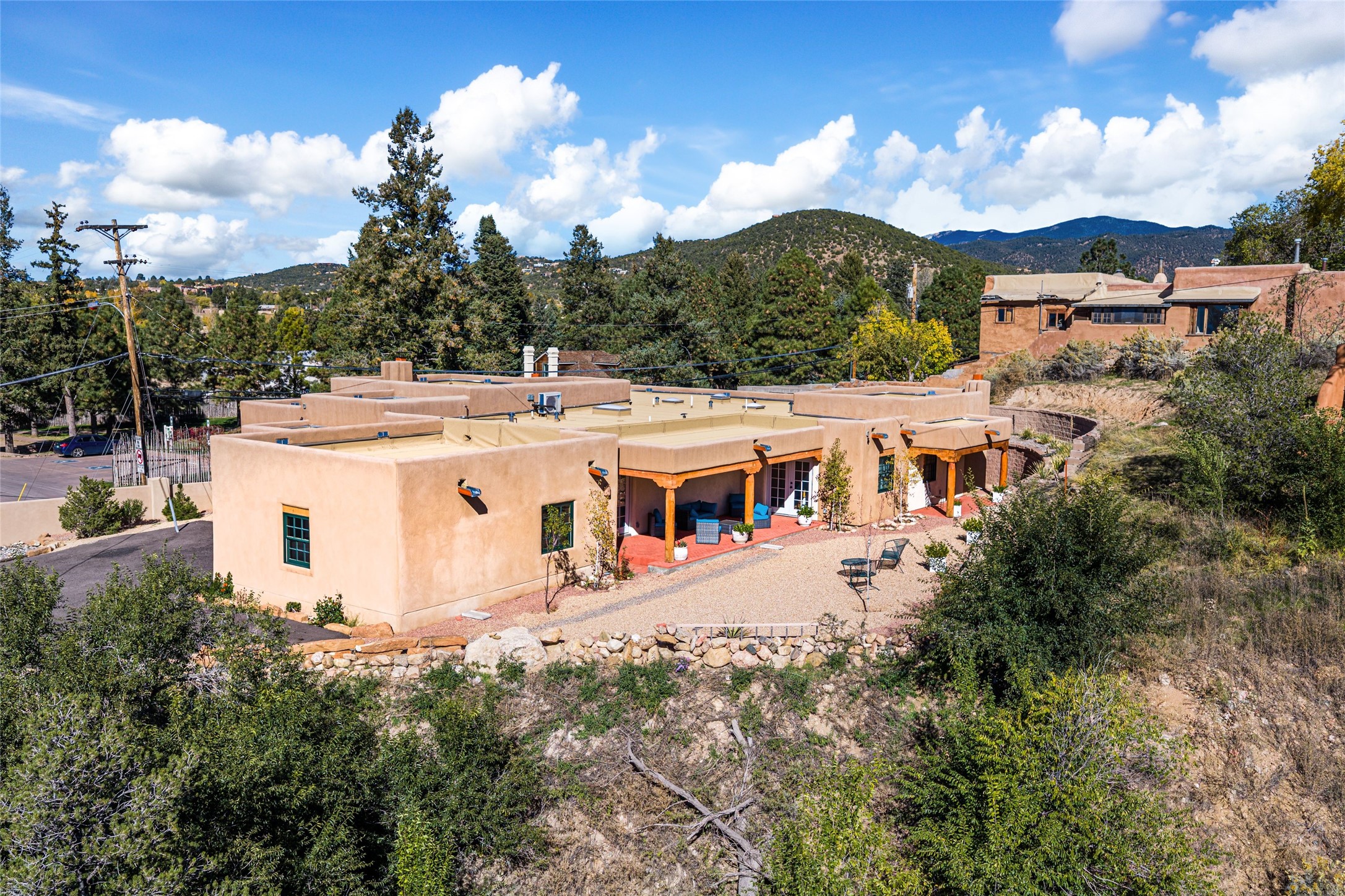 Elegant Eastside Living on Upper Canyon Road - Set in a premier Eastside location across from the tree-lined Santa Fe River Park, this beautifully designed and built 4-bedroom, 4.5-bathroom estate blends timeless Southwestern charm with modern luxury. Offering approximately 3,800 square feet on a 0.45-acre lot, the property includes a 3BD/3BA main residence and a 1BD/1BA guest suite, thoughtfully designed for comfort, privacy, and style. Inside, clean architectural lines meet regional authenticity with vigas, corbels, and nichos, complemented by diamond-finish plaster walls, wide porcelain tile, and rich wood flooring. The open-concept layout flows seamlessly through the home, anchored by a chef's kitchen with custom cabinetry, stainless steel appliances, a farmhouse sink, and an expansive marble center island. The living and dining spaces feature vaulted ceilings, art-worthy wall space, and abundant natural light. A serene primary suite offers a walk-in closet, artisan stained-glass windows, and a spa-like bath with soaking tub and glass-enclosed shower. Radiant heat and mini-split systems (with heat and a/c) throughout ensure year-round comfort. The landscaped grounds invite outdoor living with portals and patios ideal for entertaining or quiet reflection. A privacy wall encloses the property, and an oversized one-car garage offers additional storage. Located near the historic Cristo Rey Church--a landmark by architect John Gaw Meem--this property captures the essence of Santa Fe living: elegant, rooted in history, and surrounded by natural beauty.