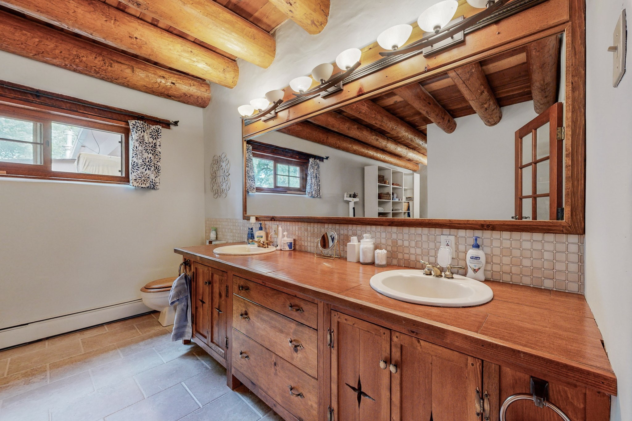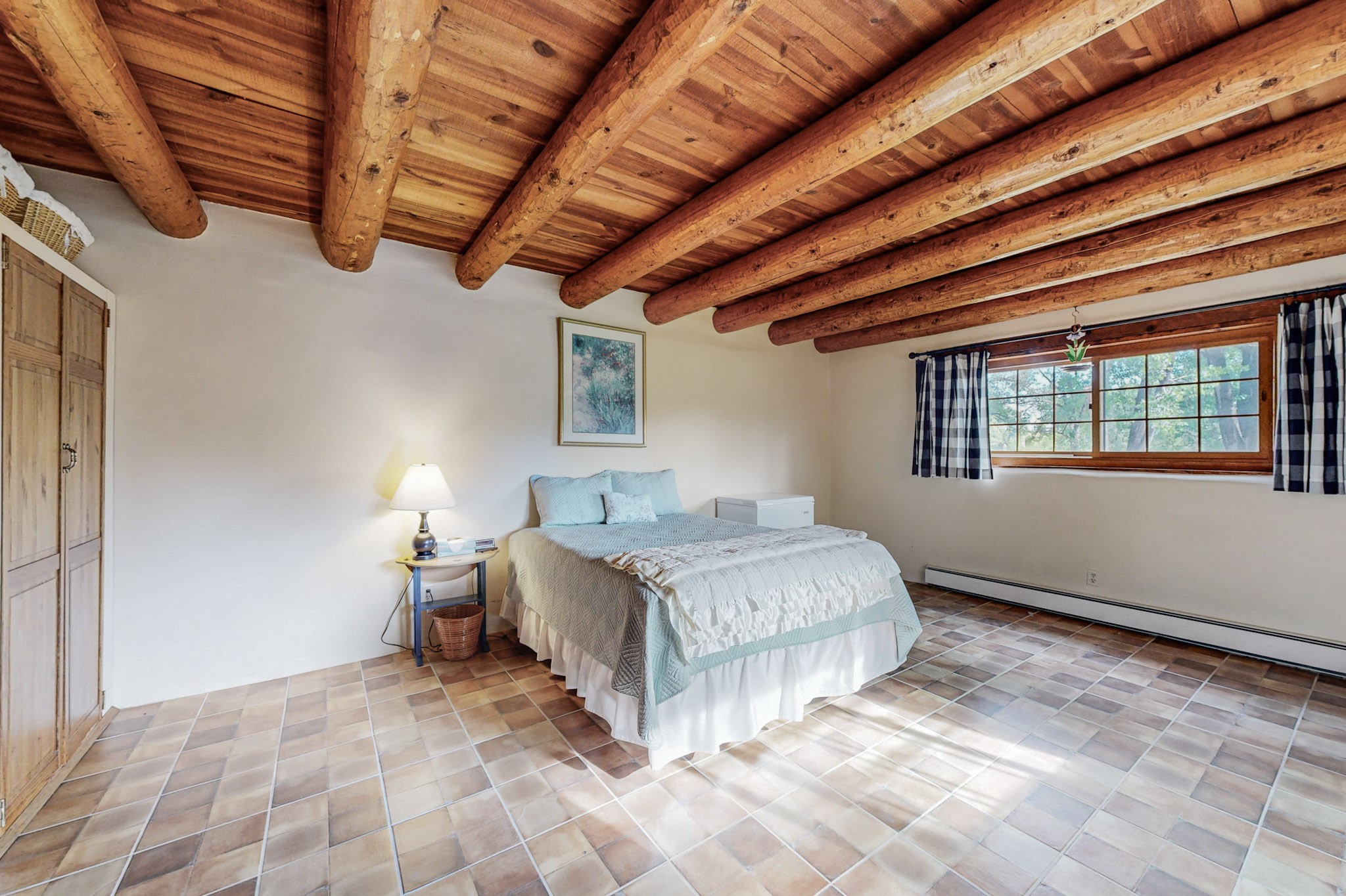 HUGE PRICE REDUCTION. A beautiful 2,588 square foot adobe home, surrounded by trees, shrubs, and wild flowers is a home and land that are rarely found together. As one approaches the house, there is a walled courtyard, with a flagstone sidewalk and flower beds, ready to make yours. Upon entering the home, one is welcomed into the living-room/ family room, by the view of a kiva fireplace to the right, the beautiful ceilings, with the vigas, separated by wood planks, the beautiful bright and shiny wood floors, and then there are the double adobe walls that are visible as one looks at the windowsill that once showcased many plants. The initial part of the house has double adobe walls. This part of the home has the kitchen, dining area, family/living room and a 3/4 bath. The kitchen/dining area is a sight. The stainless steel refrigerator and freezer do stand separately. Having a full-size freezer in the kitchen is very convenient. The bedrooms and owner suite bathroom is large, and spacious. The beautiful kiva fireplace makes this en suit very cozy and inviting. A good sized office, craft room, study, whatever the new owner wants to make it, is between the two bedrooms. The second bedroom, spacious as it is, could easily be more than just a bedroom. There is a detached, two car garage and another separate building for storage. Although the Chama river does not run directly alongside the land, one can watch the river meander and listen to the water flow. Imagine what this beautiful running body of water has to offer, a chance to relax and listen to the splashing water, and observe the sky and grandeur of nature. Minutes away from Los Alamos, Espanola, Santa Fe, and Abiquiu, this just may be the home you had only dreamed of. Time to make your dream come true.