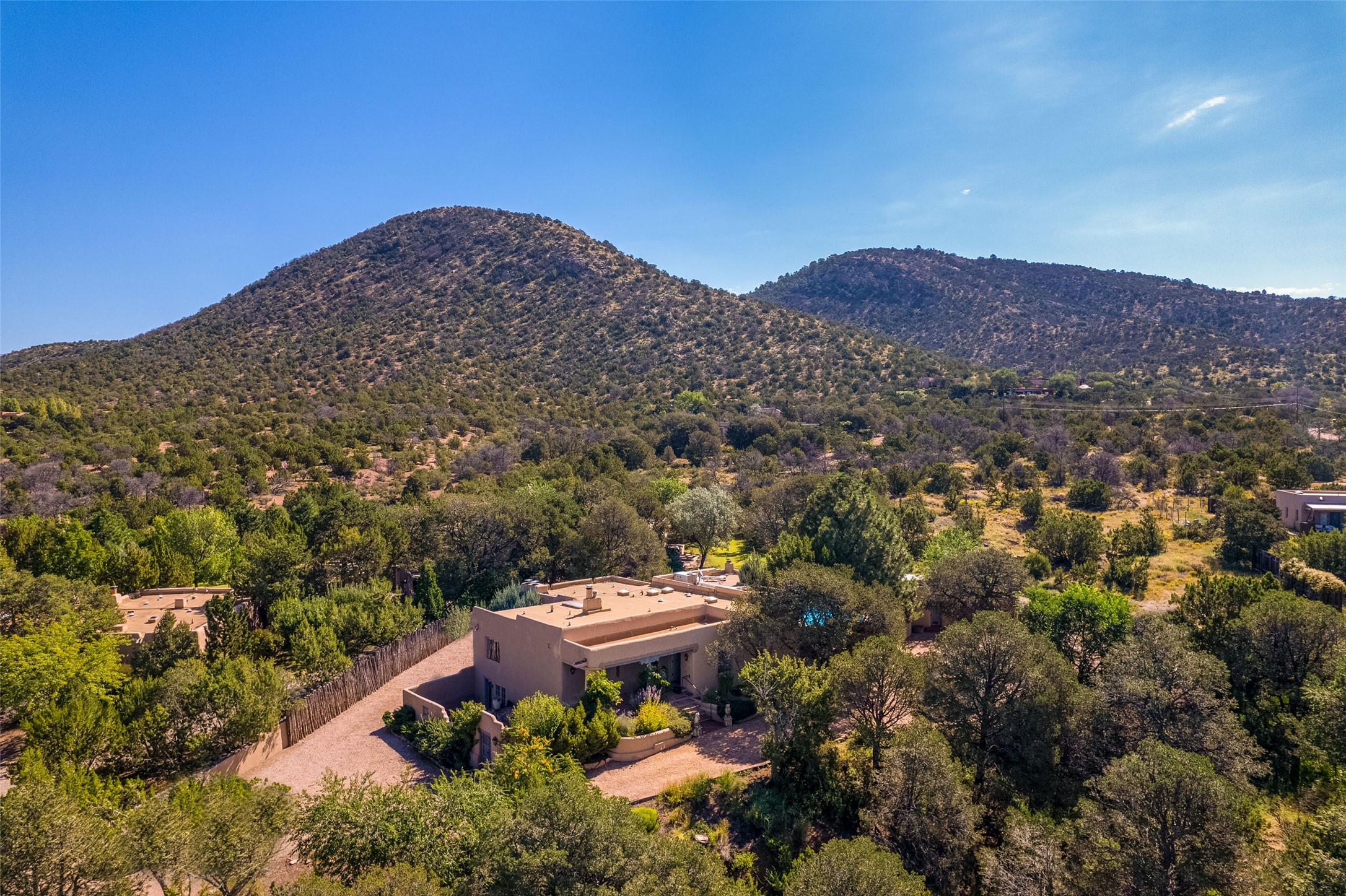 Welcome to 3881 Old Santa Fe Trail -- a thoughtfully reimagined property that honors its historic roots while embracing refined modern living. Originally sited circa 1947, this exceptional home rests peacefully on a serene 2-acre parcel, offering breathtaking views of both Sun and Moon Mountains. Every element of the renovation -- indoors and out -- has been approached with care, creativity, and a deep respect for the land and its legacy. The property beautifully blends old-world charm with contemporary elegance. A fully restored Casita now includes a luxurious steam room, while the tastefully redesigned Main House features distinctive architectural details, curated finishes, and upgraded amenities throughout. Step outside and discover a private saltwater pool -- the perfect sanctuary for relaxation or entertaining under Santa Fe skies. This home is a rare opportunity to experience the best of Santa Fe living -- timeless, soulful, and vibrant.