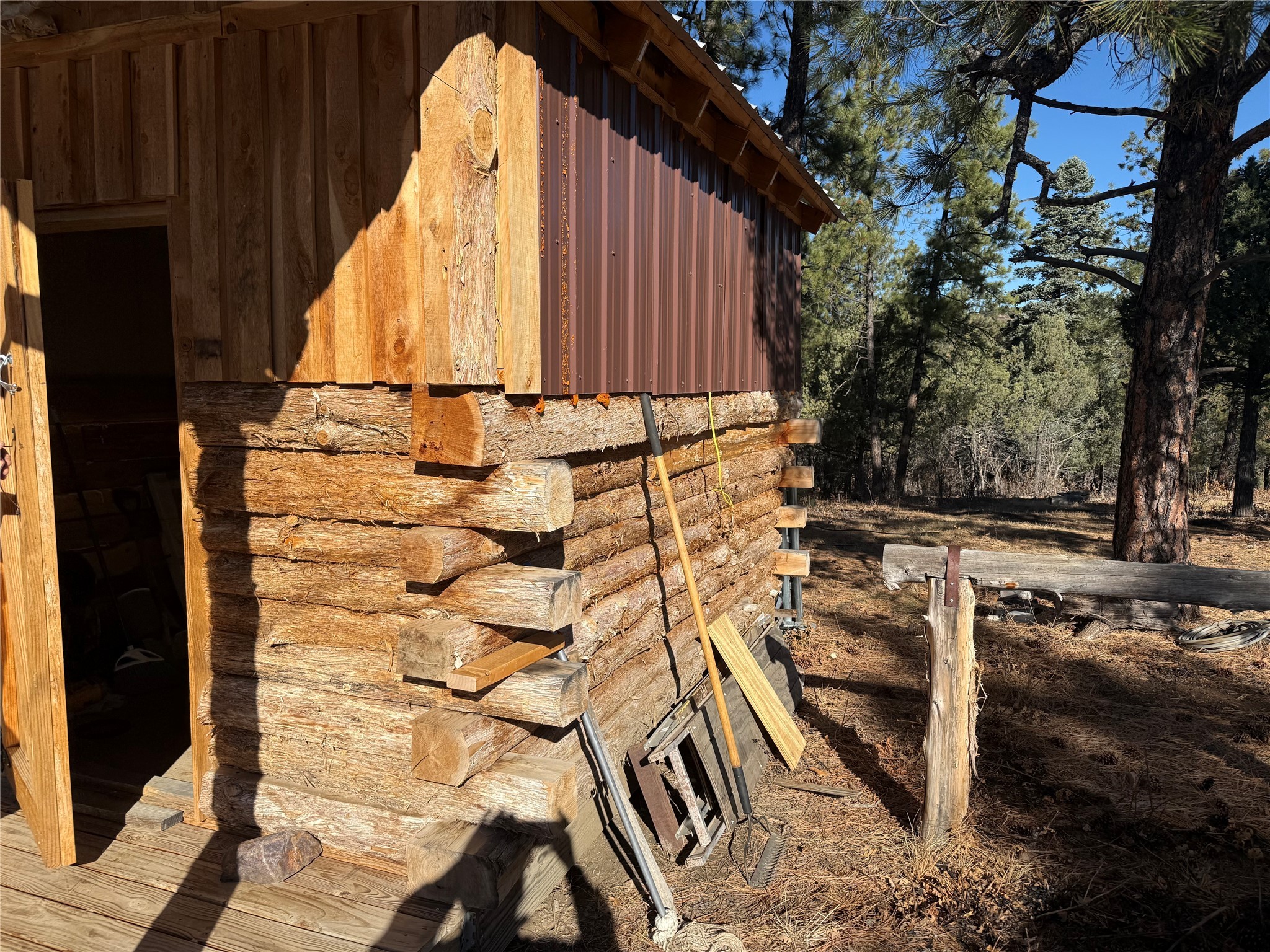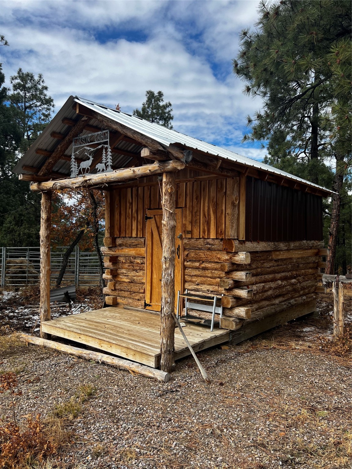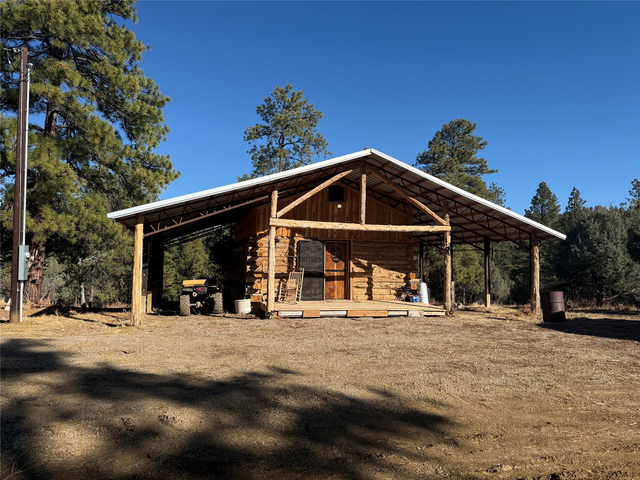 This incredibly Rustic Red Cedar Log Home is situated on 7.17 +/- Acres in the Ponderosa S/D. Property feature spectacular views toward Lake Heron and has a great mix of mature Ponderosa Pine Trees and Oak Brush. Elk, Mule Deer, and loads of Turkey meander through this property frequently which makes for great entertainment. Property is on it's own septic system and has underground electric. Property owner has been hauling water to a 500 galloon storage container which is buried. Property has a tack room or storage area separate from the house with corrals behind it. Home features a open plan with a separate bathroom and loft. This would make a great base camp for the mountains or a full time residence. Don't miss out on this extremely unique property.