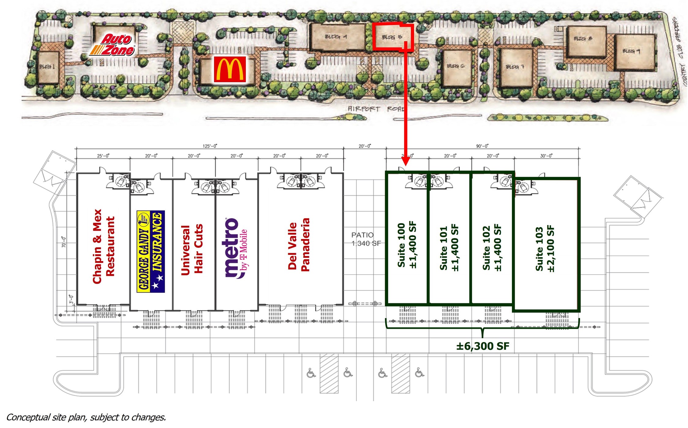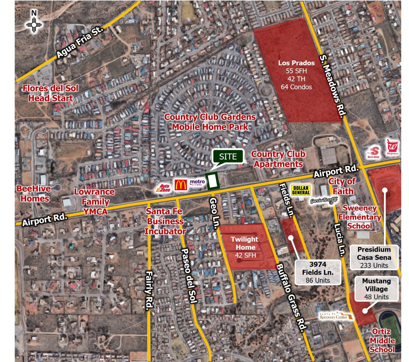 AVAILABLE: Lot 5: 0.53 Ac. | SALE PRICE: $595,000 ($13.66/SF) | ZONING: SC-1 | Planned Shopping Center | HIGHLIGHTS: Located in a growing commercial & residential area, Excellent business exposure, Lot approved for up to 6,300 SF Building, Utilities on site, Located between 599 Hwy and Cerrillos Rd. (1.7miles), On Airport Rd. at lighted intersection, Part of Esplanade shopping center, Ideal uses: Retail shops, Restaurants, Bank/financial institutions, Office & Medical services, Cannabis Retail
