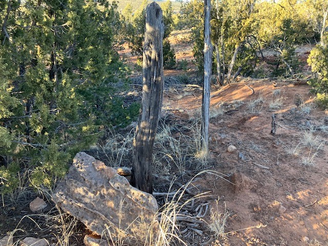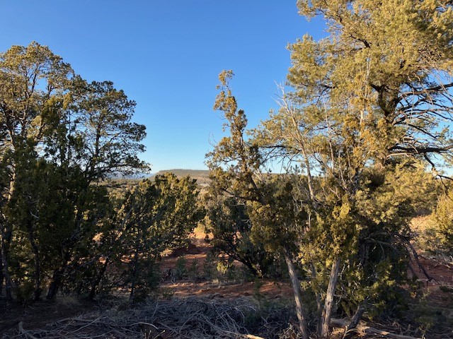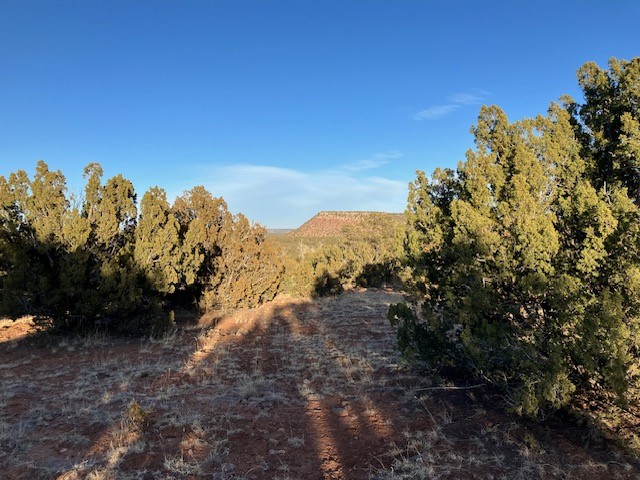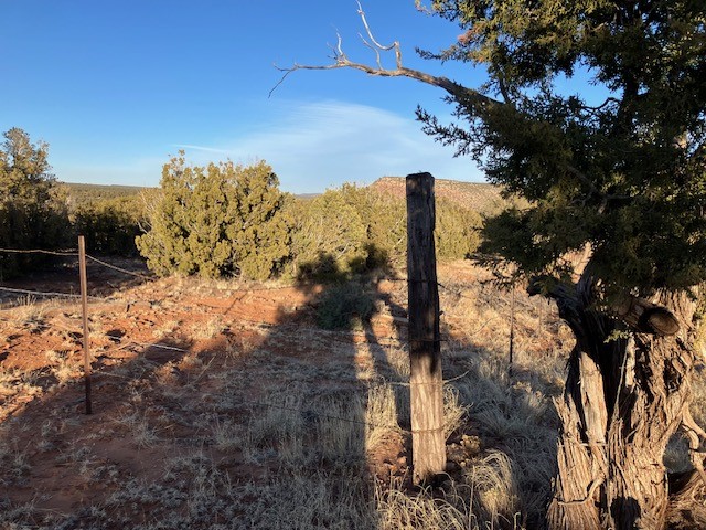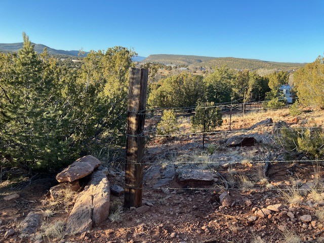 Pinon and juniper wooded acreage with no HOA or covenants, no utilities, but wonderful close up views of Starvation Peak. Good places to build. Good dirt road to property, only about a mile from the paved frontage road. Electricity is at the lot line with the neighboring property. Fenced on two sides.