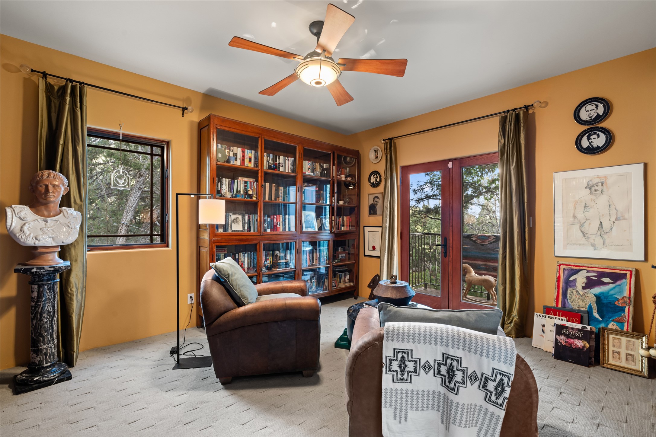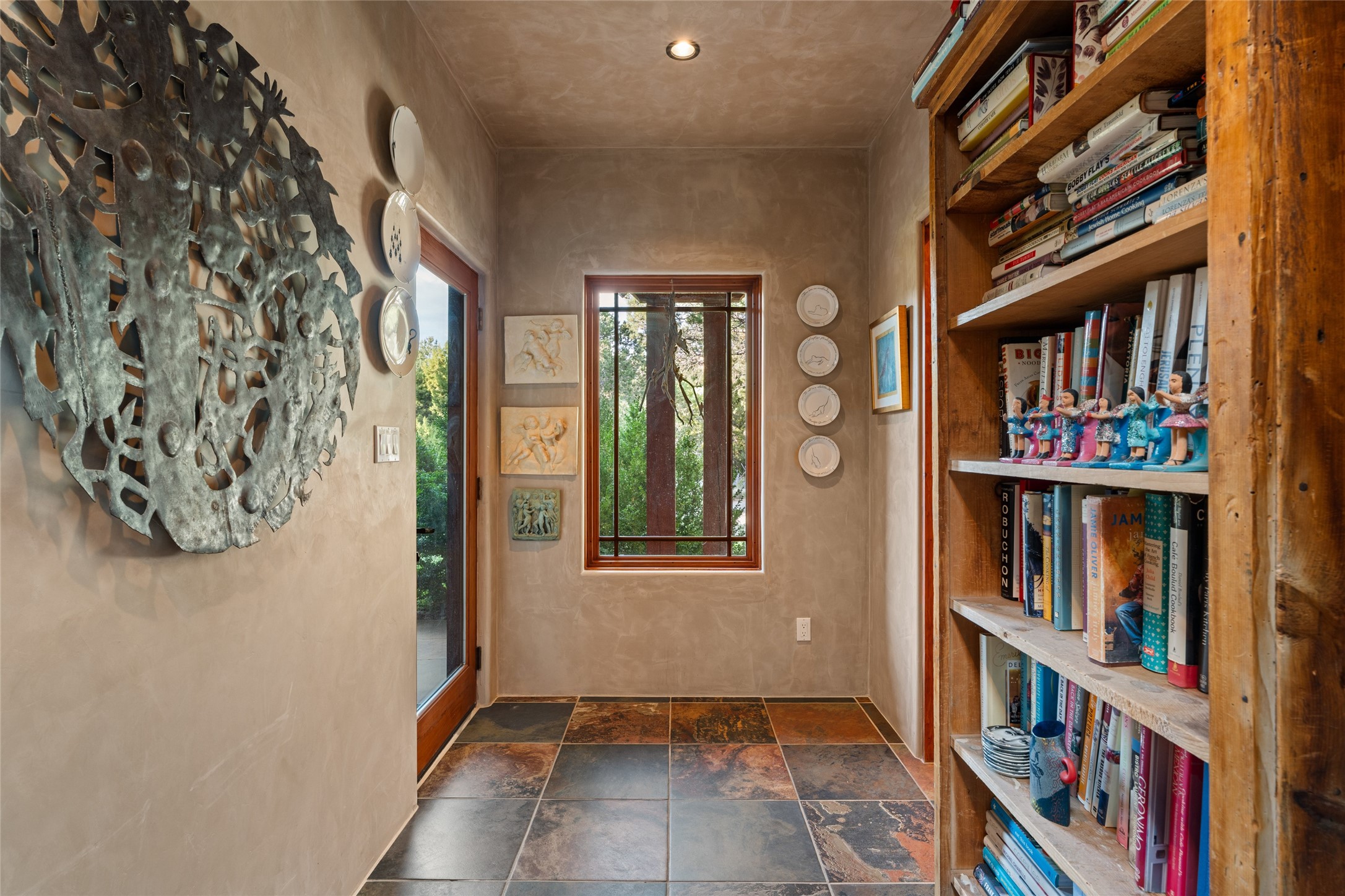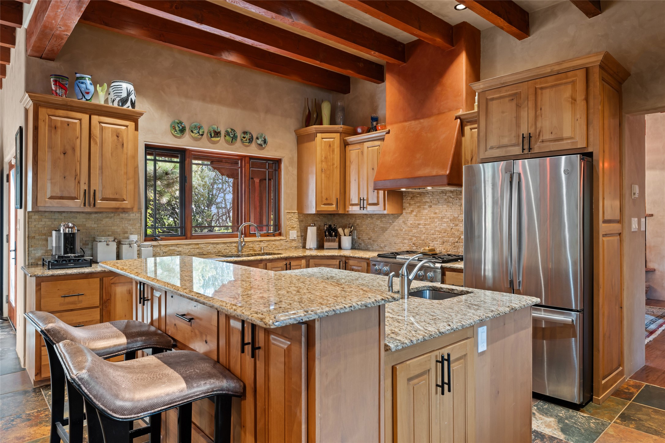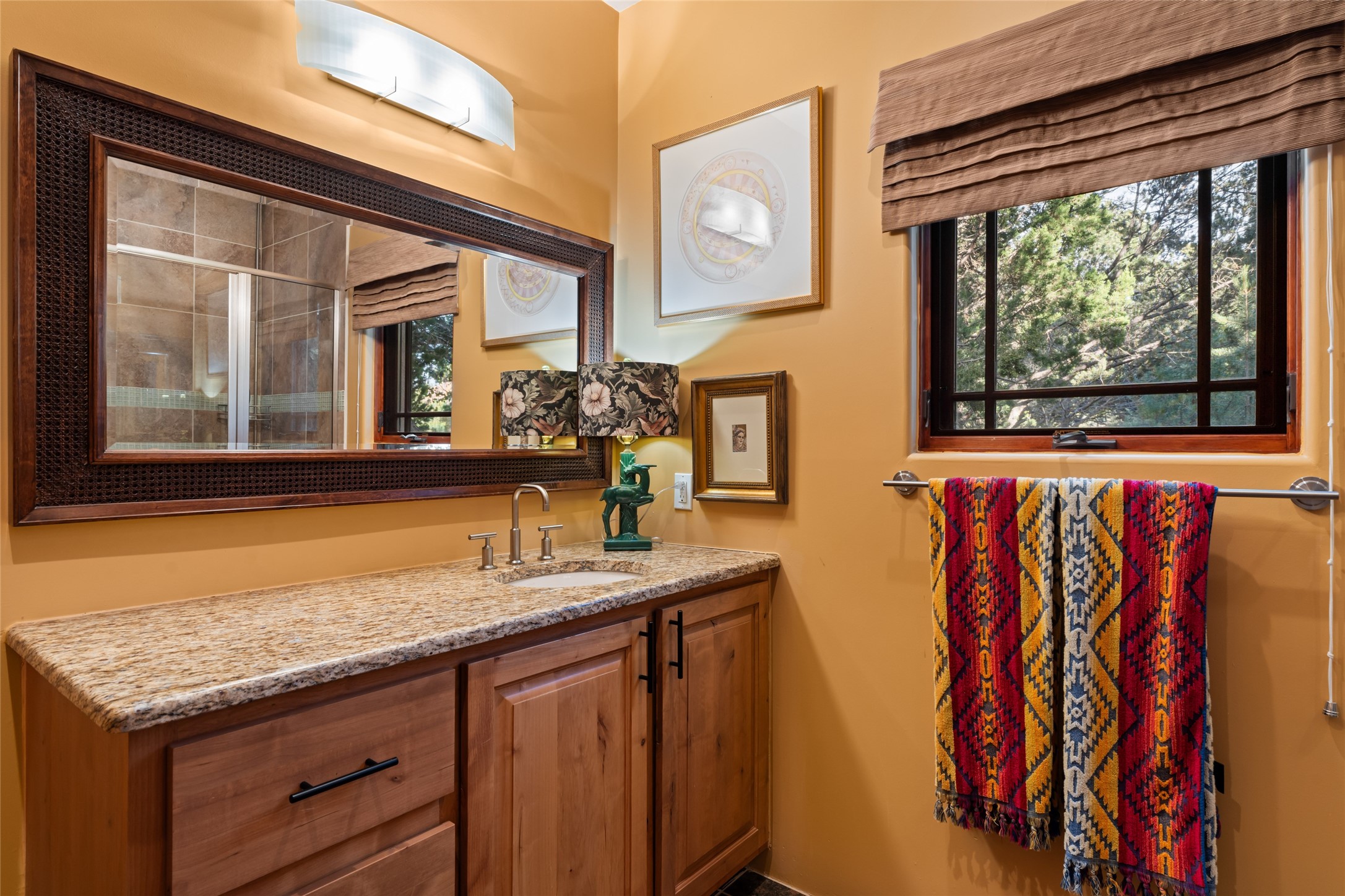 The owners have created a very special sanctuary in the highly desirable Sierra Del Norte neighborhood. The home is a picture of high-end elegance with an incredible outdoor living room portal for entertaining overlooking the gardens and so much more. This is a gardeners dream with outdoor spaces you must see to believe. From the cottonwoods, aspens, walking paths, water features, garden pergola with hot tub and fire pit to the lavishly and tastefully landscaped surroundings, this property is both one of kind intriguing and blissful. The gorgeous kitchen and wet bar, main living spaces and primary suite on the first floor are stunning in every way. Three bedrooms each with their own bathrooms provide ample space and privacy for guests. There is a beautiful double sided fireplace. A kiva in the primary suite and a kiva in the outdoor entertainment area. The home is six minutes from the Plaza. The roads are paved and maintained. The home is insurable.