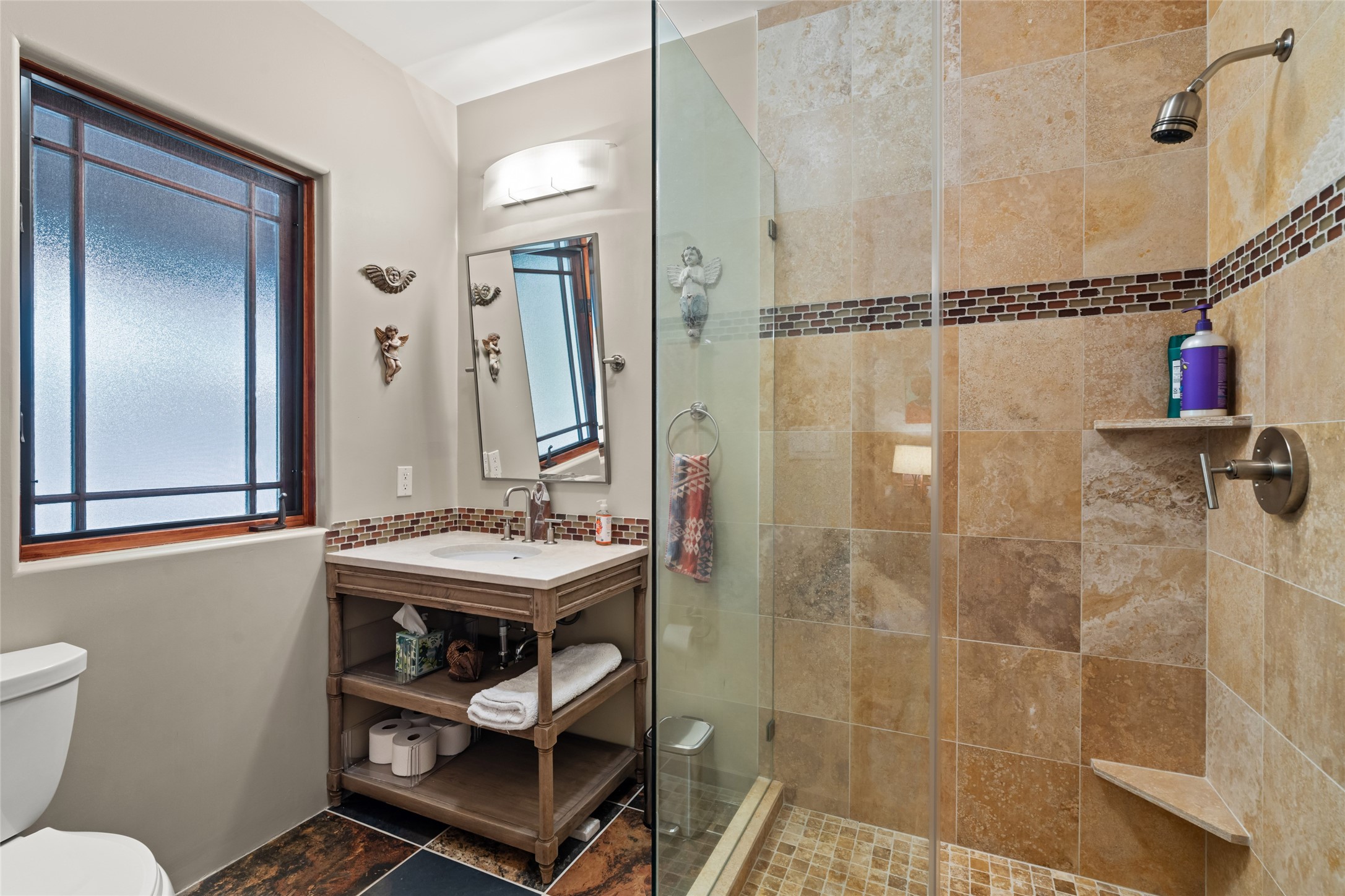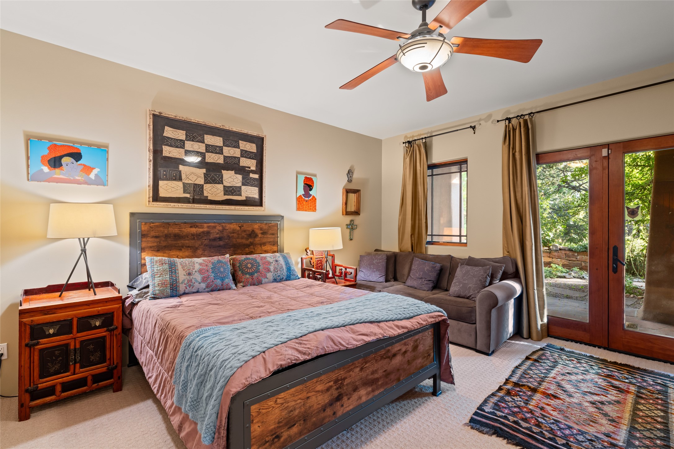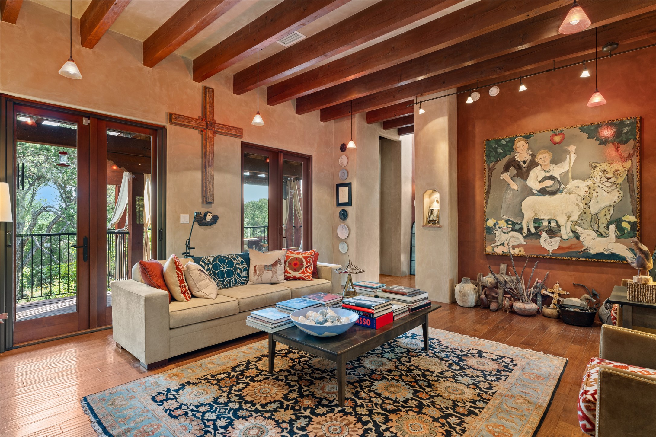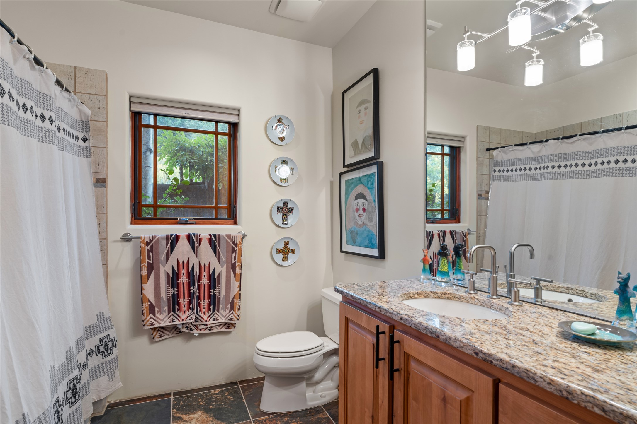 The owners have created a very special sanctuary in the highly desirable Sierra Del Norte neighborhood. The home is a picture of high-end elegance with an incredible outdoor living room portal for entertaining overlooking the gardens and so much more. This is a gardeners dream with outdoor spaces you must see to believe. From the cottonwoods, aspens, walking paths, water features, garden pergola with hot tub and fire pit to the lavishly and tastefully landscaped surroundings, this property is both one of kind intriguing and blissful. The gorgeous kitchen and wet bar, main living spaces and primary suite on the first floor are stunning in every way. Three bedrooms each with their own bathrooms provide ample space and privacy for guests. There is a beautiful double sided fireplace. A kiva in the primary suite and a kiva in the outdoor entertainment area. The home is six minutes from the Plaza. The roads are paved and maintained. The home is insurable.