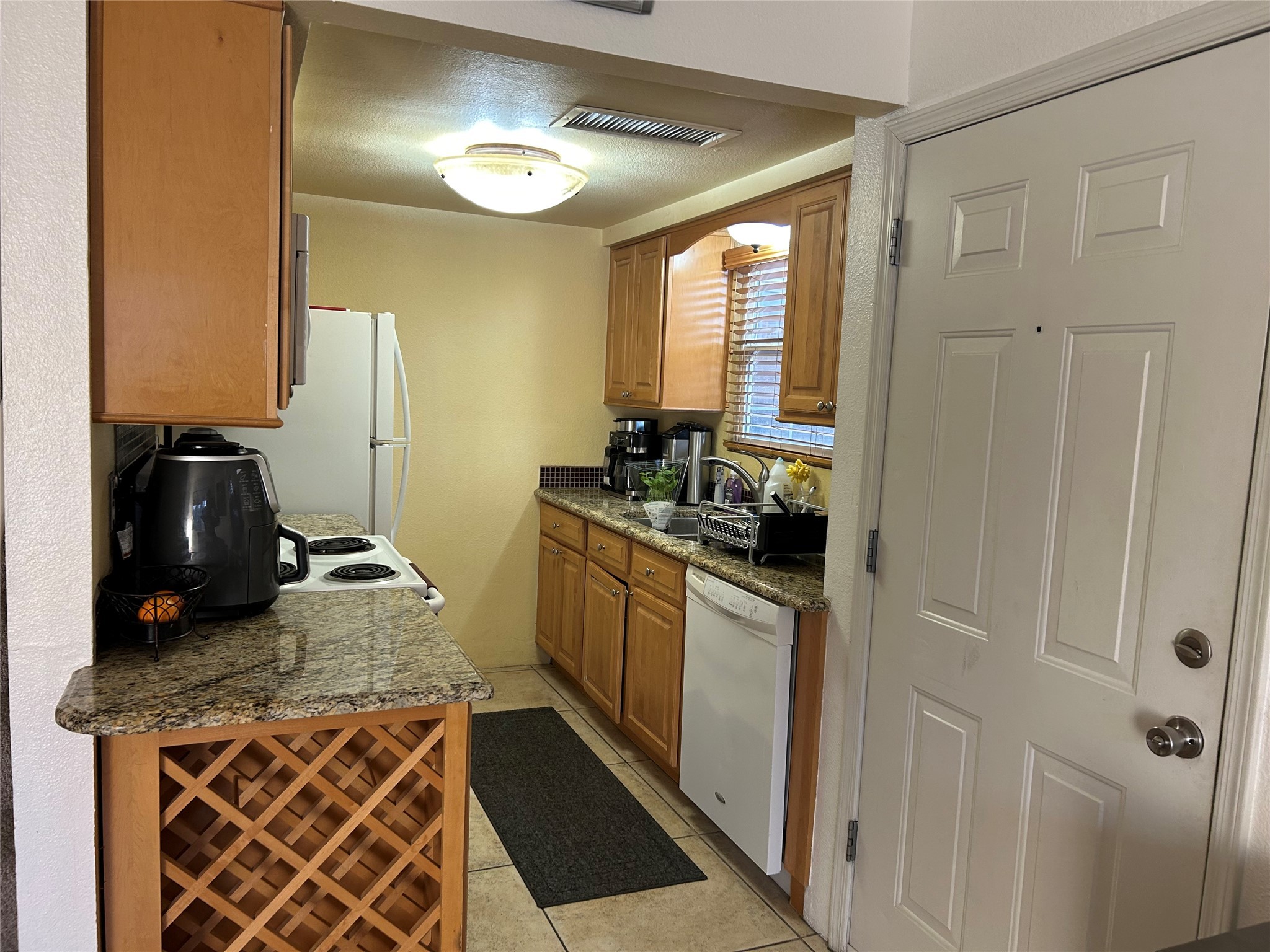 Lovely 1 bed, 1 full bath. Woodburning fireplace. Remodeled with granite countertop in kitchen and built-in wine rack. Townhouse model (no one above you). Small patio/yard area. Association includes pool, clubhouse, fitness center, walking trails, BBQ area, and dog run.