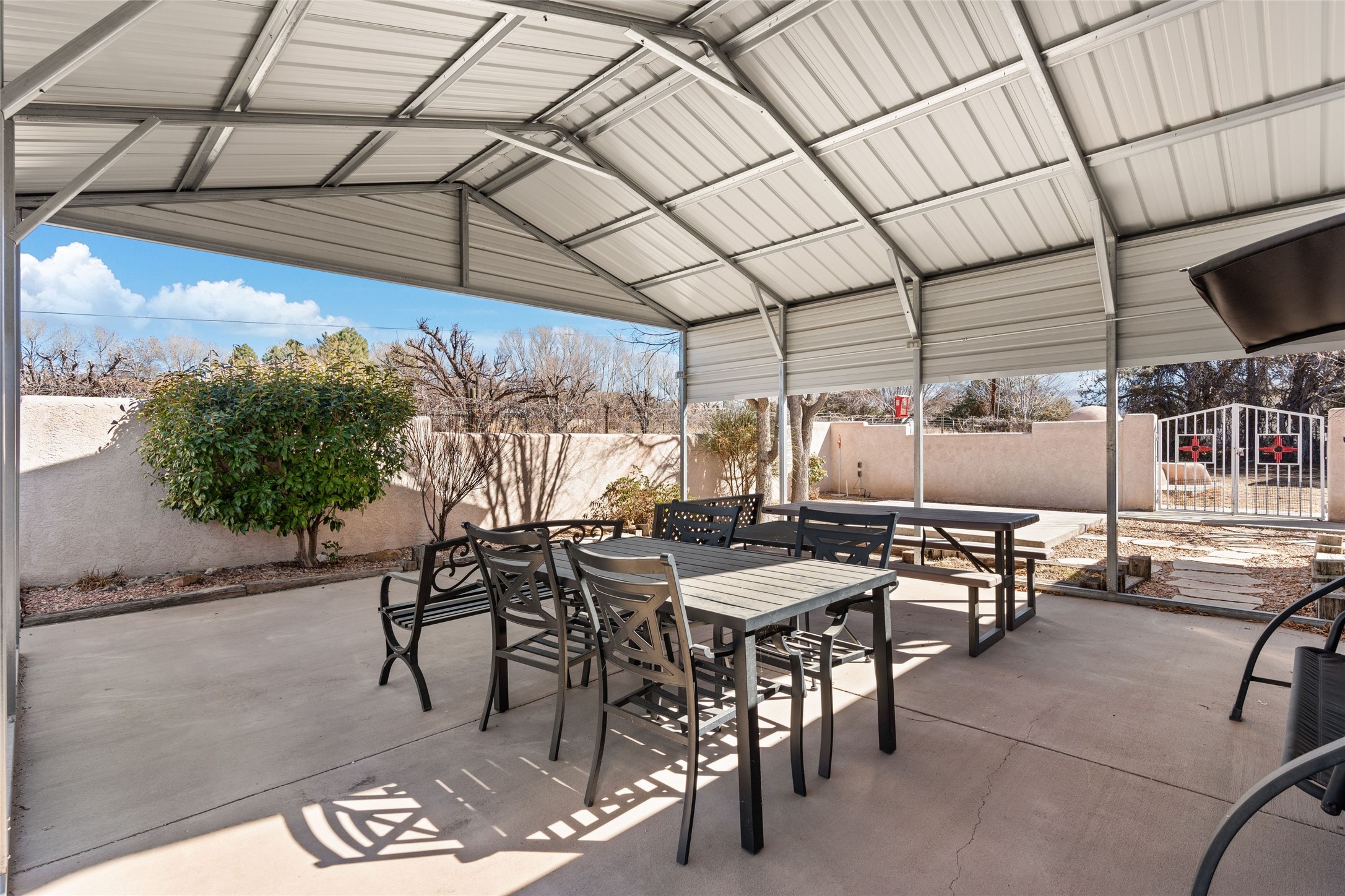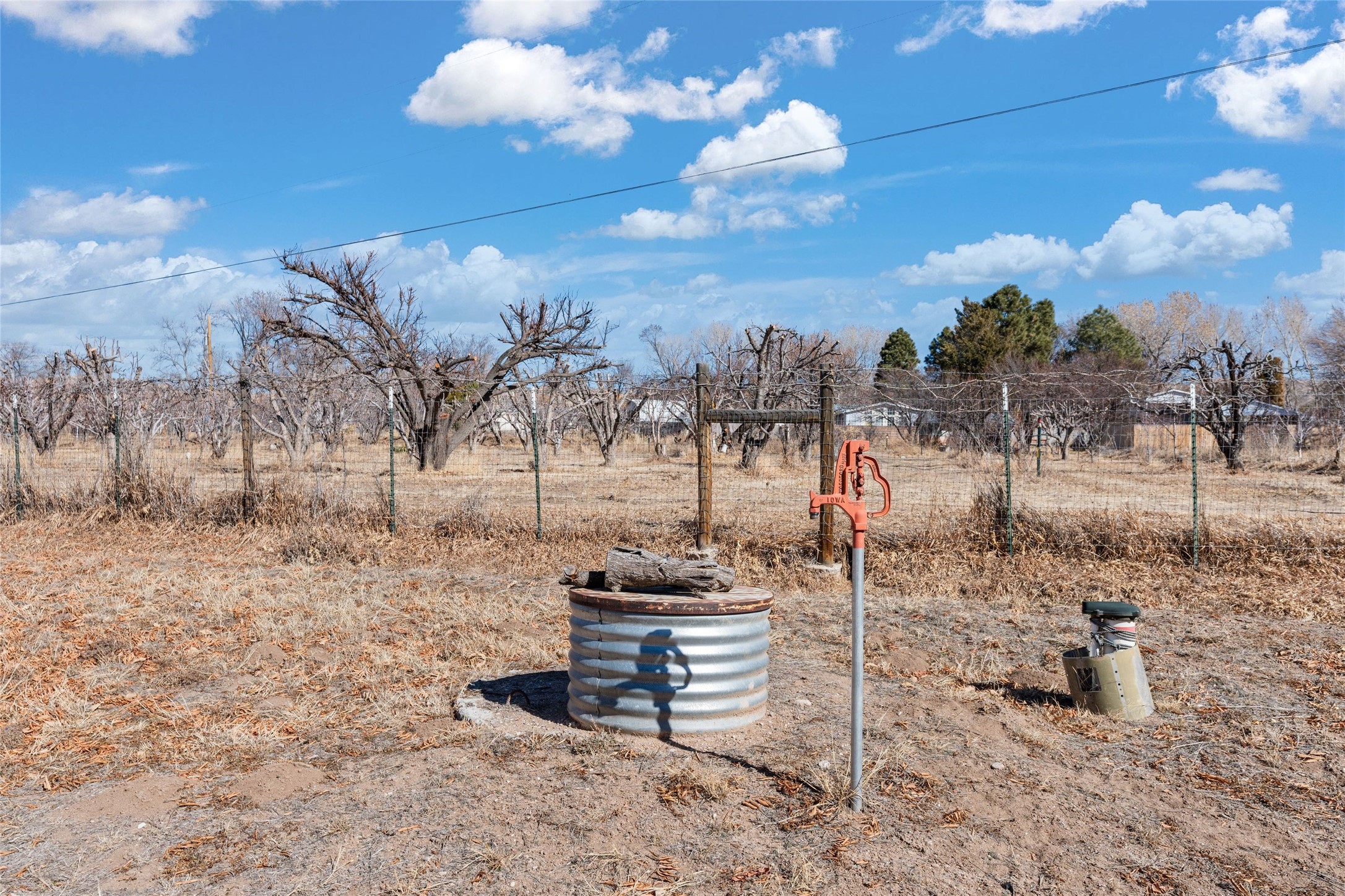 BACK ON THE MARKET AND AVAILABLE. BUYERS FINANCING FELL THROUGH! This lovely modern home boasts a beautiful, private setting in rural Chimayo with an orchard behind and pastures in front opening onto spectacular views of the barrancas and Sangre de Cristo Mountains. Enjoy clean, bright, open spaces inside with three bedrooms and 2 bathrooms. Outside an enclosed courtyard has covered portal, covered patio and fruit trees. The property has a finished attached garage, a carport and a detached garage along with a storage building. Perfect for the car enthusiast. Private Well and Surface water rights for your orchard and gardens. Entire property is fenced and gated. The location is quiet, far from the traffic and yet only 35 minutes from Santa Fe. A short distance to the Chimayo weaving and art galleries and the Santuario. Plenty of outdoor activities in the area include hiking, snow skiing, biking, fishing, rafting and horseback riding.