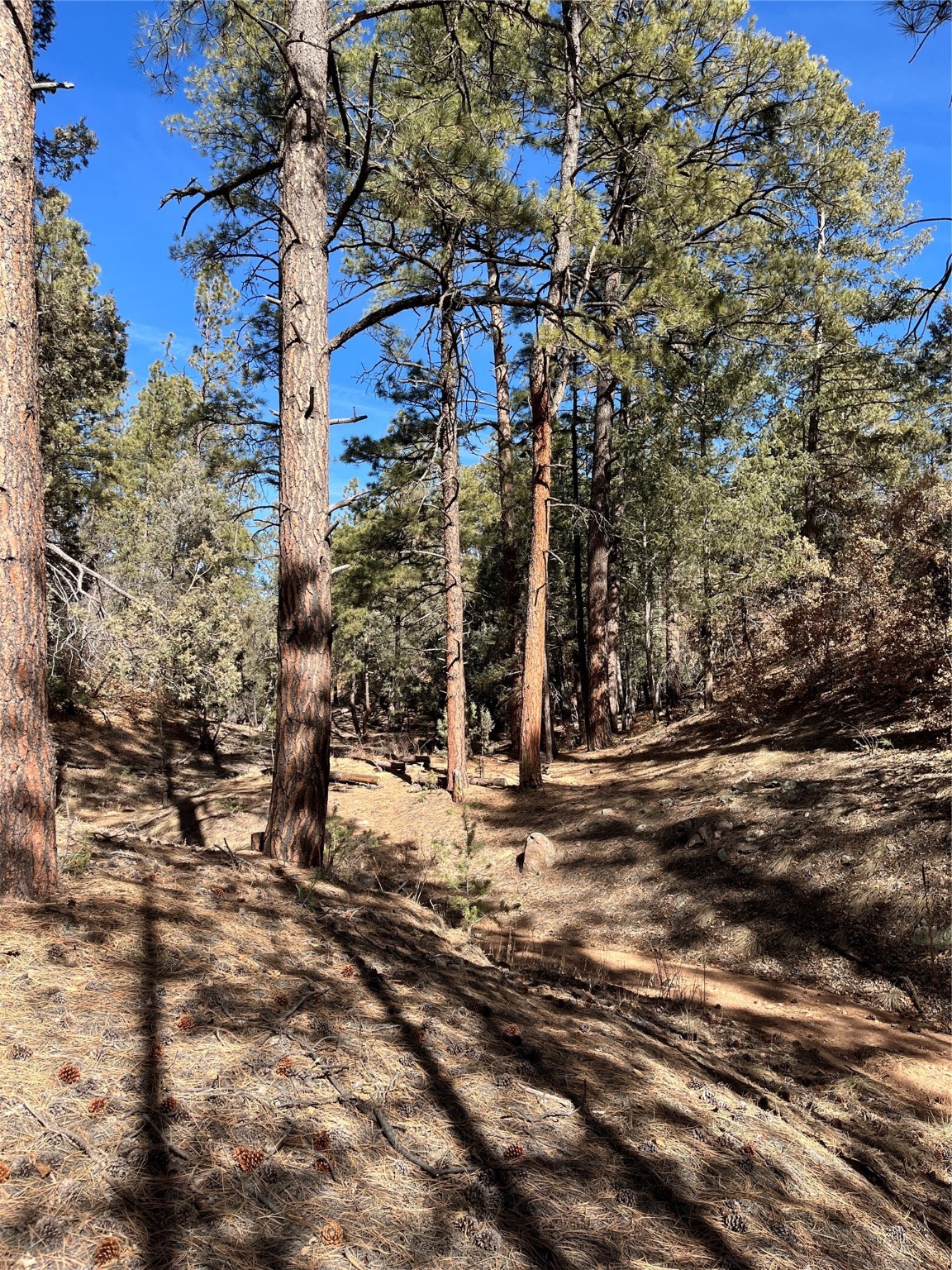 At the very end of the paved section off of Old Santa Fe Trail, this wonderful & wild 5 acre recreational retreat boasts giant towering ponderosa pine and old growth pinon trees reaching toward the Santa Fe blue sky. With great views, this property is perfect for those recreational adventurers wanting their own place. A natural haven, this land offers a perfect balance of shade, open space, hills and arroyos ideal for those seeking solitude or a place to reconnect with nature. Will require some dirt work for vehicle access.