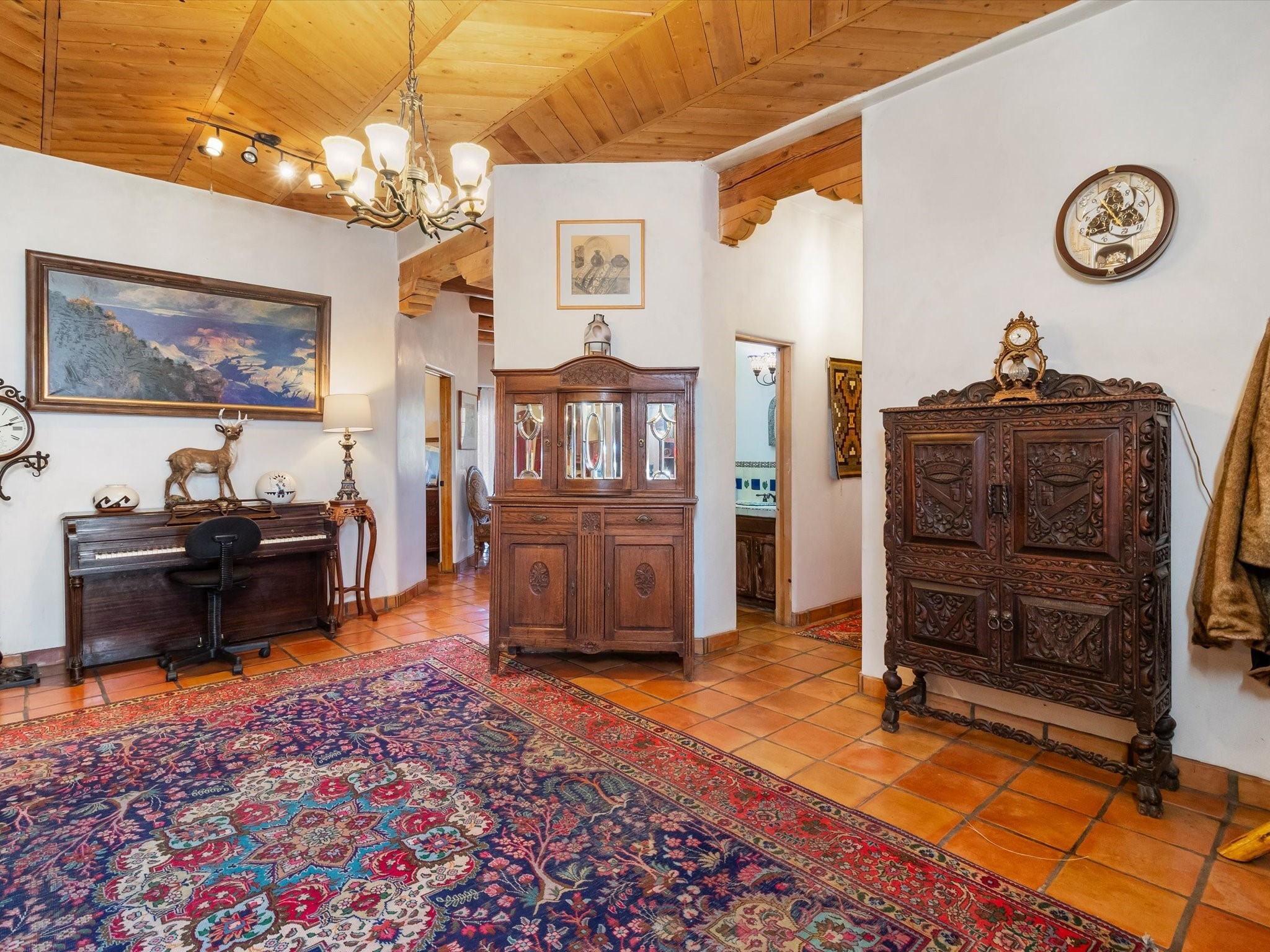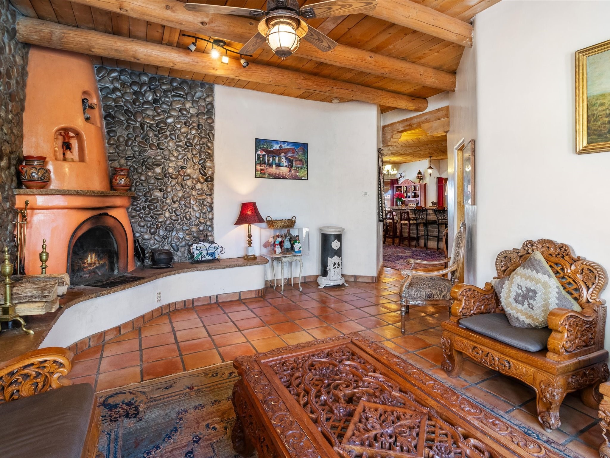 Spacious Santa Fe Retreat on 2.4 Acres with Stunning Mountain ViewsEscape to the serenity of this beautiful Santa Fe home, nestled on 2.4 acres of land with no close neighbors, offering privacy and breathtaking mountain views. This expansive 3,034 sq. ft. residence features six generously sized bedrooms and 3.5 bathrooms, perfect for comfortable living or entertaining guests.Step inside to discover the charm of traditional kiva fireplaces, tile floors, and a tile roof, blending Southwestern character with modern convenience. The well-designed floor plan provides ample space for relaxation and gatherings, while the outdoor gazebo invites you to soak in the peaceful surroundings.Located just a 10-minute drive from the historic Santa Fe Plaza, this home offers the perfect balance of seclusion and accessibility. Enjoy an easy commute to Los Alamos and Albuquerque, with quick access to Highway 566.Don't miss this rare opportunity to own a piece of Santa Fe's stunning landscape. Schedule your private tour today!