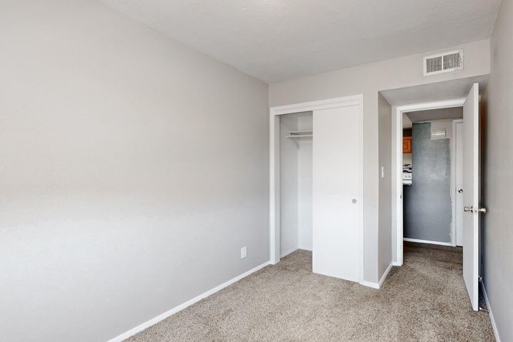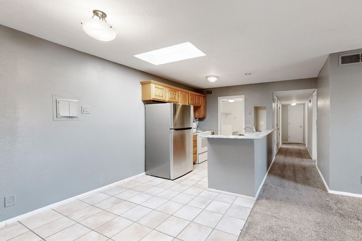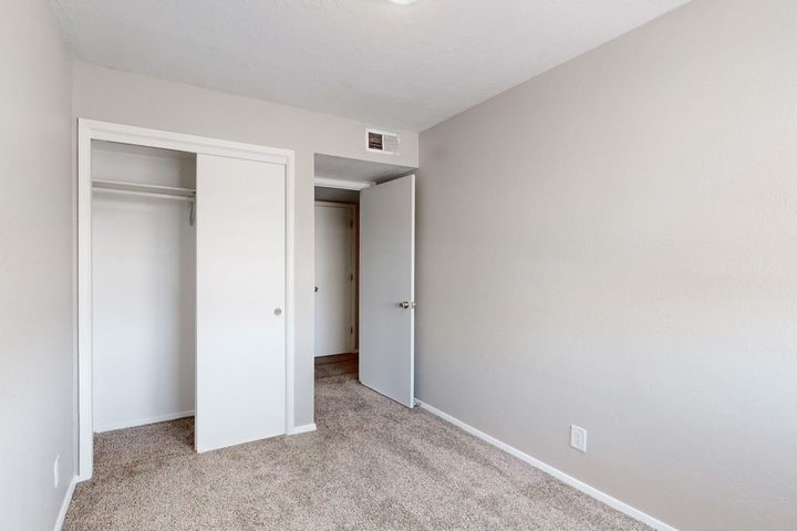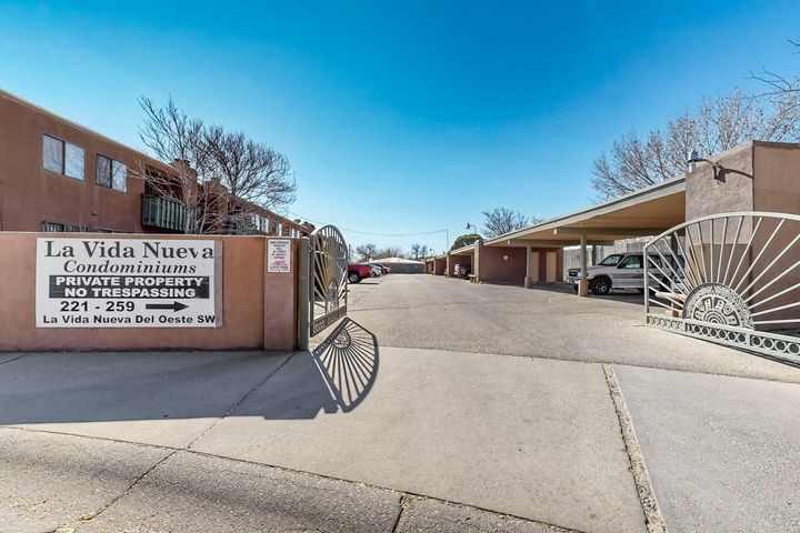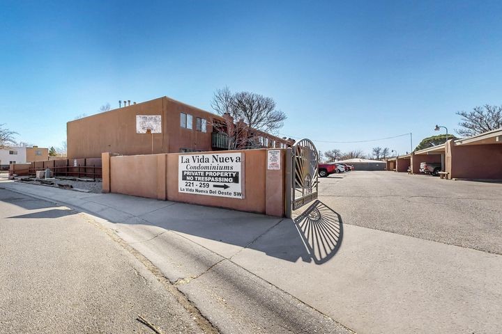 Great opportunity, nestled in the South Valley of Albuquerque. Located in a very secluded location near the historic Route 66. La Vida Nueva del Oeste is a convenient condo style living with privacy walls, gates, storage, and designated parking. It is in a very eccentric part of town, near multiple restaurants, Old Town, Downtown, access to the freeway and surround by major shopping centers. Lots of amenities and recreational parks surround the area. Move-in ready condo with 3 bedrooms, two bathrooms, a private balcony and a wood burning fireplace. You will not find a real property at this price featuring multiple bedrooms, bathrooms, and the location. Call us to take advantage of this opportunity! Owner to owner financing available.