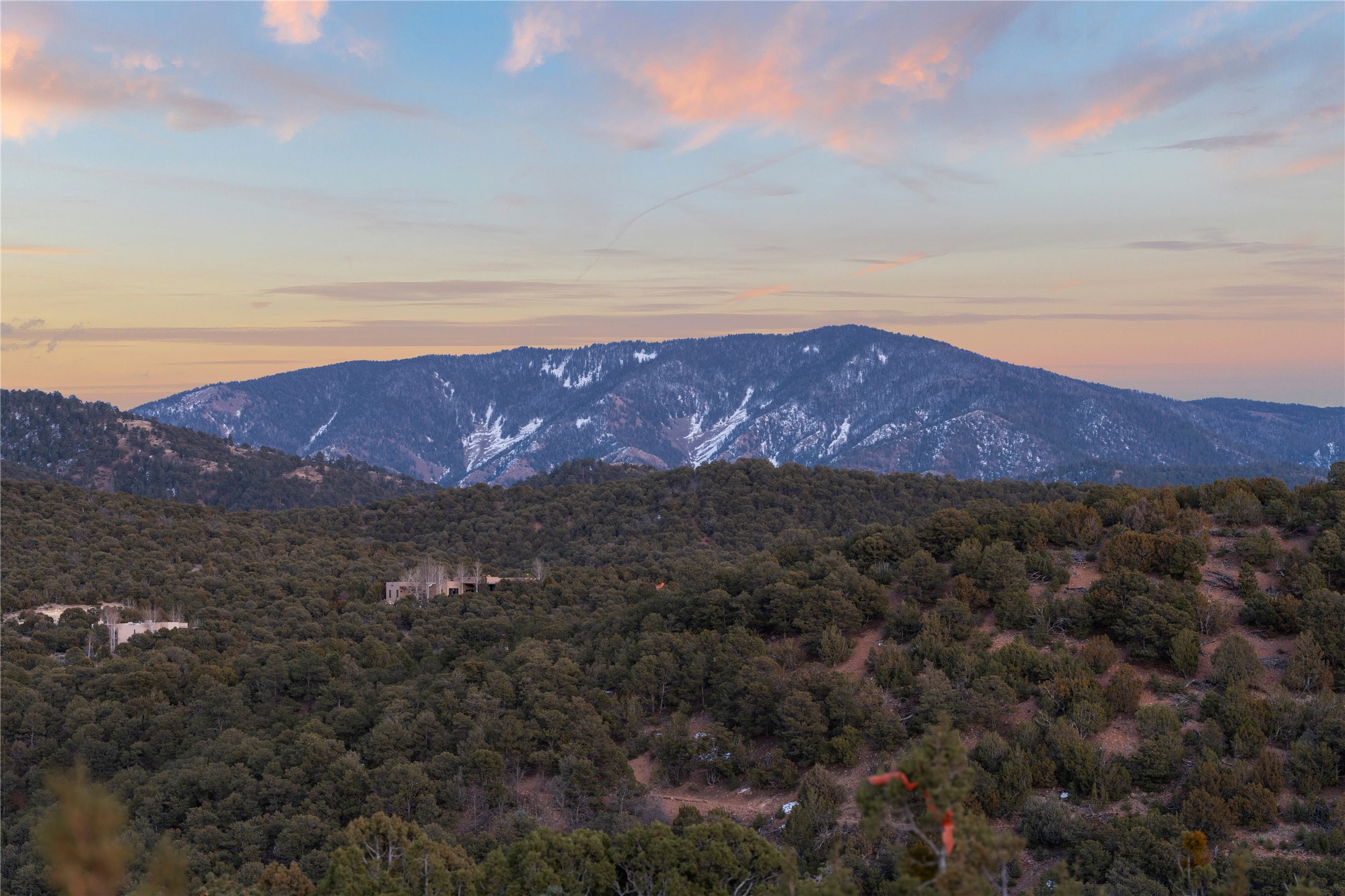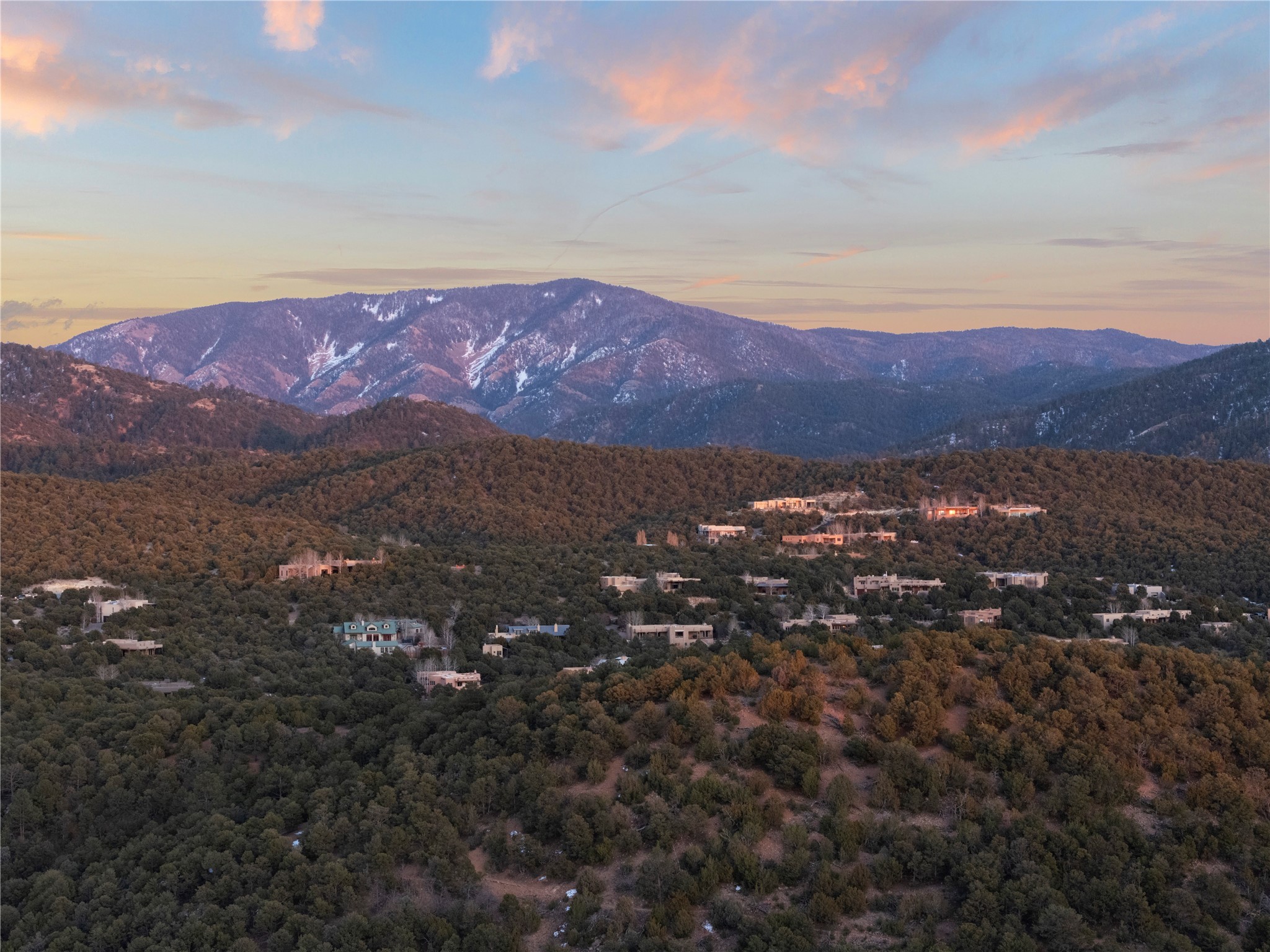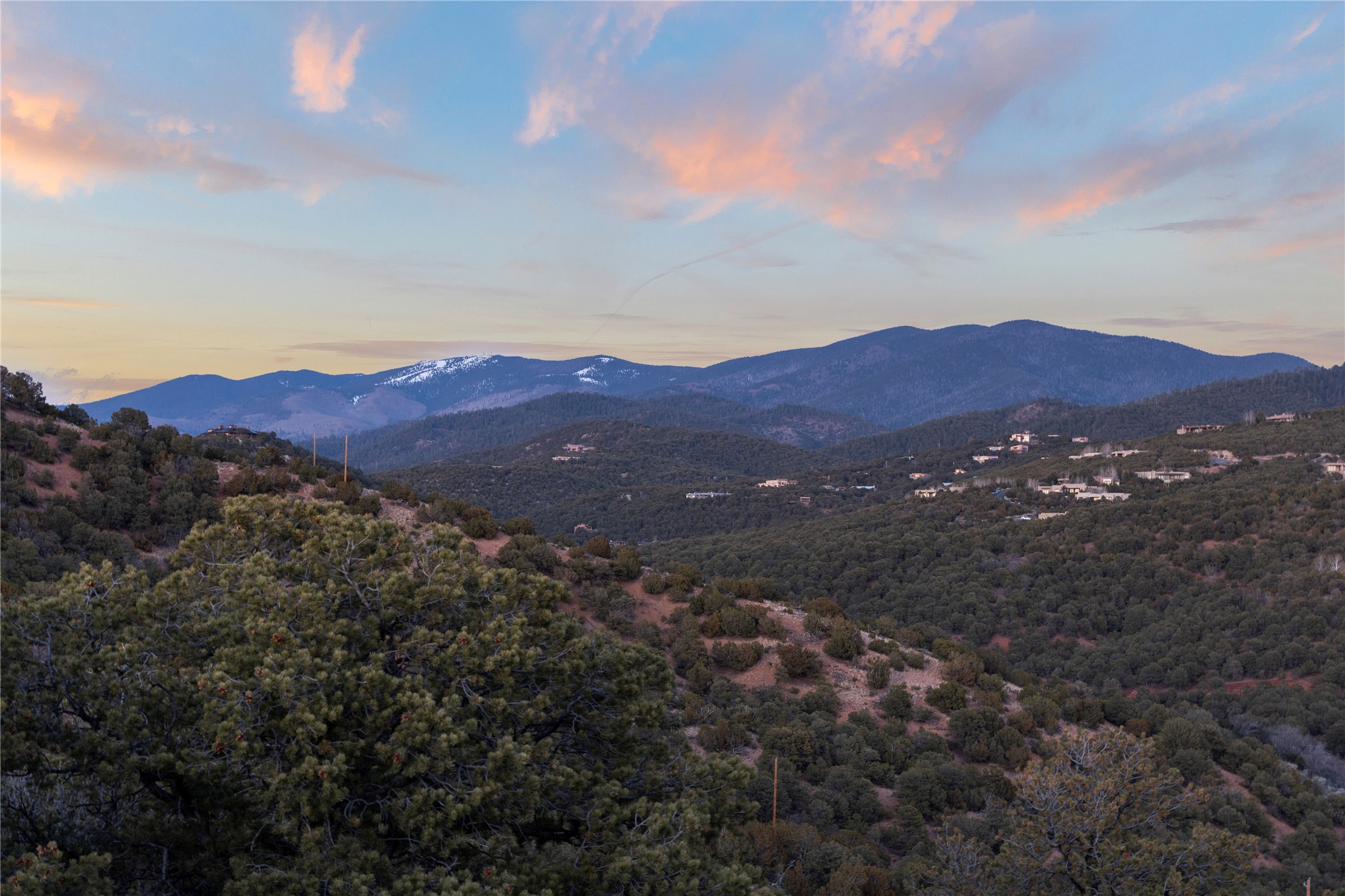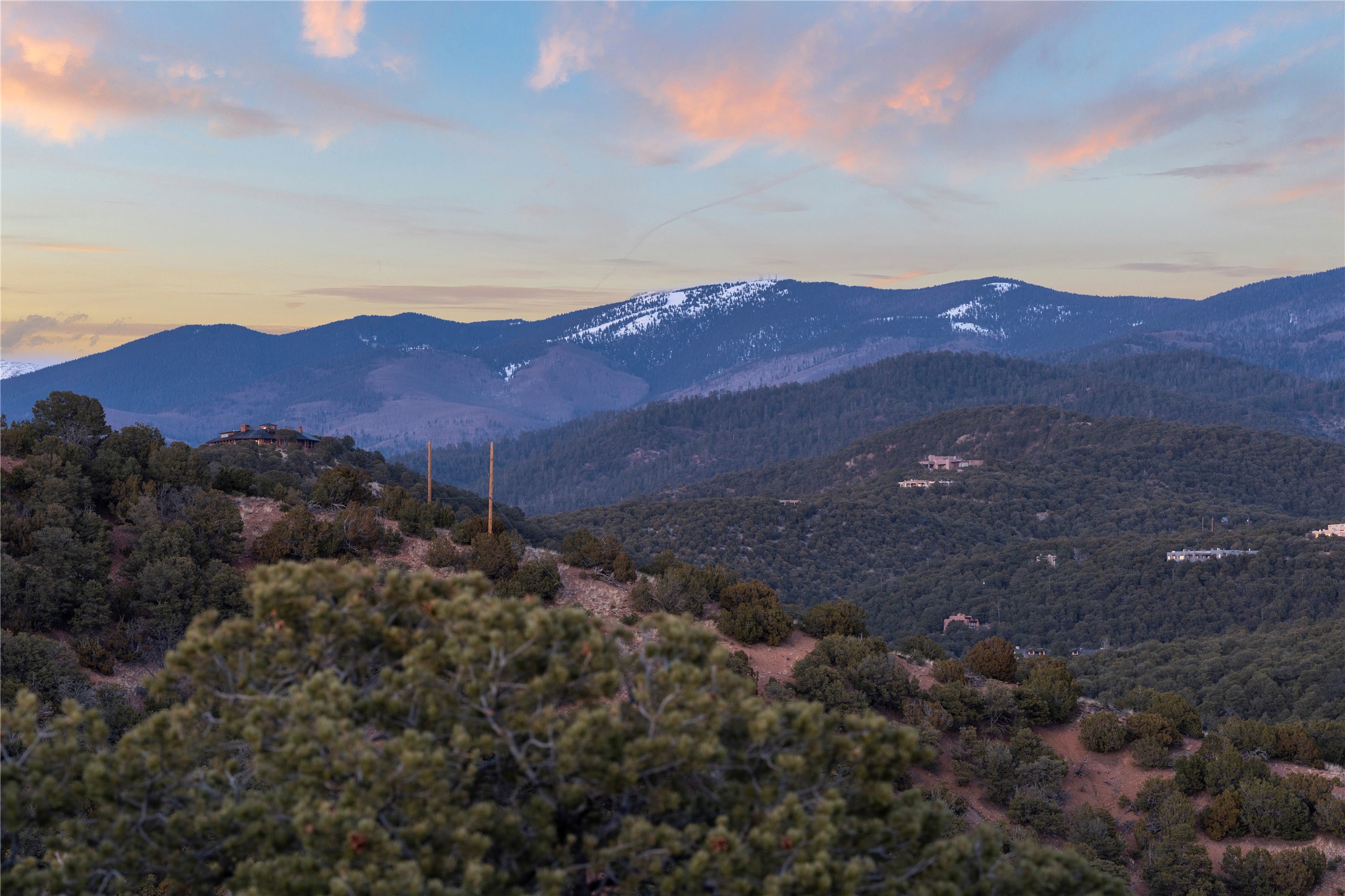 Sited high in the Sangre De Cristo foothills yet only a paved 8-minute drive to the Santa Fe Plaza this spectacular view homesite offers dramatic 360-degree views, including sunsets across the entire Jemez range, distant San Antonio Mountain, northeastern views of the Santa Fe Ski basin, eastern views of the "Snow Hearts" below Thompson Peak and on a clear day north to Colorado! In the evenings, enjoy hours of twinkling Santa Fe & Los Alamos City lights, an ocean of stars & astounding eastern moonrises! This quiet, private, corner homesite is one of the last remaining, easily buildable large acreage lots in the coveted Sierra Del Norte Subdivision (2.026 acres per a 5/18/2023 survey). Due to the lot configuration, there is a preferred building site located on a relatively level "saddle" which provides an elevated viewto the West/Northwest & East/Southeast. This ideal location provides a generous, easily developable building envelope with portions in both the "Foothills" & "Ridgeline" classifications. Per pre-design consultations with the City of Santa Fe, the building envelope holds "Grandfather" status due to the 1990 platting date, prior to the adoption of the 1992 ordinances governing construction in the "Escarpment, Ridgeline & Foothills" classifications, provided the design accommodates building height & additional escarpment requirements. There is Underground Electric, City Water & Sewer, Cable, High-Speed Internet & Natural Gas. The purchase of this amazing homesite includes a 5/18/2023 survey, a 9/5/2023 Tree & Topographic survey plus partially developed plans for a 3,860-Foot Custom Home, 600-foot Detached Guest House and an oversized 3 rd bay Workshop/RV Garage created by the award-winning Hoopes Architects of Santa Fe. Pick up where the seller left off to create your dream home in this highly coveted, close-in neighborhood surrounded by premium custom homes with sensible restrictive covenants.