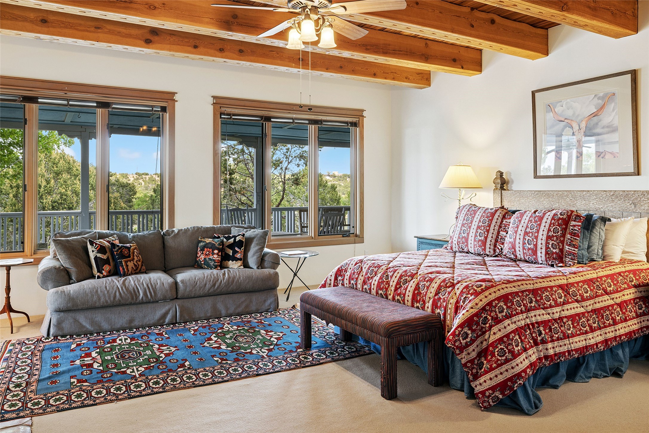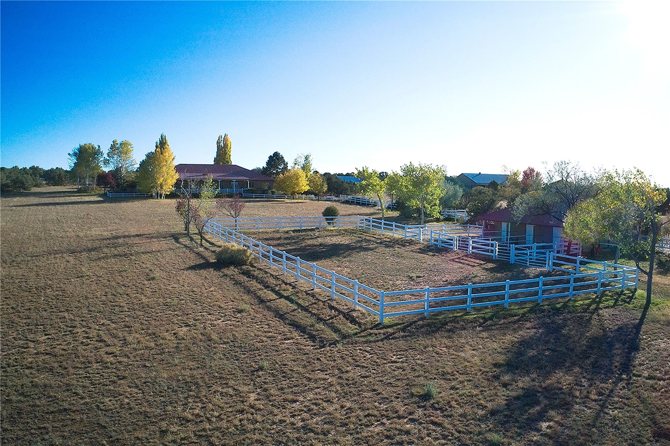 One of the most majestic estates in all of Santa Fe, this rare, exceptional compound impresses with TWO separate homes, (4) lots with 10+ acres total, (2) wells, a 3-stall barn and absolutely stunning Sangre Mountain views! This extraordinary estate excites and captivates with two impressive, separate homes, (6) garage spaces total, a stable with flexible use of space and some of the most magical and lush grounds found anywhere in Santa Fe, all within a 10-minute drive to the historic Santa Fe Plaza. The main house impresses with 4,919 square feet, inherent warmth and an expansive ranch-style porch which overlooks the fenced pastures and Sangre De Cristo Mountain views. The second home delights with 3,697 square and an open-concept design, ideal for large gatherings. This estate must be seen to fully appreciate the rarity of this land, the incredible homes and the opportunity to own one of the most iconic estates in all of Santa Fe.