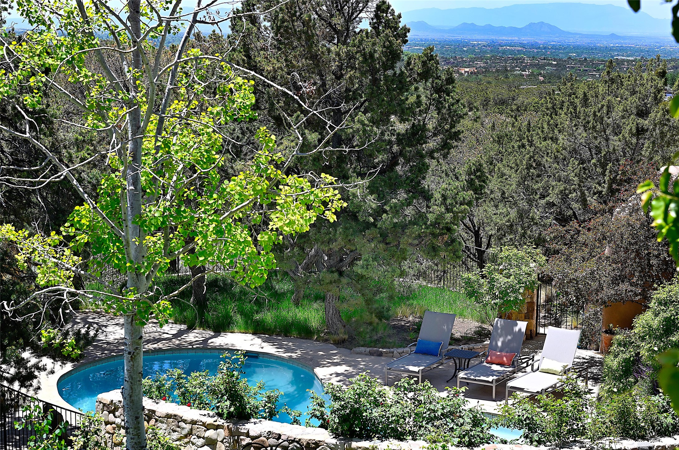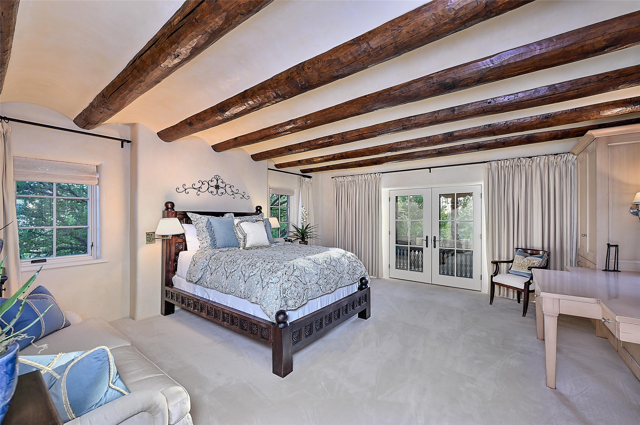 Experience the rare opportunity to own a meticulously restored piece of Santa Fe's history. Just minutes from the Plaza, Casa Alegre, originally built in 1931 by Governor John Dempsey, stands as a timeless adobe estate that seamlessly blends historic charm with modern sophistication. Set on 11 breathtaking acres, this exceptional property features a stately six-bedroom main residence, exquisitely renovated to preserve its architectural integrity while incorporating the finest contemporary comforts. Three private guest houses provide additional generous accommodations, making this an ideal retreat for family, friends and distinguished guests. The estate's resort-like grounds are a true sanctuary, featuring a heated outdoor pool, a private tennis court and stone-lined walking trails that wind through the lush landscape. The grounds include an abundance of trees, along with a bountiful organic garden and orchard. An aggregate of 20 fireplaces are experienced throughout the estate. Steeped in history, Casa Alegre has been home to a succession of distinguished owners following Governor Dempsey, including an heir to the Weyerhaeuser timber fortune and a member of the Martini & Rossi family. Following a period of limited enhancement, Robert and Miriam Knutson, founders of Education Management Corporation, embarked on a four and a half-year, $18 million restoration of the compound in 2004, enlisting master artisans, architects, and craftsmen to revive the estate to perfection. Their meticulous efforts ranged from restoring infrastructure, building intricate rock walls, to curating 64 distinct window styles that honor the home's original character. Lovingly maintained by its current owners, Casa Alegre has served as the backdrop or cherished family gatherings and elegant philanthropic events. A rare jewel in Santa Fe's real estate landscape, this extraordinary estate offers an unrivaled opportunity to own a piece of history, beautifully reimagined for modern luxury living.
