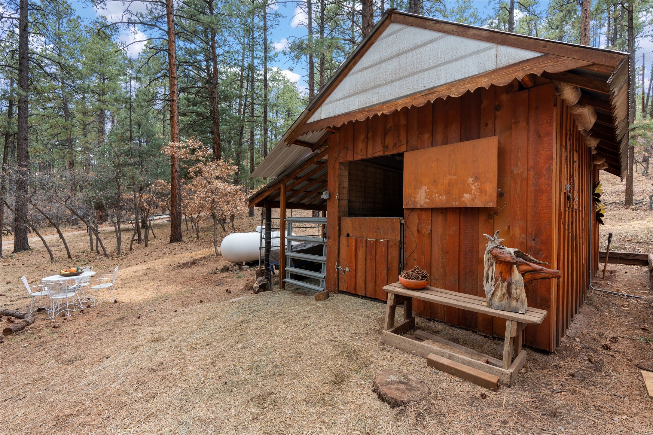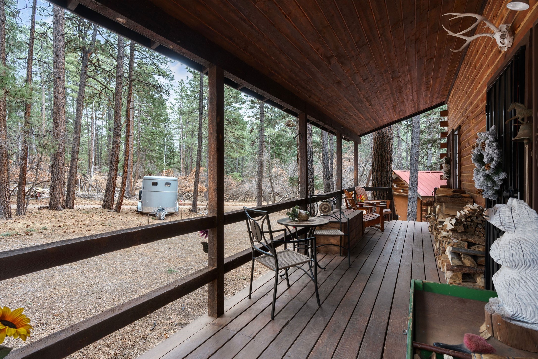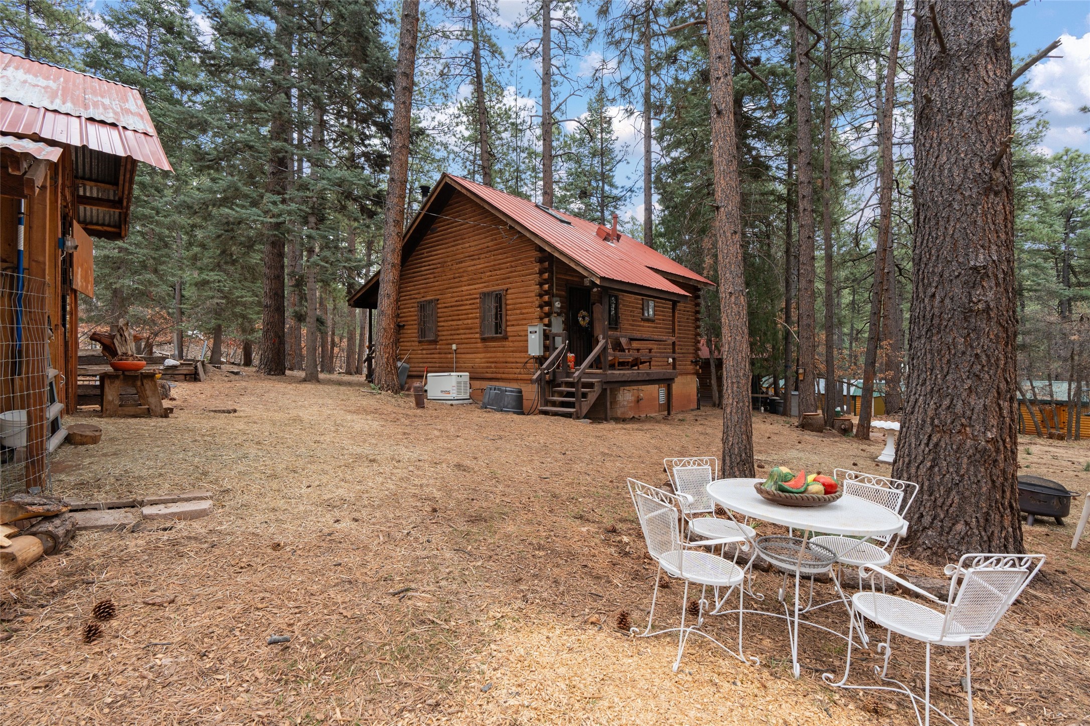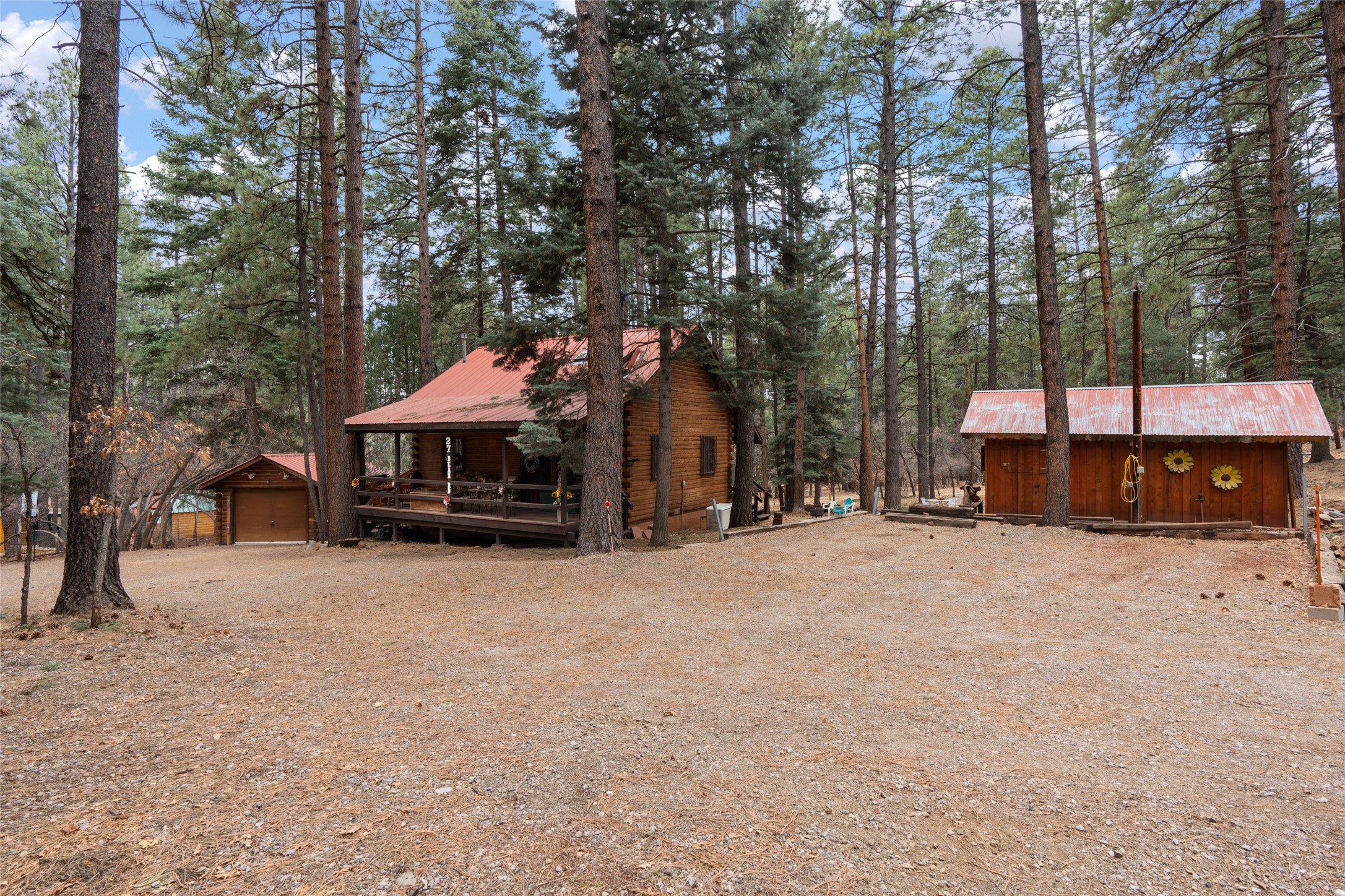 A Nature Lover's Dream - Mountain Cabin in Upper Brazos Lodge Estates. Nestled among a200 year-old stand of Ponderosa Pines, White Fir & Rocky Mt Juniper, this impeccable2/1 loft log cabinis a sanctuary for those seeking serenity and adventure. As you arrive, towering trees whisper their welcome, and the breathtakingBrazos Cliffsare your front yard backdrop. Step inside, and you're at home.Soaring 20 foot ceilings,vigas, andskylightsbathe the space in natural light. The cozywood-burning fireplaceand built-in shelving enhance rustic charm. The open-concept design blends traditional craftsmanship with modern convenience, featuring new upgrades with aGenerac Standby Generator, electrical upgrades, converted electric stove, new electric water heater, andluxurious new wood plank flooring.Community waterensures year-round comfort and ease. Wildlife thrives in this untouched paradise,mule deer, turkeys, red foxes, and over16 species of birdscall this land home. In fall, listen to the bugling elk from the back porch. In spring, theBrazos River's gentle rushcan be heard as snowmelt awakens the land. For outdoor enthusiasts, adventure is steps away. A nearby hiking trail leads toHorse Trail Falls, a hidden gem best seen in snowmelt season. Equestrians will love the10x16x12 insulated horse stallwith a covered storage area. Enjoy direct access to scenic riding trails. Additional features include a12x25 garage,fenced exercise area for dogs, andcoveredfirewood storage. Cabin is complete with two expansive leadwood decks in front and back to soak inpanoramic viewsof the surrounding wilderness, breathe in the crisp mountain air, and revel in the tranquility of your retreat. This isn't just a home, it's a lifestyle. A rare opportunity tolive in harmony with naturewhile enjoying modern comforts.Your mountain sanctuary awaits.