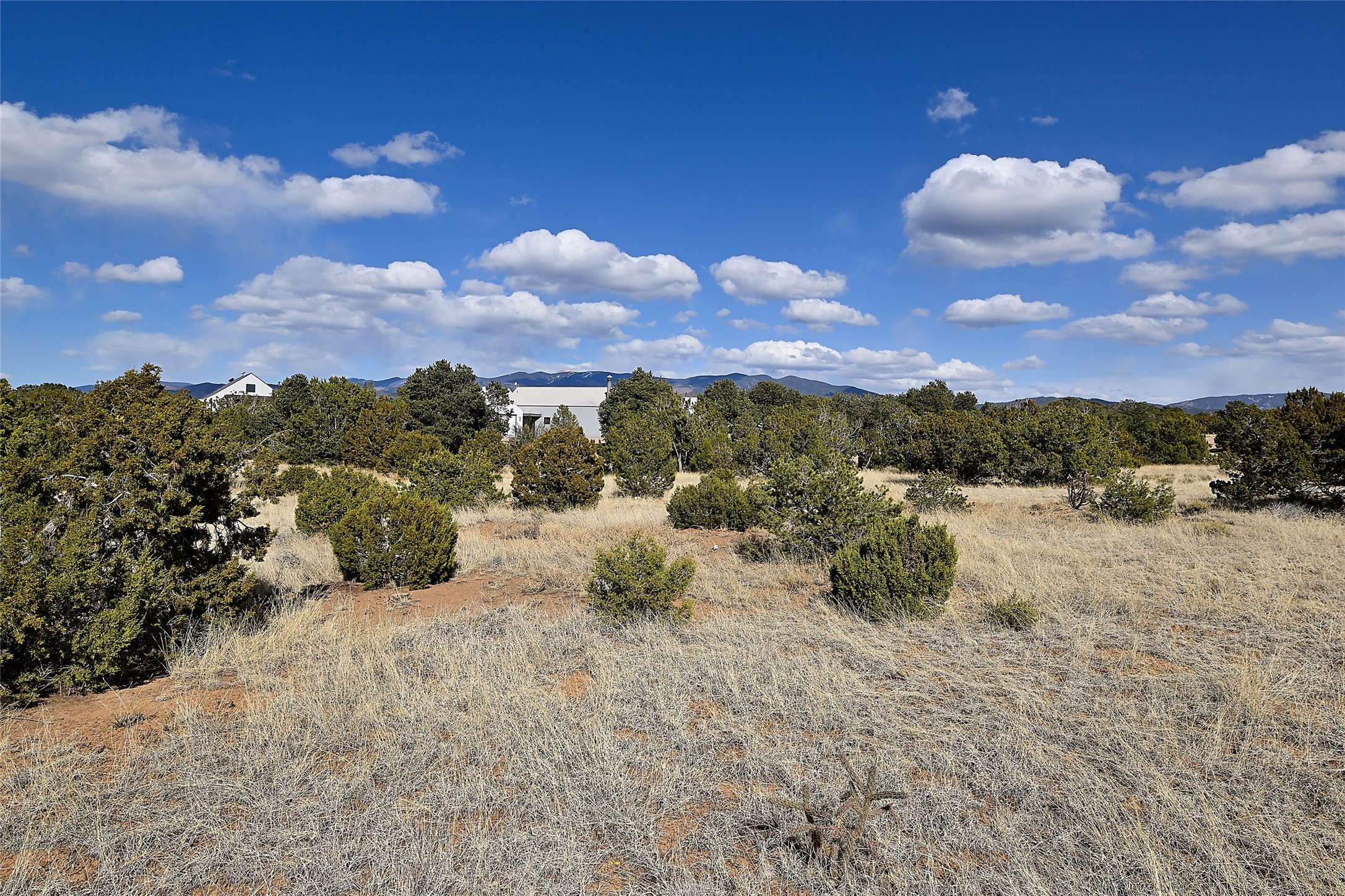 Along the desirable Tano Road to Camino De Los Monotyas, you'll find this 2.5 acre corner lot with panoramic views of the Sangre de Cristos to the east and the Jemez Mountains to the west. The property has great building sites, is flat and nicely fenced with split-rail fencin.