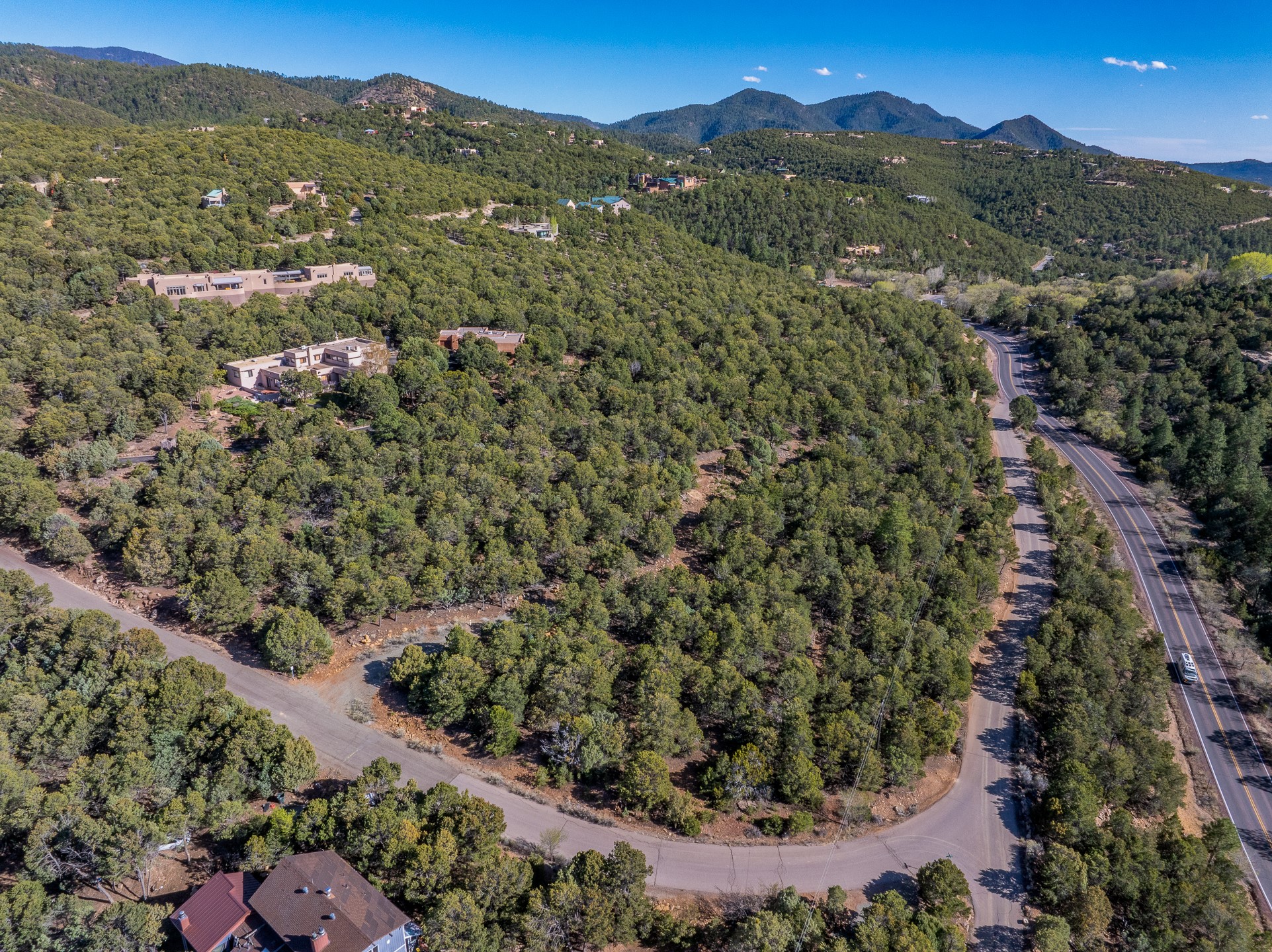 Build your Santa Fe Dream home in the exclusive Stone Ridge Subdivision. One of the last developments on the way up to the Ski Basin, this property offers 3 acres of beautifully treed privacy and huge views, while being only 8 minutes to the heart of the Santa Fe Plaza. There is already a well in place on the property, and a relatively flat, buildable area. From the viewing platform, one can see stunning views of the far-reaching Jemez Mountain range. Easily head up to the Ski Basin for a day of skiing, or pop over to Izanami at Ten Thousand Waves for a unique and delicious dining experience. This property offers the perfect blend of luxury amenities in a fully customizable build, with close proximity to nature, hiking trails, and skiing. This is your opportunity to own an incredible view property only moments from downtown. Don't miss the chance to live the ultimate Santa Fe experience!