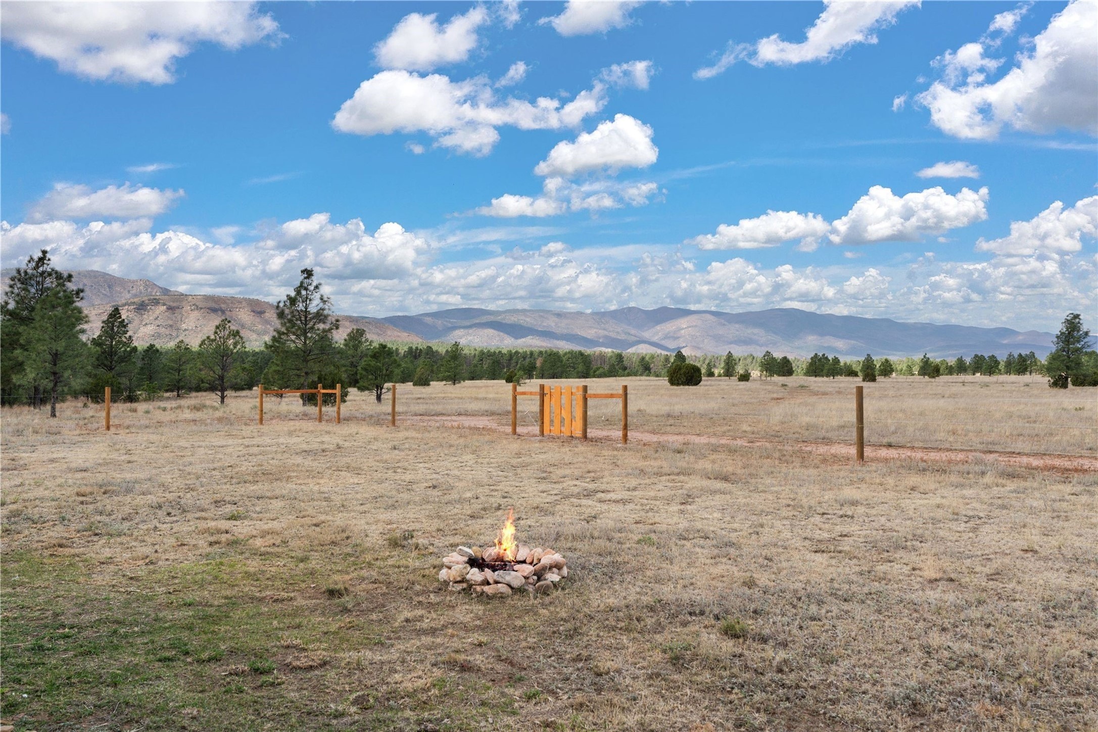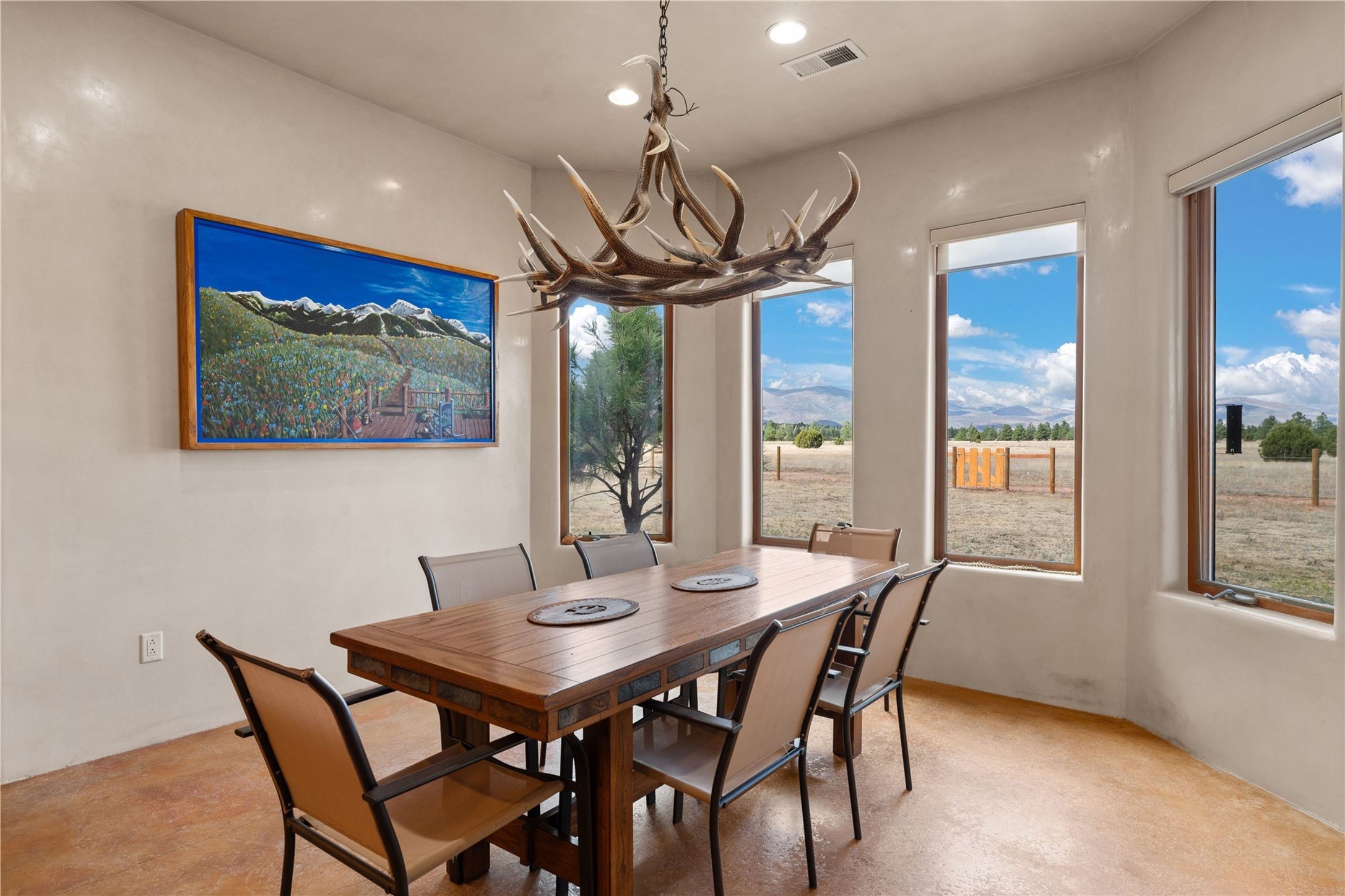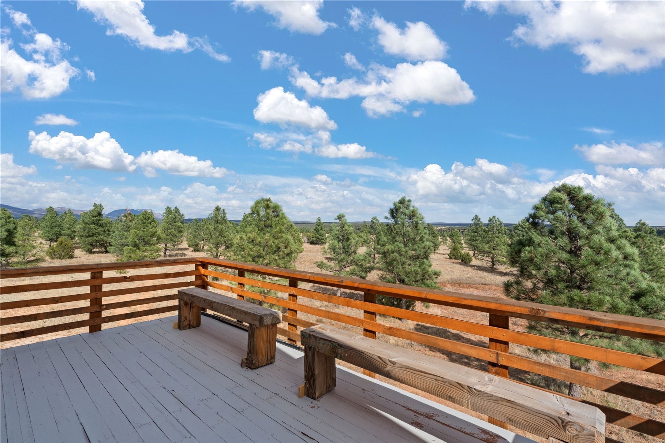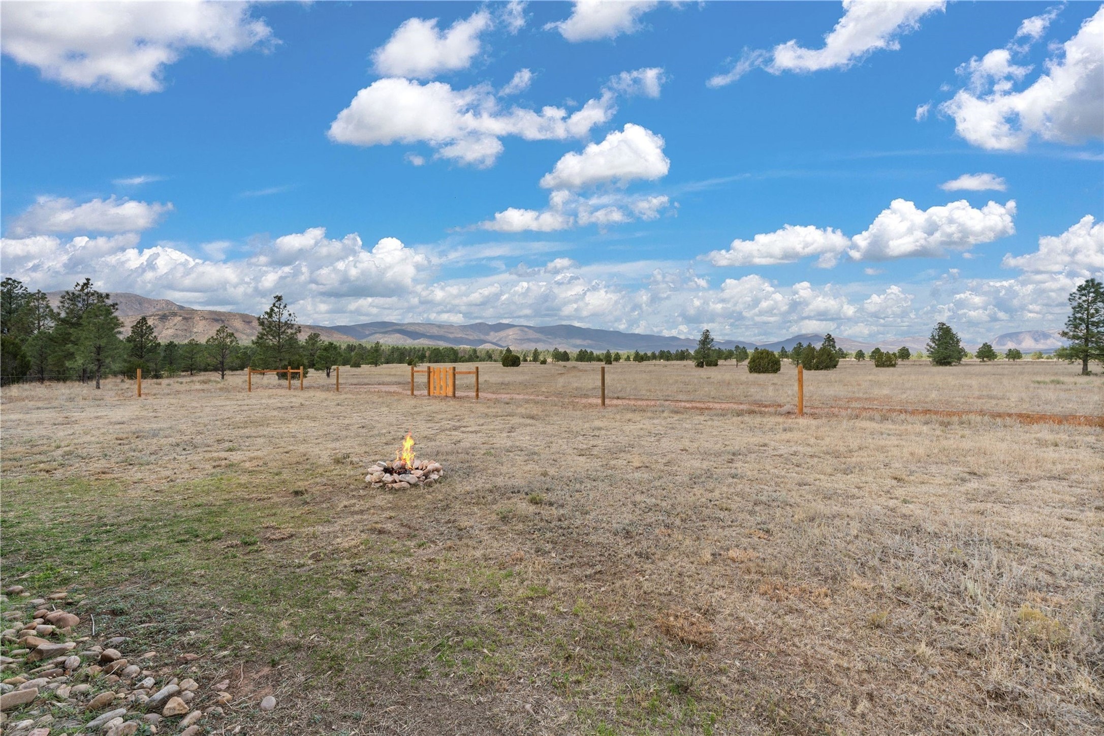 Tara Ranch is a magical spot of profound quiet and serenity on a mostly flat, fully fenced, 42 acres. From the ranch gate, you drive on a mile long beautiful private driveway to the house and barn. The main house is a very substantial, well-built 4,500 sq ft home with 12' ceilings, diamond finish plaster walls, arches, large beams throughout and oversized living spaces and rooms to give a very spacious, gracious feel. The state of the art 6 stall "Barn Pros Equestrian Facilities" barn, features a full 1,600 sq ft apartment above it for caretaker or guests. The absolutely gorgeous views of Hermit's Peak and the adjacent mountaintops offer complete privacy, as the property is surrounded on three sides by a 2,500-acre private ranch. For horse lovers, the 42 acres of great fescue grass are superb for riding, or training, on mostly flat land peppered by trees. The 45X60 ft horse pen is a great addition. The area of Hermit Peak and Johnson Mesa has a huge network of horse and offload trails, all extremely accessible by very well-maintained roads. Located just past the little pueblo of San Geronimo, Tara Ranch is an easy hour from Santa Fe and about half an hour from Las Vegas, NM. Built in 2008, this home is designed on one level with radiant floor heat enjoying nice open main living areas with living, dining and kitchen spaces all relishing the magnificent views. There is easy access to the covered portal for outdoor dining, grilling and enjoying the spectacular vistas. The backyard is fully fenced with decorative pole fencing. A heated 3+ car garage, with direct access to the inside of the home, is a wonderful bonus. The chef's kitchen; with two ovens, large gas cook top with griddle, two sinks, wild stone granite counters, stainless appliances, huge pantry and plenty of cabinets, is a joy to cook in! The home has a great layout with the master bedroom, media/office and one guest bedroom on the west wing and the other two bedrooms, sharing a Jack and Jill full bath on the east wing. The master bedroom has access to a private covered portal with a 220 hook up should one like a hot tub, and the en- suite his and hers bath has a fabulous Jacuzzi tub in which to soak and look at the mountains, as well as large walk-in closet, two sinks and large shower with genuine coral stone tile. The near bedroom also has a full en suite bath. The barn has its own septic system, 6 stalls with rubber flooring, Tack room/workshop, hay storage, washing space for horses and a 45 X 60 fenced corral. It also has covered parking for an RV which could easily be converted into an additional coral to house horses or livestock in the three stalls that are currently not being used for animals. On the second story above the barn is a spacious 2-bedroom, 1-bath apartment, with a cozy wood burning stove, kitchenette and ample living space. The hand-crafted furniture southwest style currently in the home is also available for purchase, and should one want the two friendly and adorable donkeys, they could stay at no cost. The donkeys have been a fantastic way to keep coyotes off the property! The boiler was replaced in 2024 and the hot water heater in 2022. The private well provides plenty of water and the home also has a water softener. Tara Ranch is truly a special place on every level and a wonderful retreat from the hustle and bustle of town!