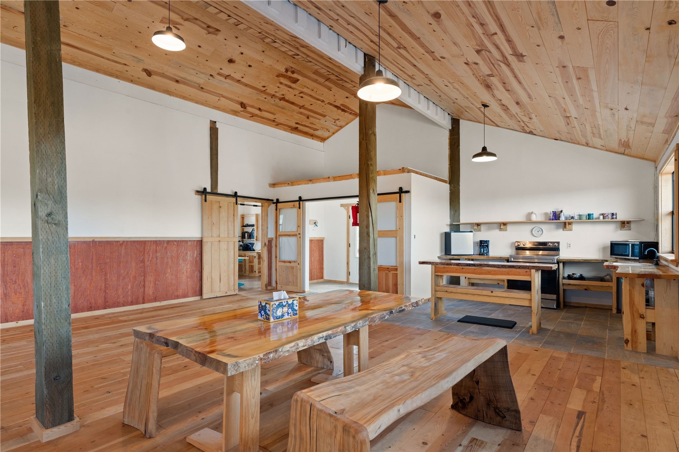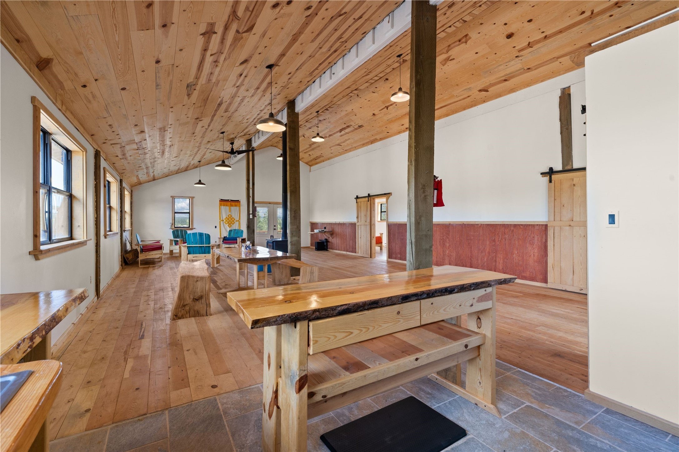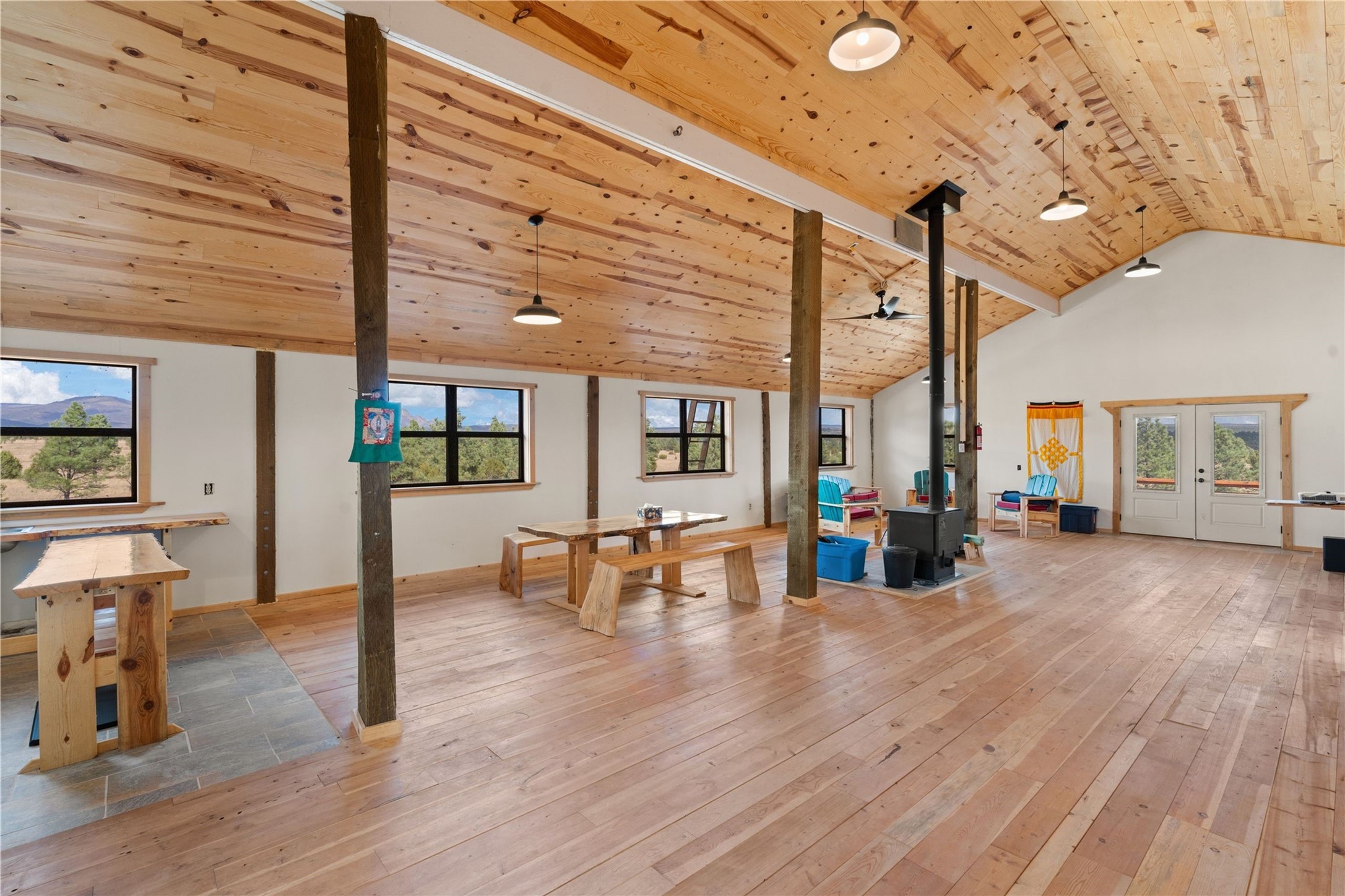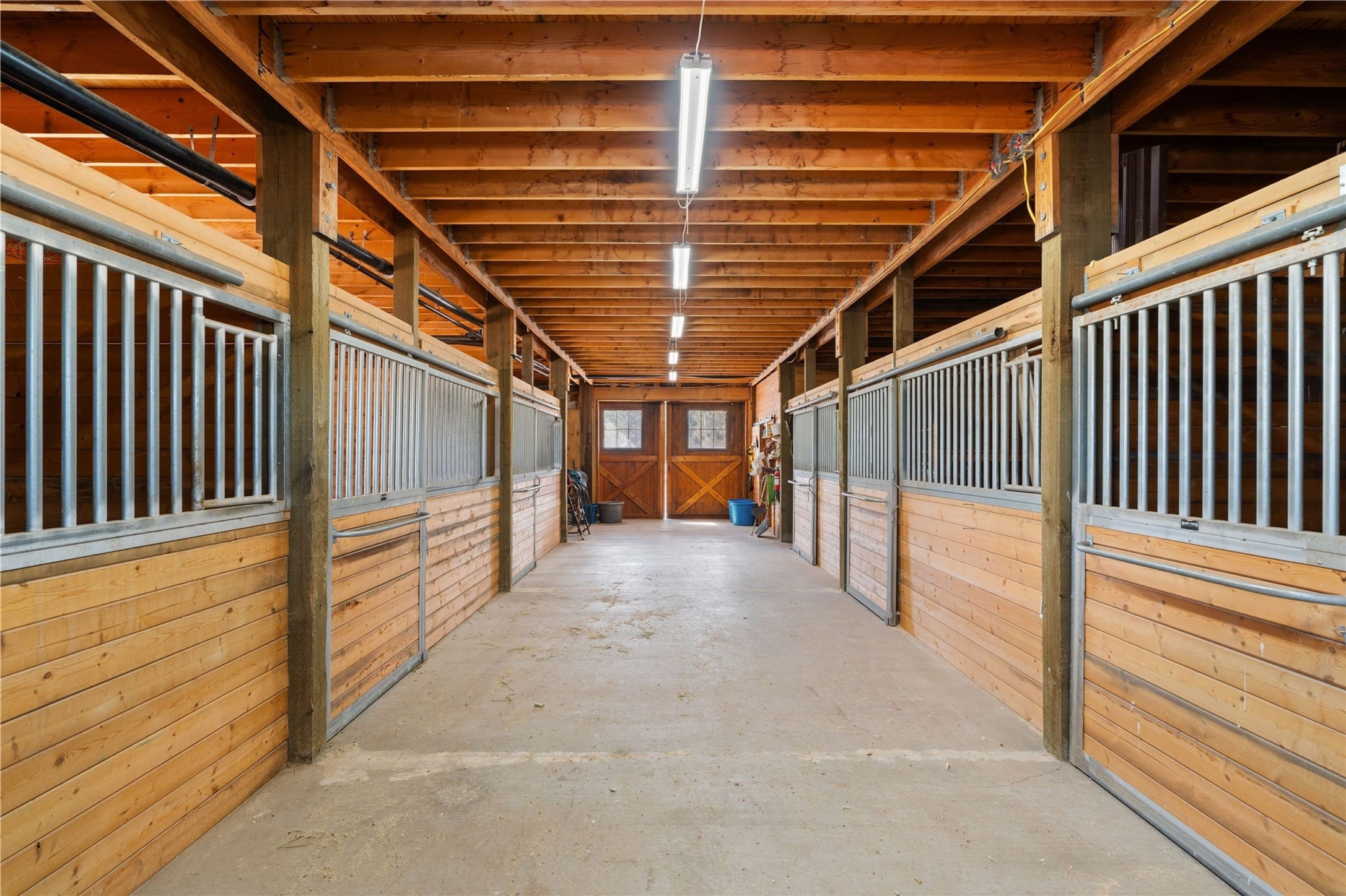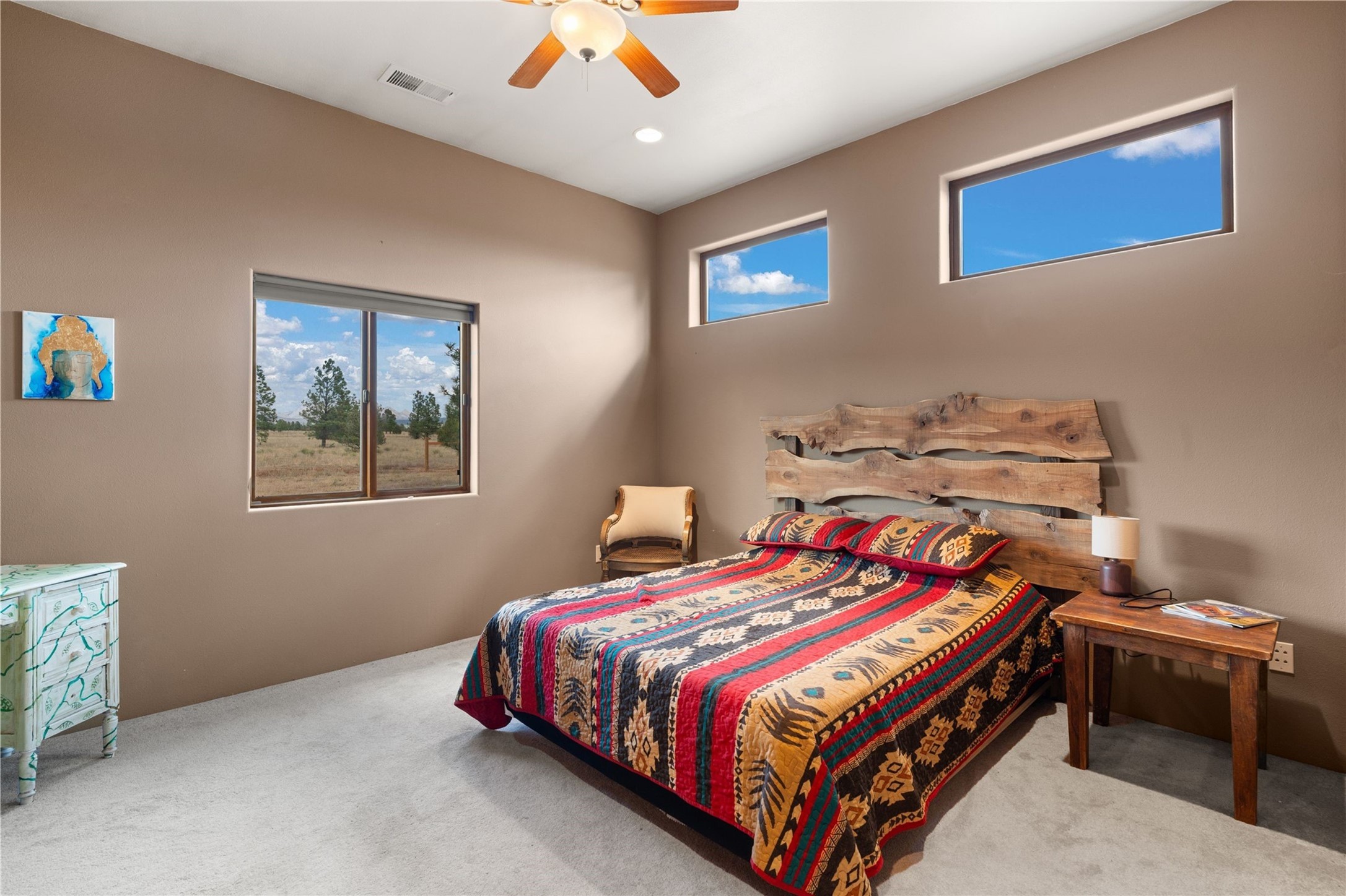 Tara Ranch is a magical spot of profound quiet and serenity on a mostly flat, fully fenced, 42 acres. From the ranch gate, you drive on a mile long beautiful private driveway to the house and barn. The main house is a very substantial, well-built 4,500 sq ft home with 12' ceilings, diamond finish plaster walls, arches, large beams throughout and oversized living spaces and rooms to give a very spacious, gracious feel. The state of the art 6 stall "Barn Pros Equestrian Facilities" barn, features a full 1,600 sq ft apartment above it for caretaker or guests. The absolutely gorgeous views of Hermit's Peak and the adjacent mountaintops offer complete privacy, as the property is surrounded on three sides by a 2,500-acre private ranch. For horse lovers, the 42 acres of great fescue grass are superb for riding, or training, on mostly flat land peppered by trees. The 45X60 ft horse pen is a great addition. The area of Hermit Peak and Johnson Mesa has a huge network of horse and offload trails, all extremely accessible by very well-maintained roads. Located just past the little pueblo of San Geronimo, Tara Ranch is an easy hour from Santa Fe and about half an hour from Las Vegas, NM. Built in 2008, this home is designed on one level with radiant floor heat enjoying nice open main living areas with living, dining and kitchen spaces all relishing the magnificent views. There is easy access to the covered portal for outdoor dining, grilling and enjoying the spectacular vistas. The backyard is fully fenced with decorative pole fencing. A heated 3+ car garage, with direct access to the inside of the home, is a wonderful bonus. The chef's kitchen; with two ovens, large gas cook top with griddle, two sinks, wild stone granite counters, stainless appliances, huge pantry and plenty of cabinets, is a joy to cook in! The home has a great layout with the master bedroom, media/office and one guest bedroom on the west wing and the other two bedrooms, sharing a Jack and Jill full bath on the east wing. The master bedroom has access to a private covered portal with a 220 hook up should one like a hot tub, and the en- suite his and hers bath has a fabulous Jacuzzi tub in which to soak and look at the mountains, as well as large walk-in closet, two sinks and large shower with genuine coral stone tile. The near bedroom also has a full en suite bath. The barn has its own septic system, 6 stalls with rubber flooring, Tack room/workshop, hay storage, washing space for horses and a 45 X 60 fenced corral. It also has covered parking for an RV which could easily be converted into an additional coral to house horses or livestock in the three stalls that are currently not being used for animals. On the second story above the barn is a spacious 2-bedroom, 1-bath apartment, with a cozy wood burning stove, kitchenette and ample living space. The hand-crafted furniture southwest style currently in the home is also available for purchase, and should one want the two friendly and adorable donkeys, they could stay at no cost. The donkeys have been a fantastic way to keep coyotes off the property! The boiler was replaced in 2024 and the hot water heater in 2022. The private well provides plenty of water and the home also has a water softener. Tara Ranch is truly a special place on every level and a wonderful retreat from the hustle and bustle of town!