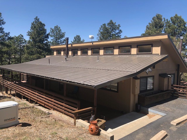 Spectacular country mountain retreat in Pendaries Village. The home is two stories with decks on three sides. Upstairs is ground level in the front, and includes 2 bedrooms and one full bath. Downstairs opens at ground level in the back of the house and has 3 bedrooms and 2.5 baths. Back deck has a hot tub which looks through tall Ponderosa. Original 2-car garage is detached from house but from the downstairs through covered porch. It has a concrete floor, 2 murphy beds, and half bath. A newer 2-car garage is a little downhill from the house, and has two large garage doors, and a small one which would accommodate UTVs and motorcycles. All this on 5.179 forested acres. There is a 4.62 kilowatt solar system and a 22 kilowatt Generac generator, which backs up the whole house and has an automatic transfer switch. Live in it full time and use it for a family retreat.