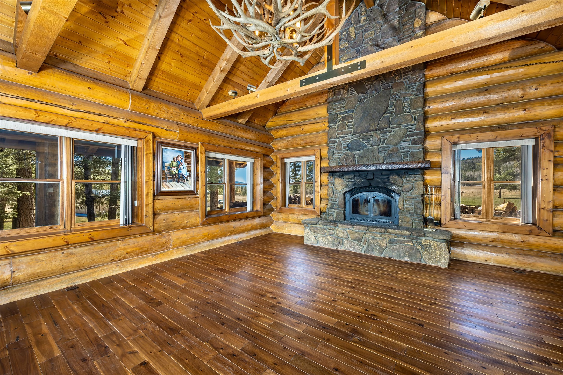 A rare opportunity to own a legacy estate steps from Carson National Forest, this exceptional property spans up to 80 acres of private alpine woods and open meadows-a true retreat in Northern New Mexico. The handcrafted log home is ideally positioned to capture sweeping views, total serenity, and the adventurous spirit of the region.Inside, rustic elegance shines with soaring tongue-and-groove ceilings, a striking rock fireplace, and open living spaces designed for comfort. The country-style kitchen features custom cabinetry, rich countertops, and ample storage. Outside, covered porches and wraparound decks offer year-round enjoyment of the mountain setting. Wildlife is part of daily life-watch elk and deer from your porch. Whether riding side-by-sides in summer, snowmobiling in winter, or enjoying the seasons, this property invites full immersion in nature. The lower level includes a large family room for guests or recreation. Amenities: game-processing room, 50x100 barn with horse stalls, pond, RV hook-up, oversized 1-car garage, and an owned vendor-flexible propane tank. The 80 acres have qualified for NM Game & Fish elk tags (Secondary Management Zone) for the past eight years. Forest Rd 76 lies in GMU 48, on the boundary of GMUs 48 and 49. Located on a quiet Forest Service road, the estate is a gateway to Carson National Forest-perfect for hiking, horseback riding, and exploring. Despite the seclusion, it's only 7 minutes to Angel Fire Resort and 10 minutes to the jet-capable Angel Fire Airport. Flexible acreage options available. More than a home-it's a generational sanctuary and smart investment in Northern New Mexico living.