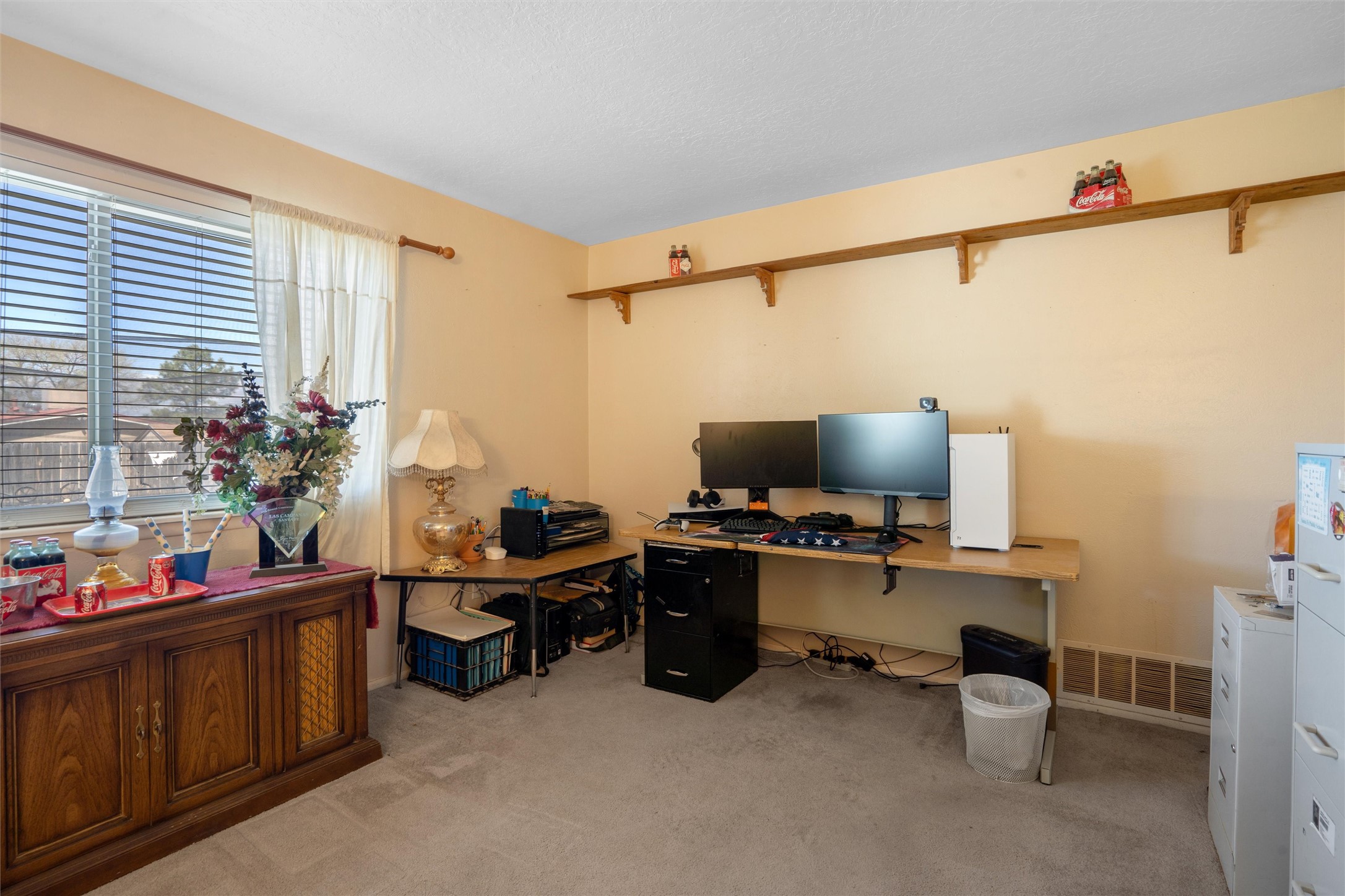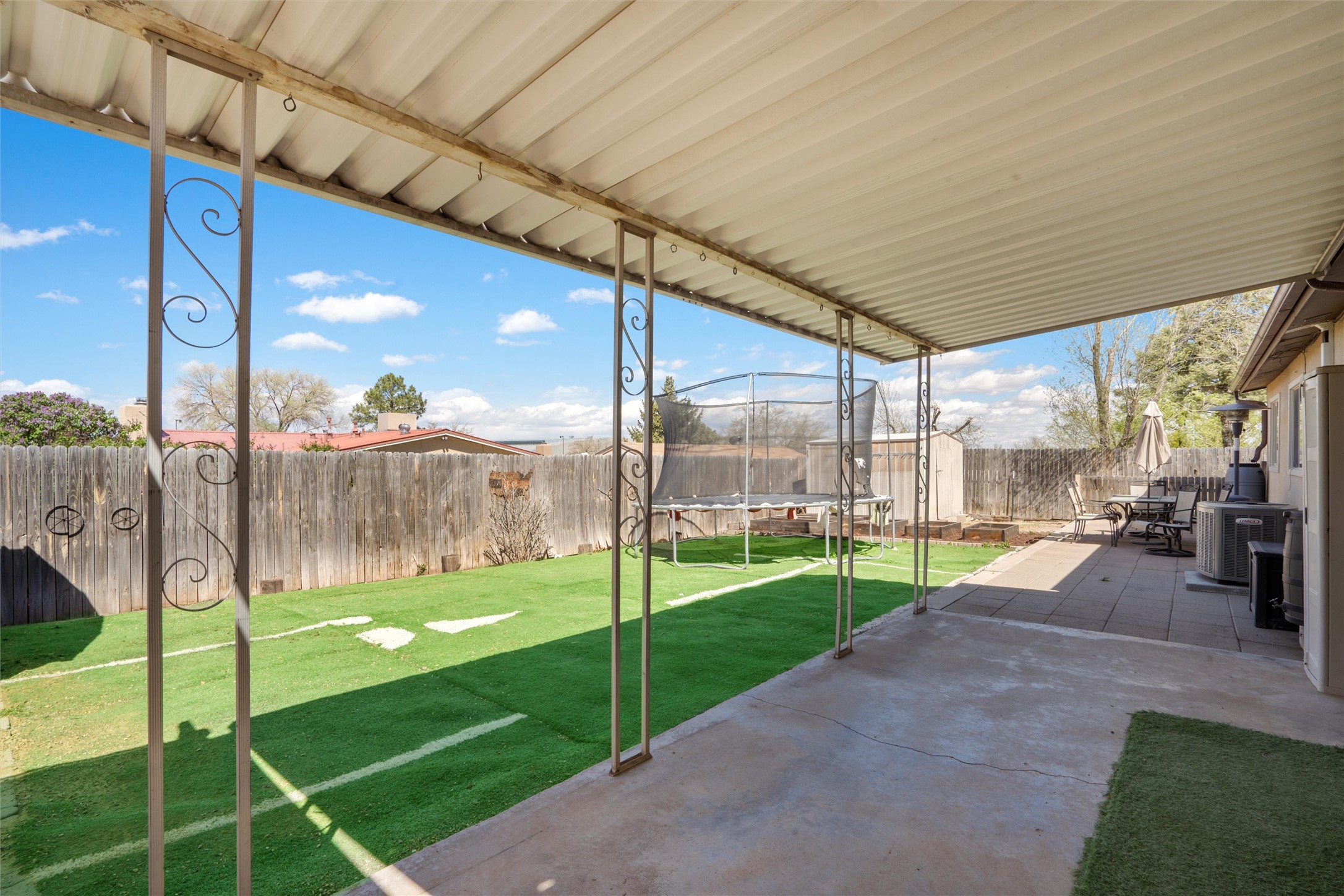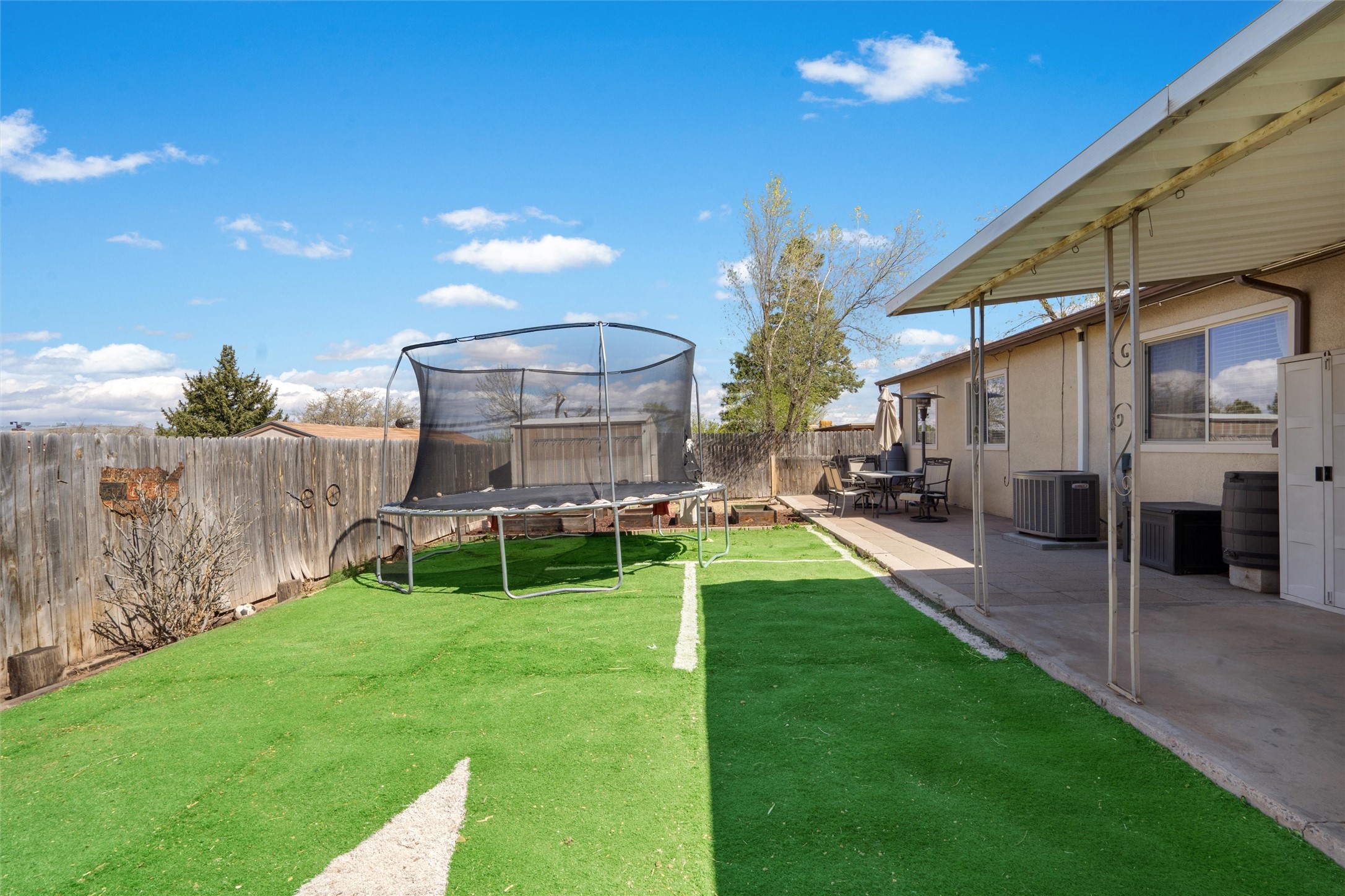 Now is the perfect time to fall in love with this delightful 4-bedroom, 2-bath home featuring separate living spaces. The kitchen comes complete with modern, updated appliances and a cozy dining area designed for comfort. This property also boasts a newly installed asphalt shingle roof, a spacious two-car garage, and plenty of outdoor parking for your convenience.With its easy-to-maintain xeriscaping and artificial turf, you'll enjoy a beautiful exterior without the hassle of regular upkeep. The expansive yard is perfect for outdoor activities, providing ample room for you to create personalized living spaces. Plus, there's fantastic potential for gardening, giving you the opportunity to nurture your very own garden oasis.The location is a significant advantage, situated conveniently near the Genoveva Chavez Community Center, shopping centers, schools, and parks. Does this sound like the dream home you've been searching for? Don't wait--call today to schedule your viewing. The sellers are excited to begin their next chapter, and you could start yours here very soon!Buyers should confirm square footage and/or dimensions if they are of material interest.Some photos have been digitally altered.