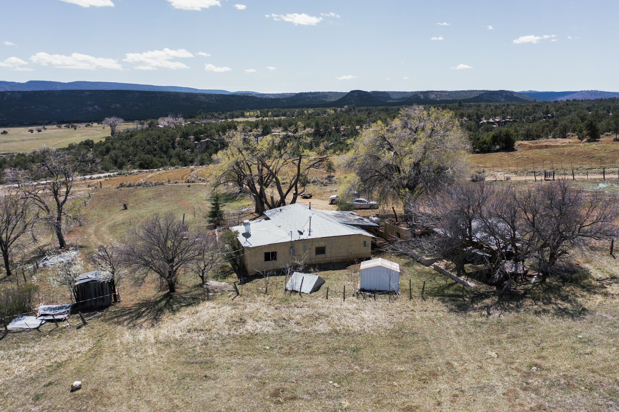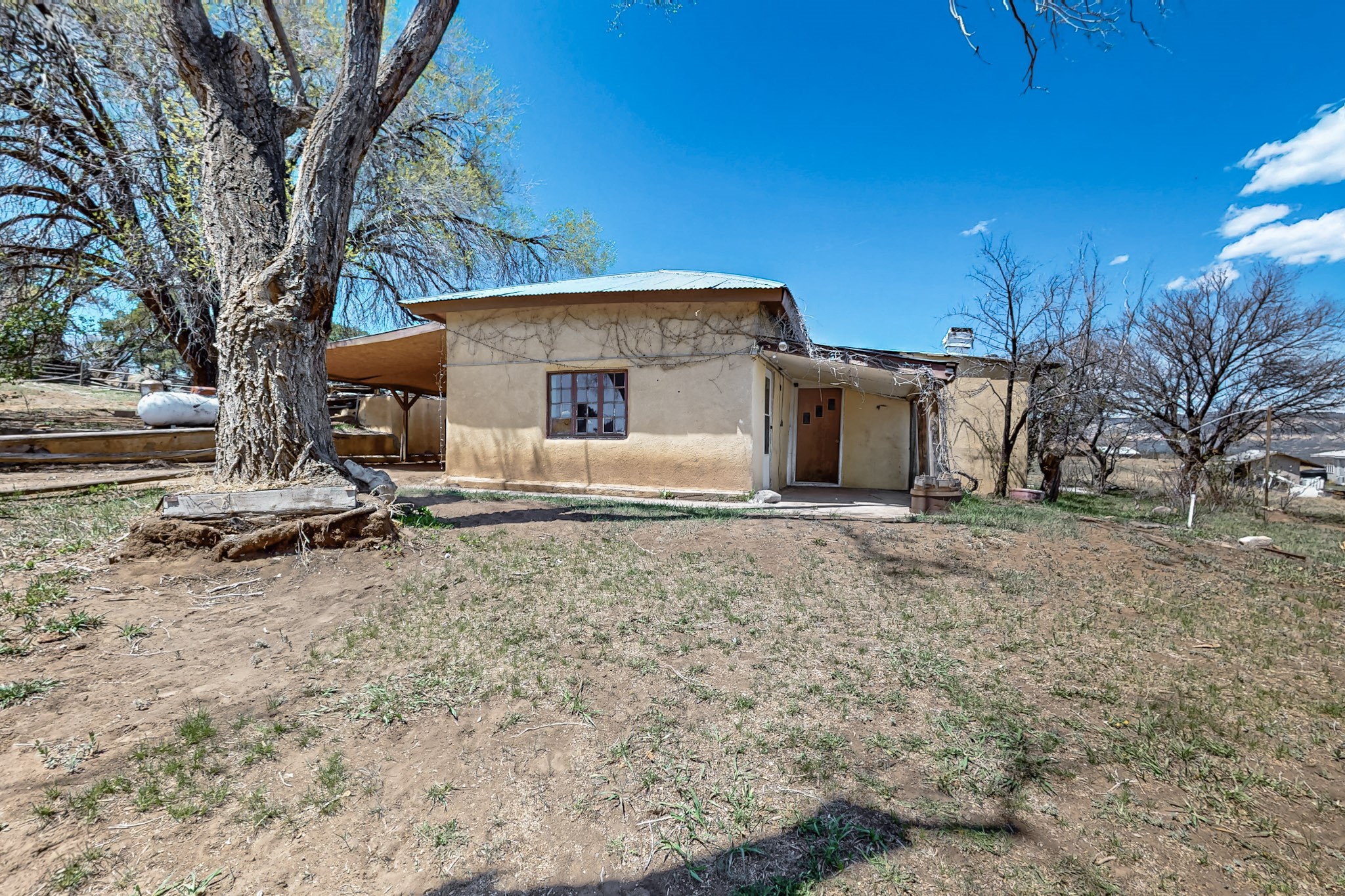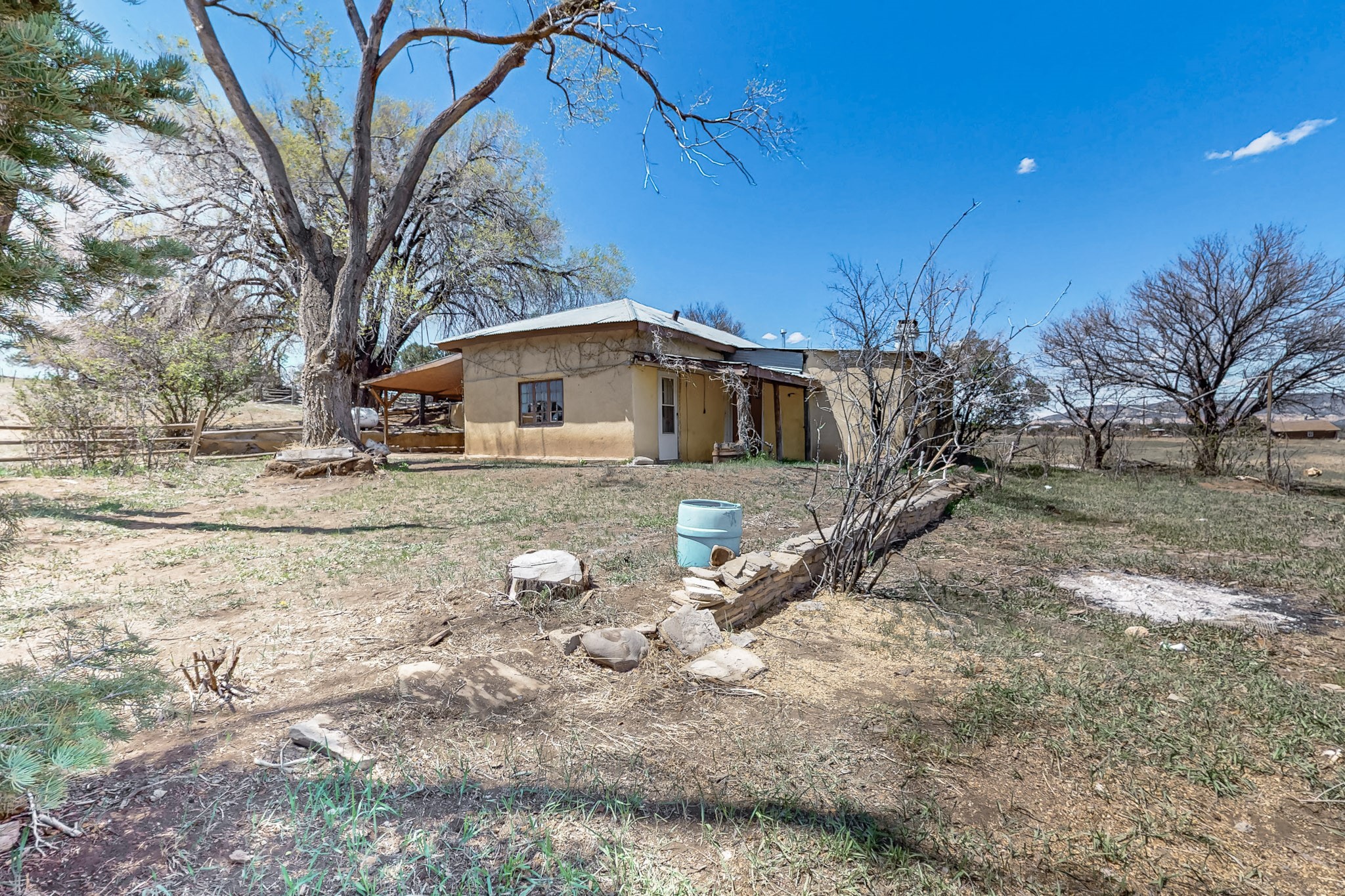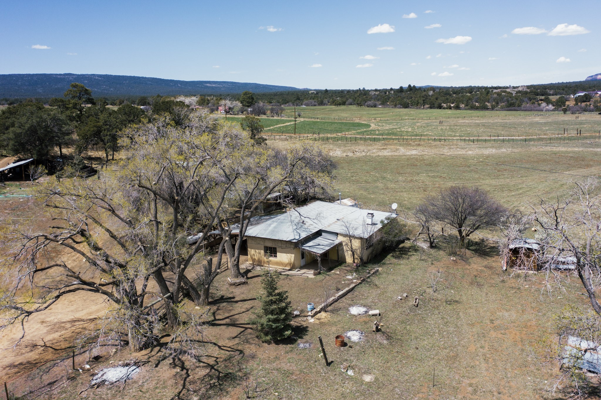 This charming, mostly adobe home on approximately 1.65 acres offers breathtaking views from La Mesa de Poleo. Gaze upon the Abiquiu Reservoir to the northeast, the iconic Cerro Pedernal, the Jemez Mountains to the east, and Mesa Alta. The picturesque Santa Teresa Church, a quintessential Northern New Mexico landmark, is just a short walk away. From this idyllic location, easy access awaits to the Rio Puerco campground, the San Pedro Wilderness, and numerous other forest campgrounds. As night falls, witness the twinkling lights of the Coyote community and a sky ablaze with stars. This home is a blank canvas for a creative mind. It features a wood-fired cooking stove (optional for use) and an electric stove. The surrounding grassy property is perfect for leisurely picnics under the trees. The property also includes a one-bay carport attached to the house, a small cabin-like structure, and a partially underground cellar ideal for canning. Embrace sustainable living with included irrigation water rights for an organic garden and an assortment of fruit trees. There's ample space for a few farm animals, complemented by a corral and an additional two-car carport situated on a small hill beside the west boundary. Country living beckons--return to basics and savor life's simple pleasures: crisp, fresh air, stunning sunrises and sunsets, unobstructed night skies, a fertile plot for a garden and farm animals, and unparalleled views. OWNER CARRY POSSIBLE.
