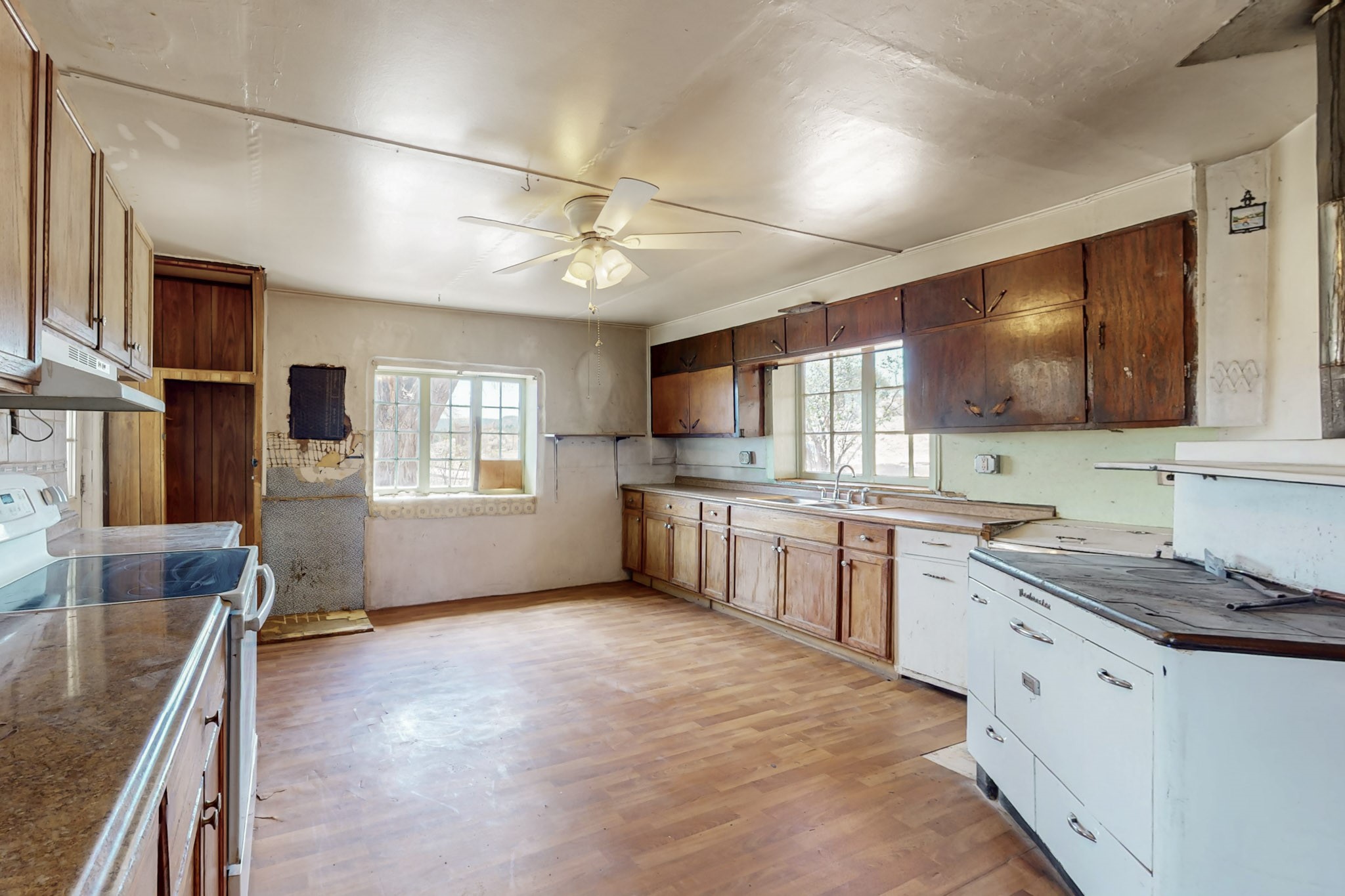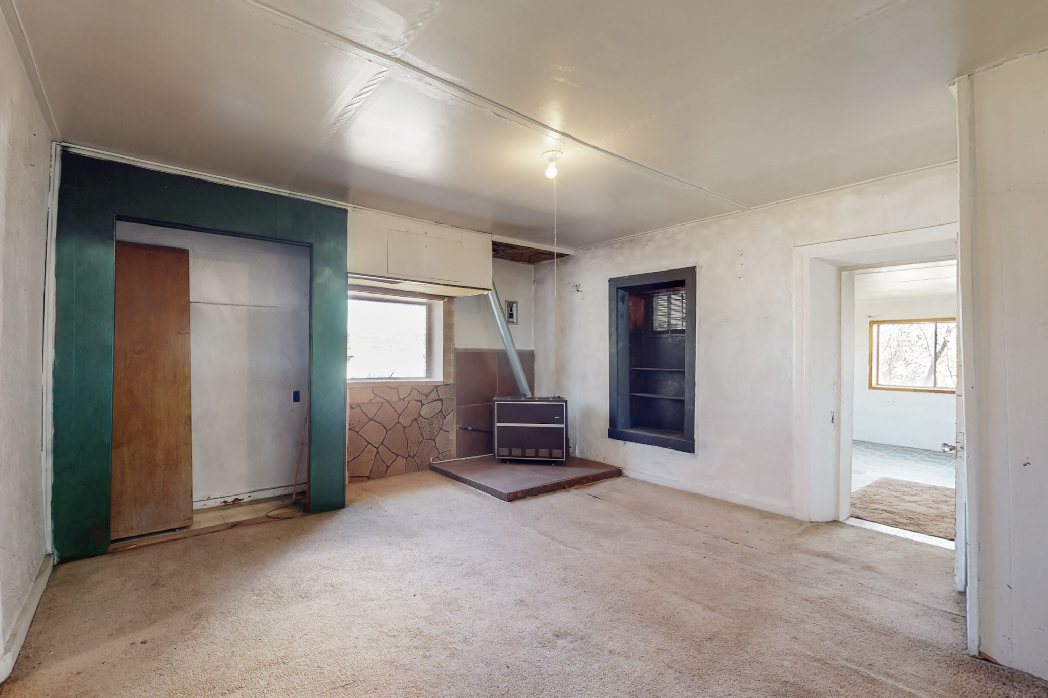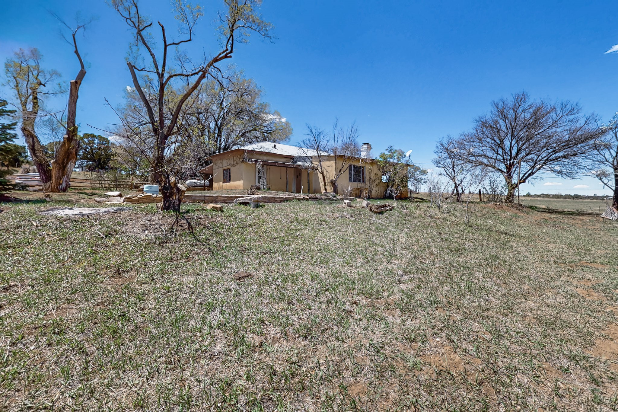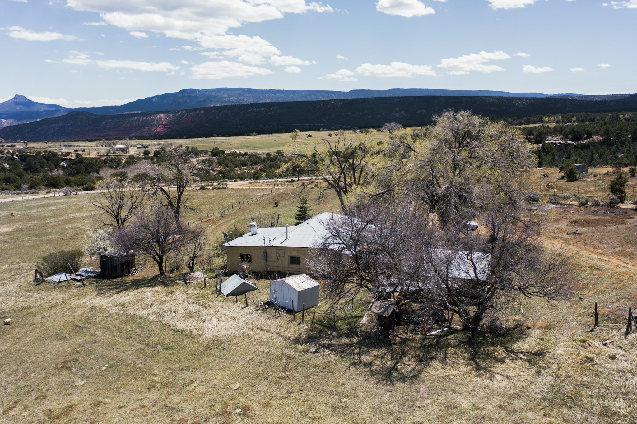 This charming, mostly adobe home on approximately 1.65 acres offers breathtaking views from La Mesa de Poleo. Gaze upon the Abiquiu Reservoir to the northeast, the iconic Cerro Pedernal, the Jemez Mountains to the east, and Mesa Alta. The picturesque Santa Teresa Church, a quintessential Northern New Mexico landmark, is just a short walk away. From this idyllic location, easy access awaits to the Rio Puerco campground, the San Pedro Wilderness, and numerous other forest campgrounds. As night falls, witness the twinkling lights of the Coyote community and a sky ablaze with stars. This home is a blank canvas for a creative mind. It features a wood-fired cooking stove (optional for use) and an electric stove. The surrounding grassy property is perfect for leisurely picnics under the trees. The property also includes a one-bay carport attached to the house, a small cabin-like structure, and a partially underground cellar ideal for canning. Embrace sustainable living with included irrigation water rights for an organic garden and an assortment of fruit trees. There's ample space for a few farm animals, complemented by a corral and an additional two-car carport situated on a small hill beside the west boundary. Country living beckons--return to basics and savor life's simple pleasures: crisp, fresh air, stunning sunrises and sunsets, unobstructed night skies, a fertile plot for a garden and farm animals, and unparalleled views. OWNER CARRY POSSIBLE.