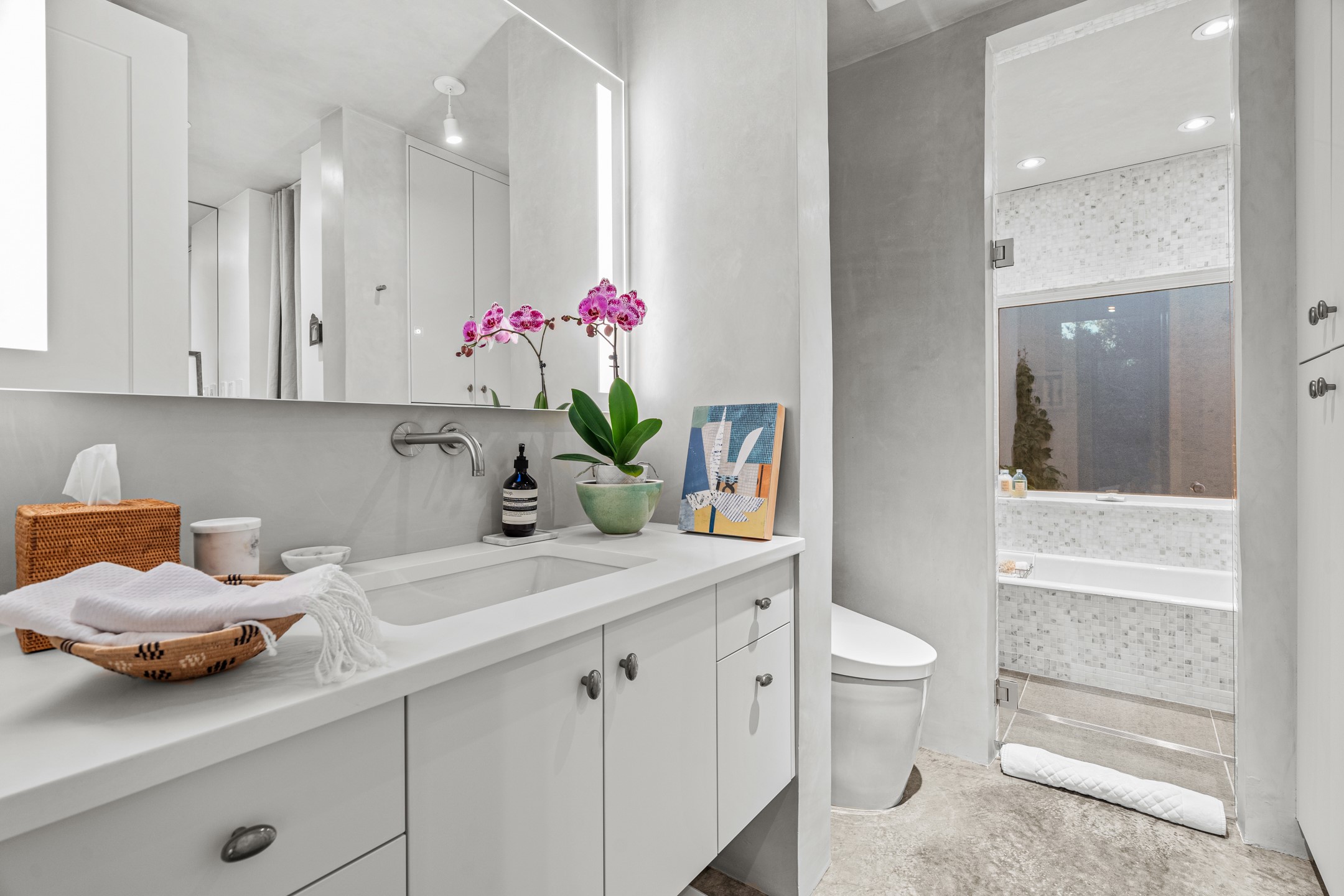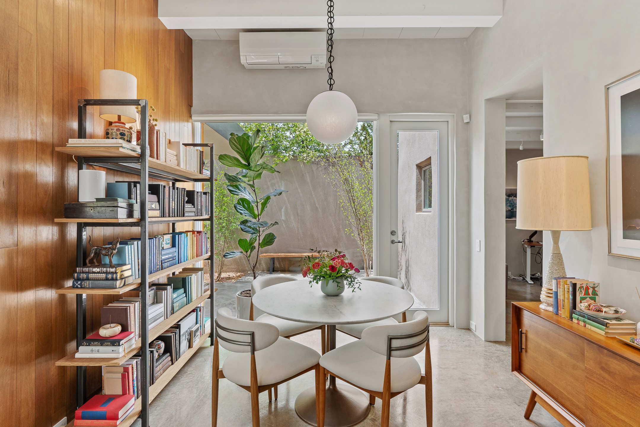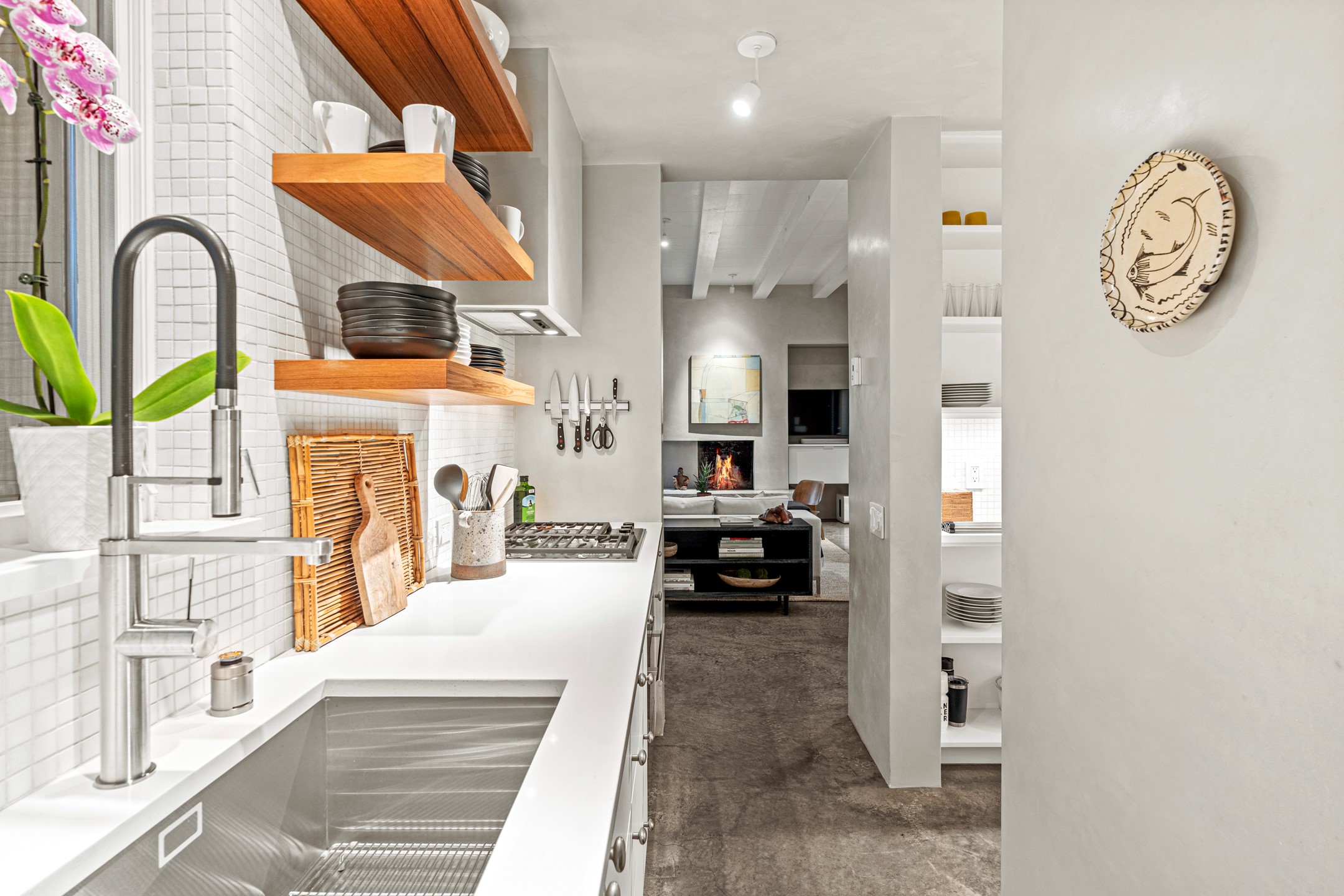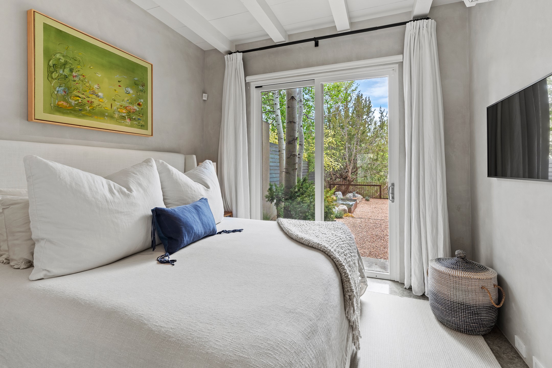 Welcome to the "Pearl House"--a stunning contemporary residence designed by acclaimed architect Trey Jordan as his personal home. This exceptional property seamlessly fuses bold architectural design with modern comforts and relaxed livability. Over the past three years, it has undergone extensive renovations featuring top-of-the-line appliances, fixtures, and finishes. Set on a private 0.29-acre lot with sweeping views of Picacho and Atalaya Peaks, the property includes a main residence with 2-bedrooms and 2-baths, plus a 2-car garage. Attached to the garage is a recently renovated heated studio/office space, along with a storage room and workshop area, offering versatile functionality for creative or active lifestyles. The outdoor spaces are equally impressive, with a tranquil dining area complete with a fireplace and a fountain--perfect for entertaining or quiet reflection. Nature lovers will appreciate the nearby Santa Fe River Trail and the renowned Dale Ball Trail System, offering miles of scenic hiking and biking. Included in the sale are approved plans for a second residence, part of the original vision for the property, designed by Trey Jordan, providing an exciting opportunity for future expansion. Ideally located within walking distance of historic Canyon Road and minutes from the cultural, culinary, and artistic attractions of downtown Santa Fe, Pearl House is a rare architectural gem in an unparalleled setting.