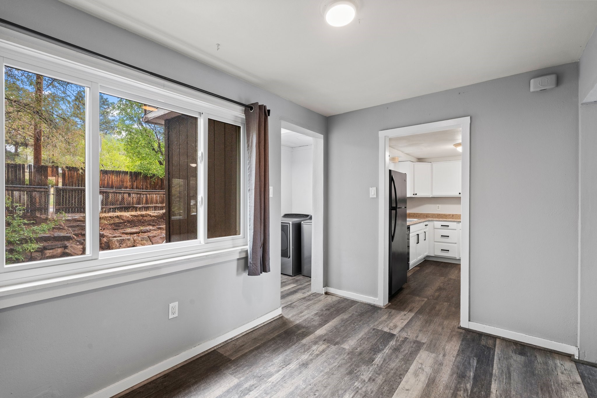 Come check out this updated 3-bedroom, 1-bathroom condo that's close to town, Mountain Elementary School, and Urban Park! The kitchen was recently updated with a dishwasher, a new gas range, continuous cabinets all the way around, and modern finishes. The bathroom features tasteful updates for a clean, contemporary feel. Newer vinyl flooring downstairs and carpeting added upstairs for extra warmth and comfort in the bedrooms and hallway. Newer windows. A thoughtful laundry room addition improved function and added storage space by moving the washer out of the kitchen and bringing the dryer indoors. A newer tankless water heater ensures energy-efficient living, and backyard access from North Rd. adds convenience. Mountain school and Urban Park are both less than a 10th of mile away. Super close. Bring an offer!