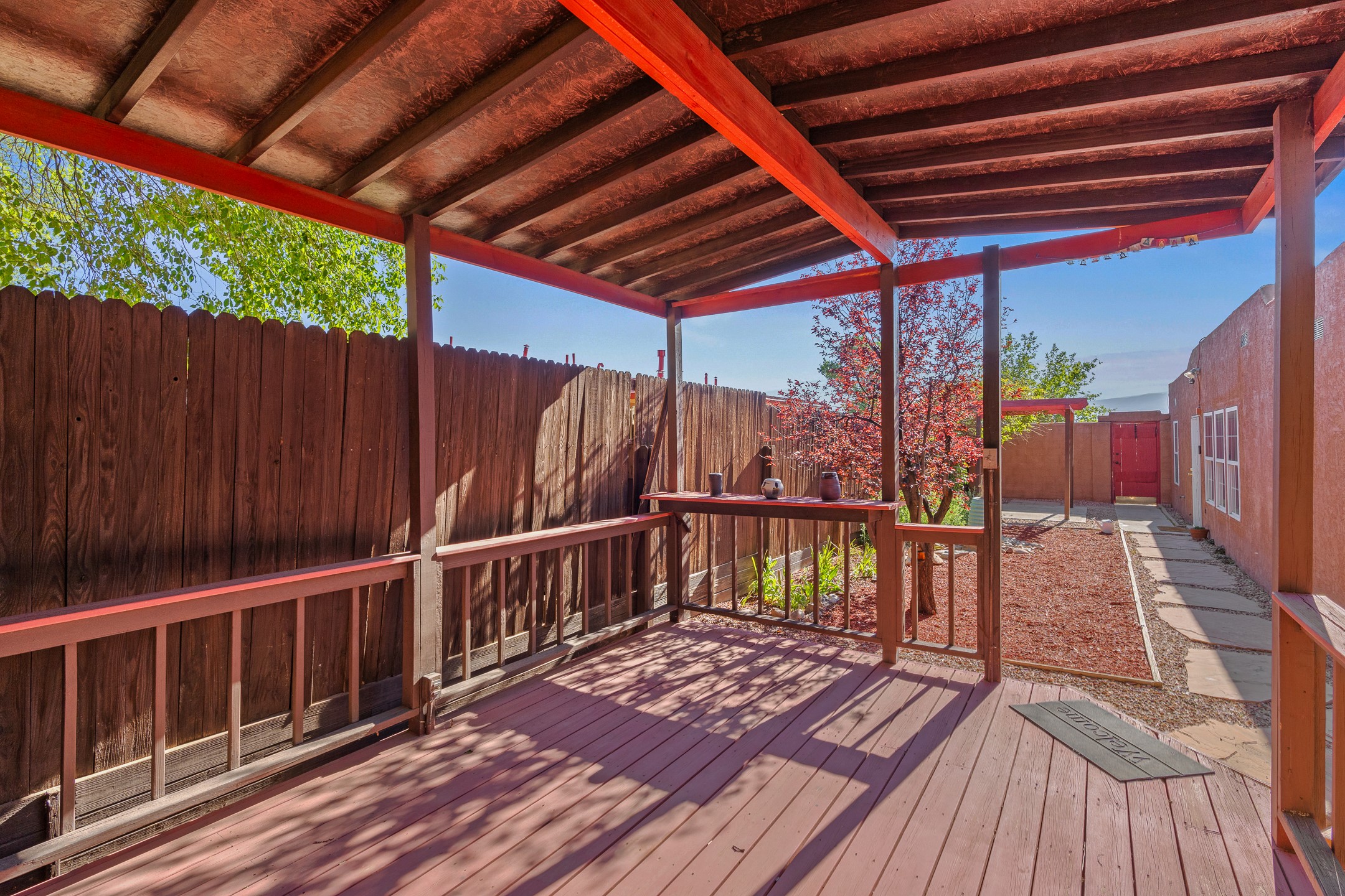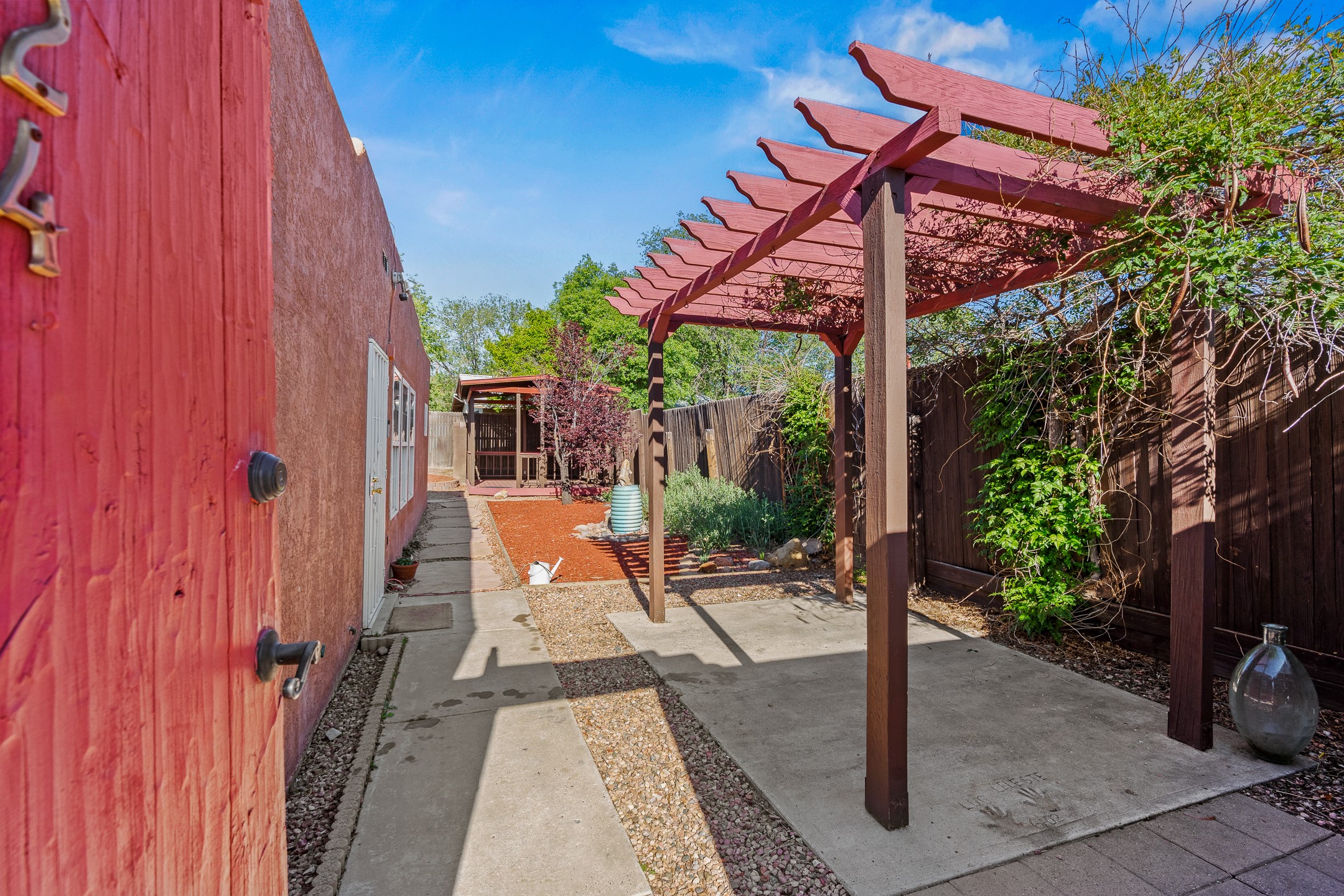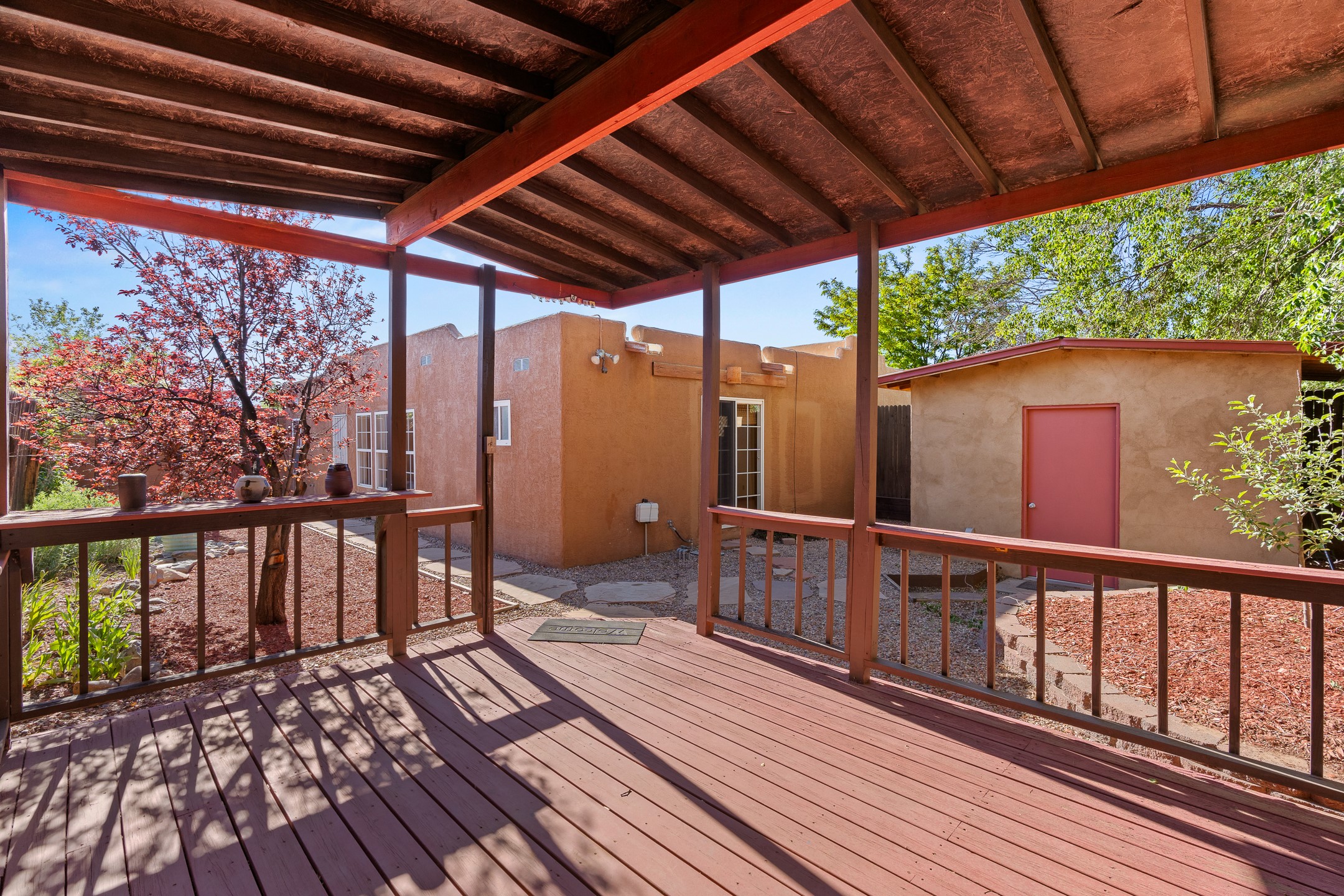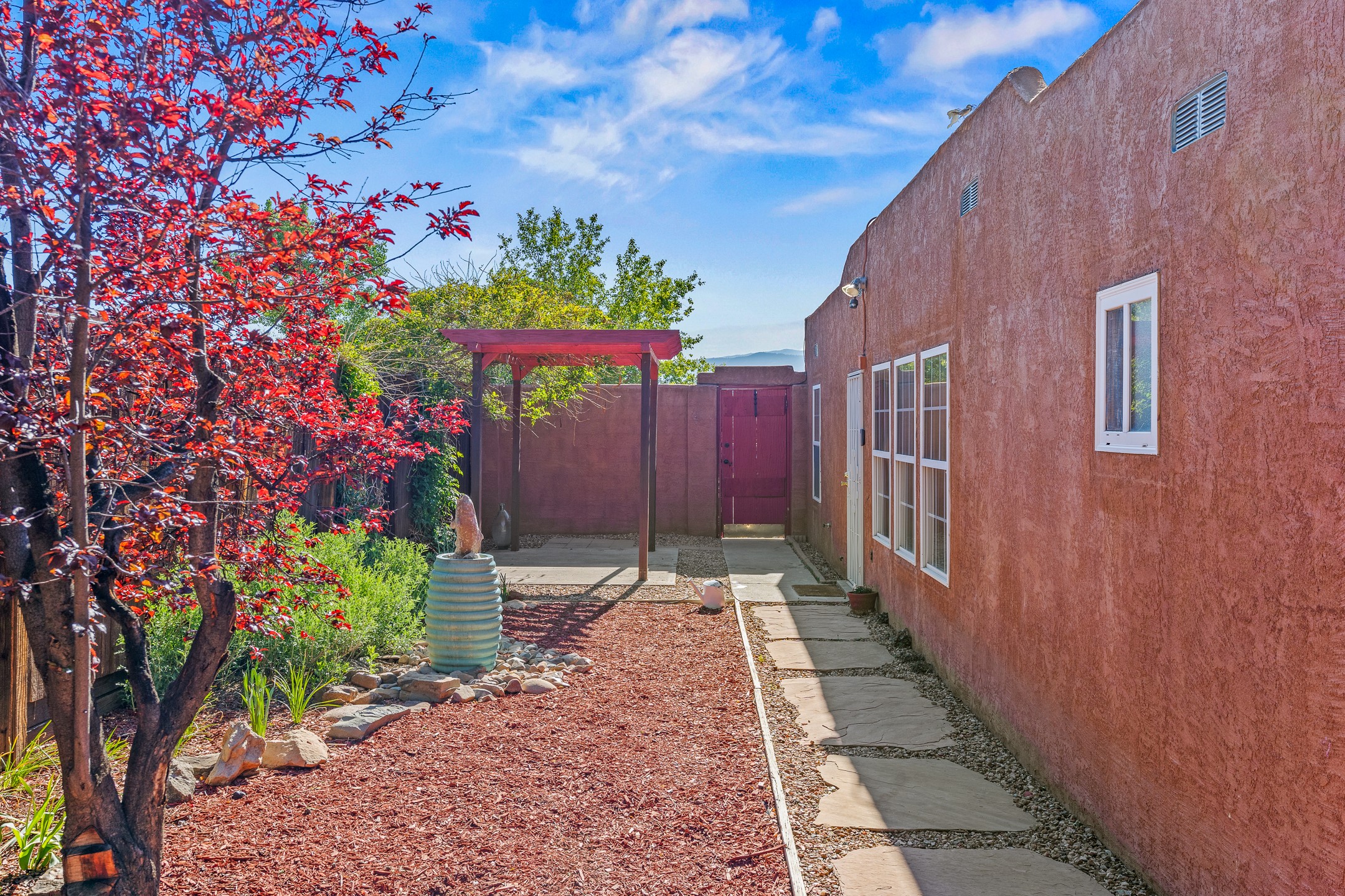 Welcome to a charming home in a convenient location! This 3-bedroom, 2-bathroom residence offers the perfect blend of comfort and convenience. As you step through the gated courtyard, you'll be greeted by a sense of serenity and charm. There are fruit trees and plantings, and even a beautiful fountain. The split floorplan allows everyone to meet in the middle - the living room and the kitchen, while providing nice separation between the primary and secondary bedrooms. Outside there is a newer deck just waiting to host your future hot tub and cool outdoor lighting. For those who love to tinker or garden, a spacious storage shed provides ample room for tool storage. Convenience is key with this home, as it's situated right across the street from a small park and is close to shopping, dining, and the Santa Fe Place Mall. Don't miss your chance to own this lovely home. Make an offer today and get set up for easy summer living!