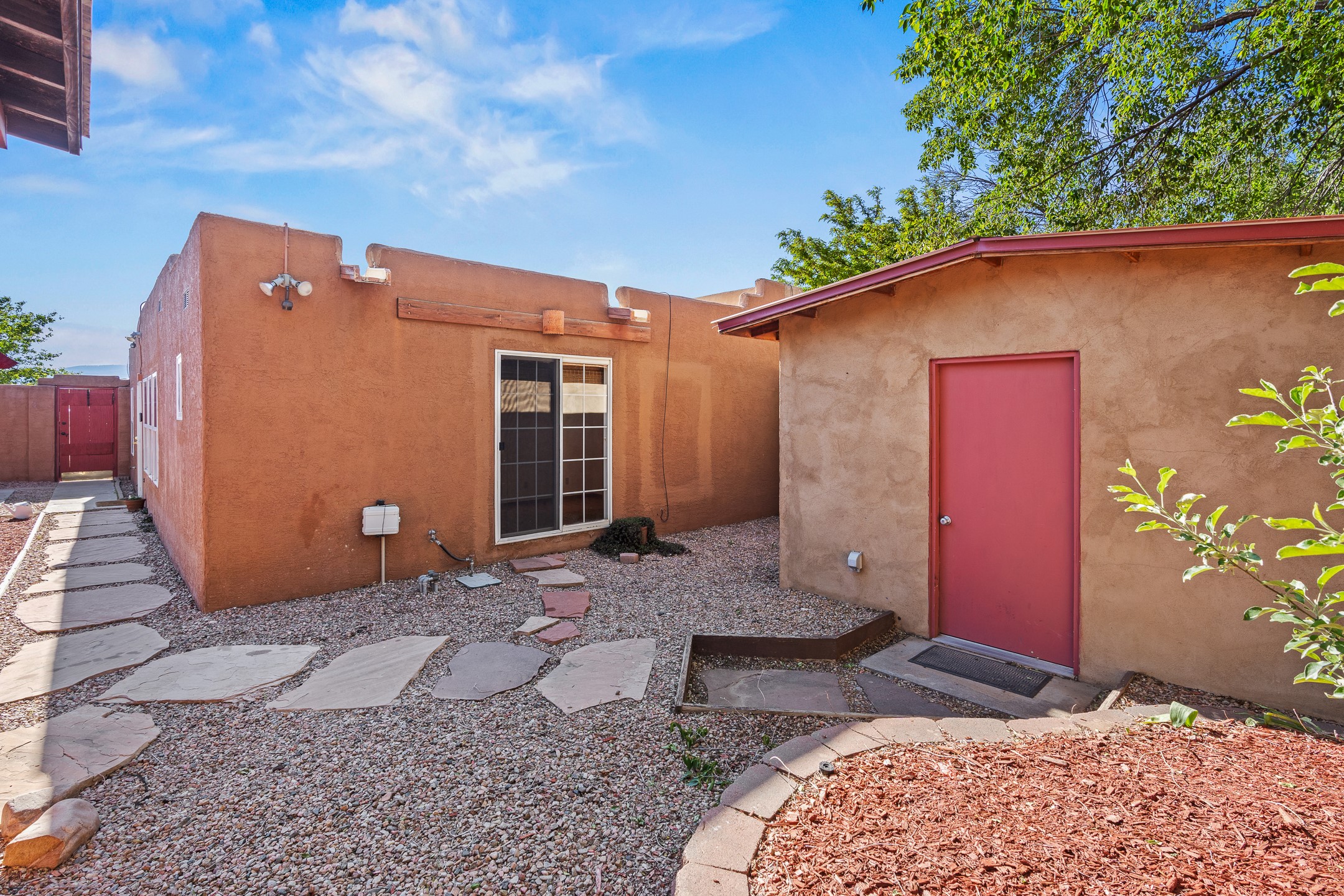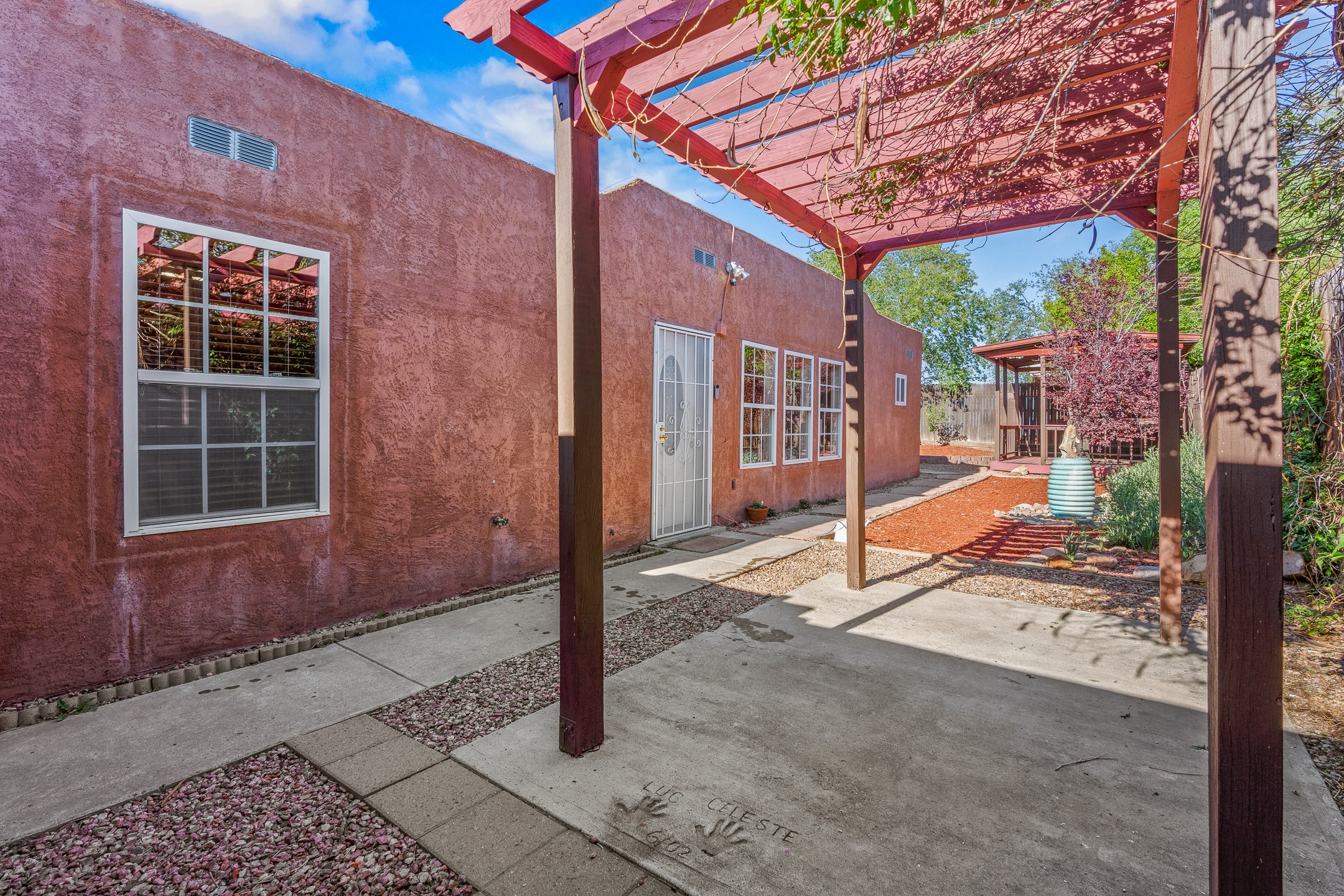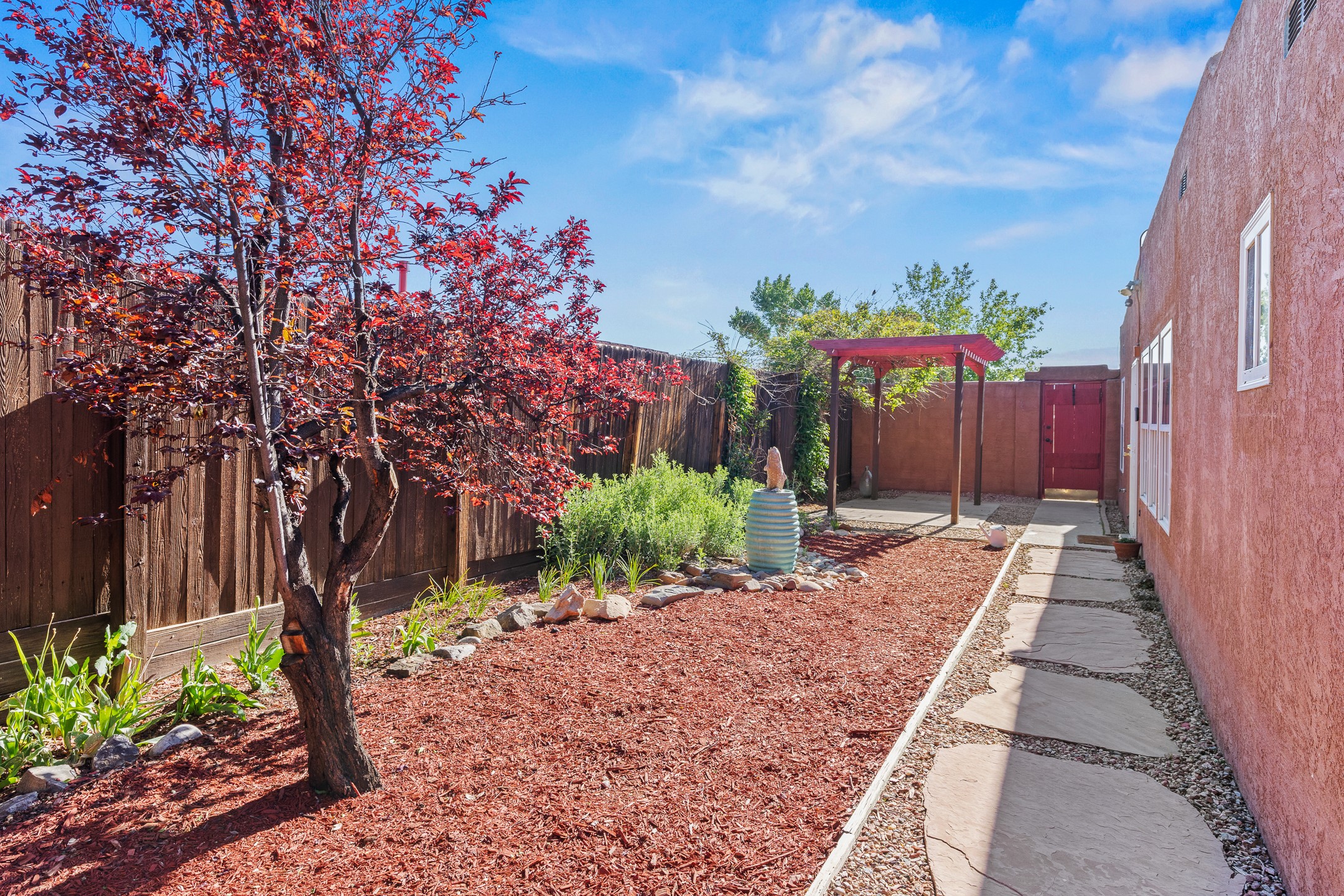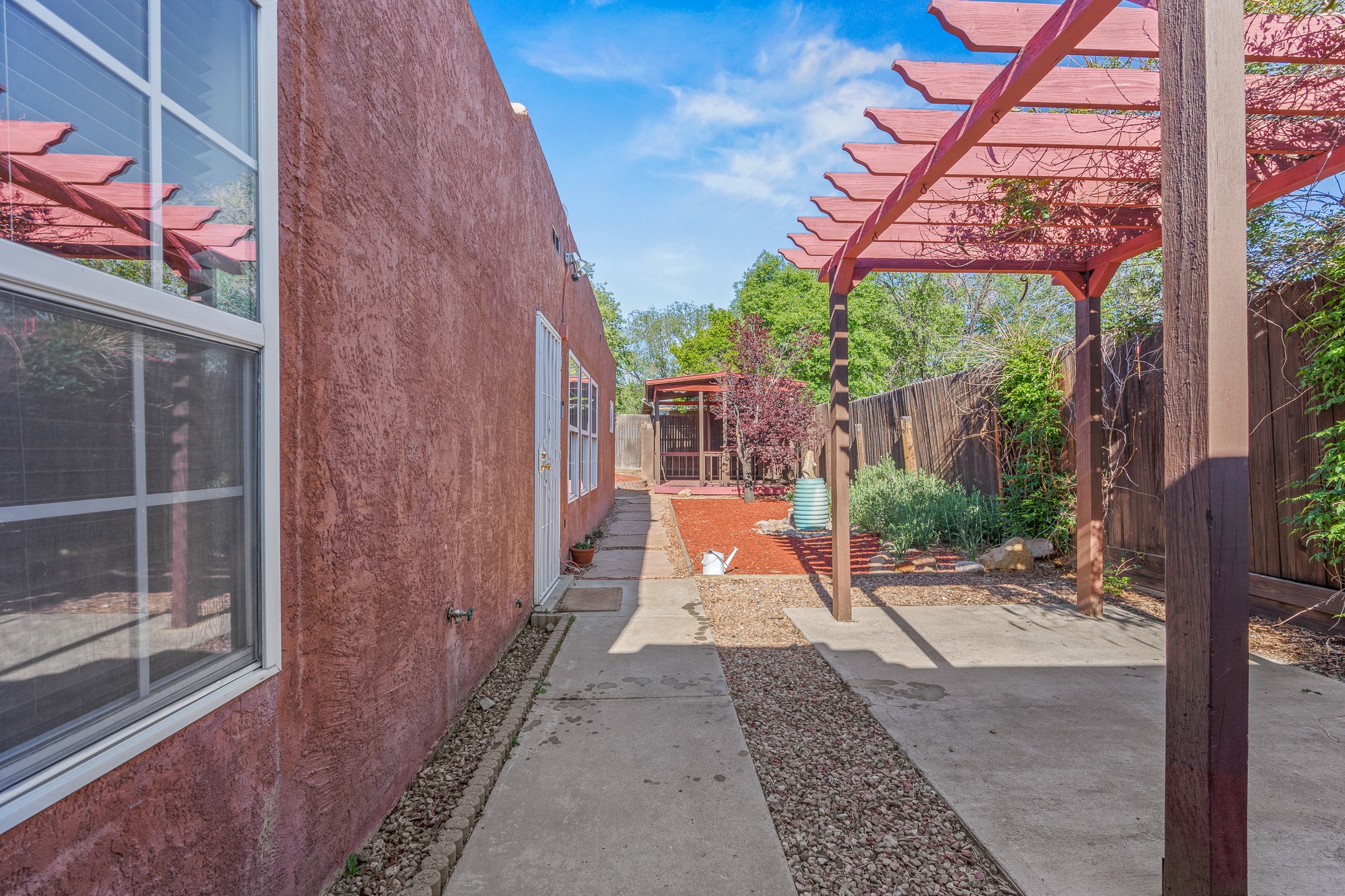 Welcome to a charming home in a convenient location! This 3-bedroom, 2-bathroom residence offers the perfect blend of comfort and convenience. As you step through the gated courtyard, you'll be greeted by a sense of serenity and charm. There are fruit trees and plantings, and even a beautiful fountain. The split floorplan allows everyone to meet in the middle - the living room and the kitchen, while providing nice separation between the primary and secondary bedrooms. Outside there is a newer deck just waiting to host your future hot tub and cool outdoor lighting. For those who love to tinker or garden, a spacious storage shed provides ample room for tool storage. Convenience is key with this home, as it's situated right across the street from a small park and is close to shopping, dining, and the Santa Fe Place Mall. Don't miss your chance to own this lovely home. Make an offer today and get set up for easy summer living!