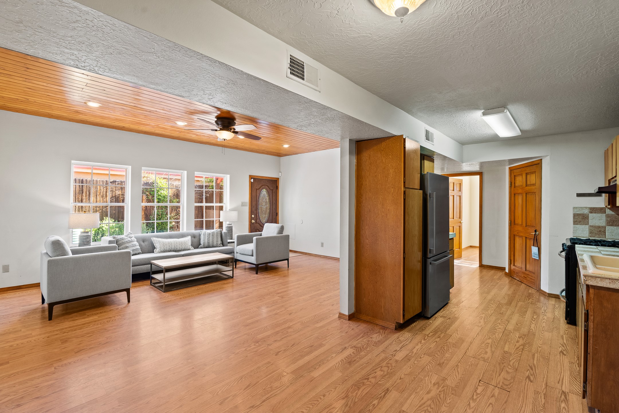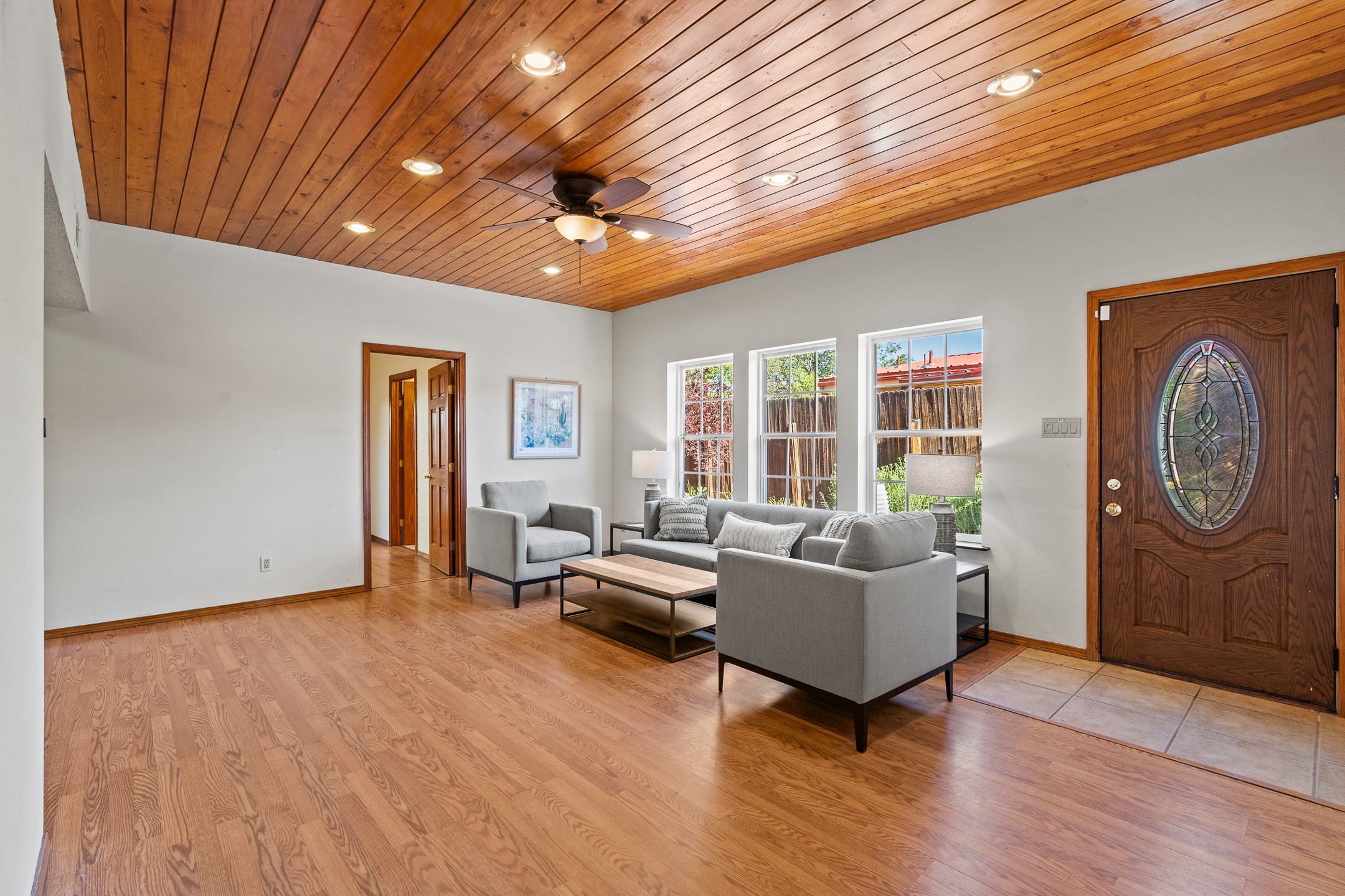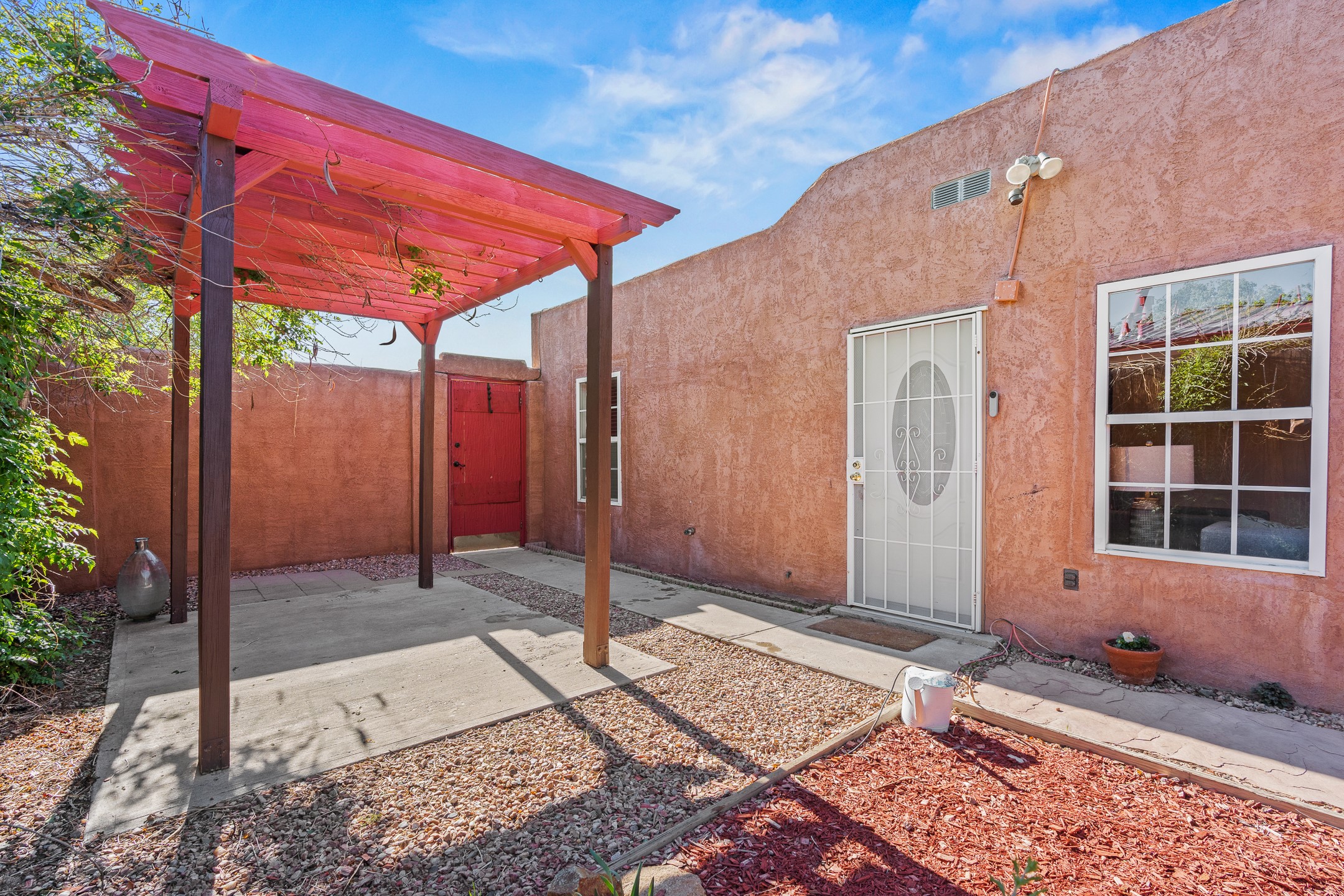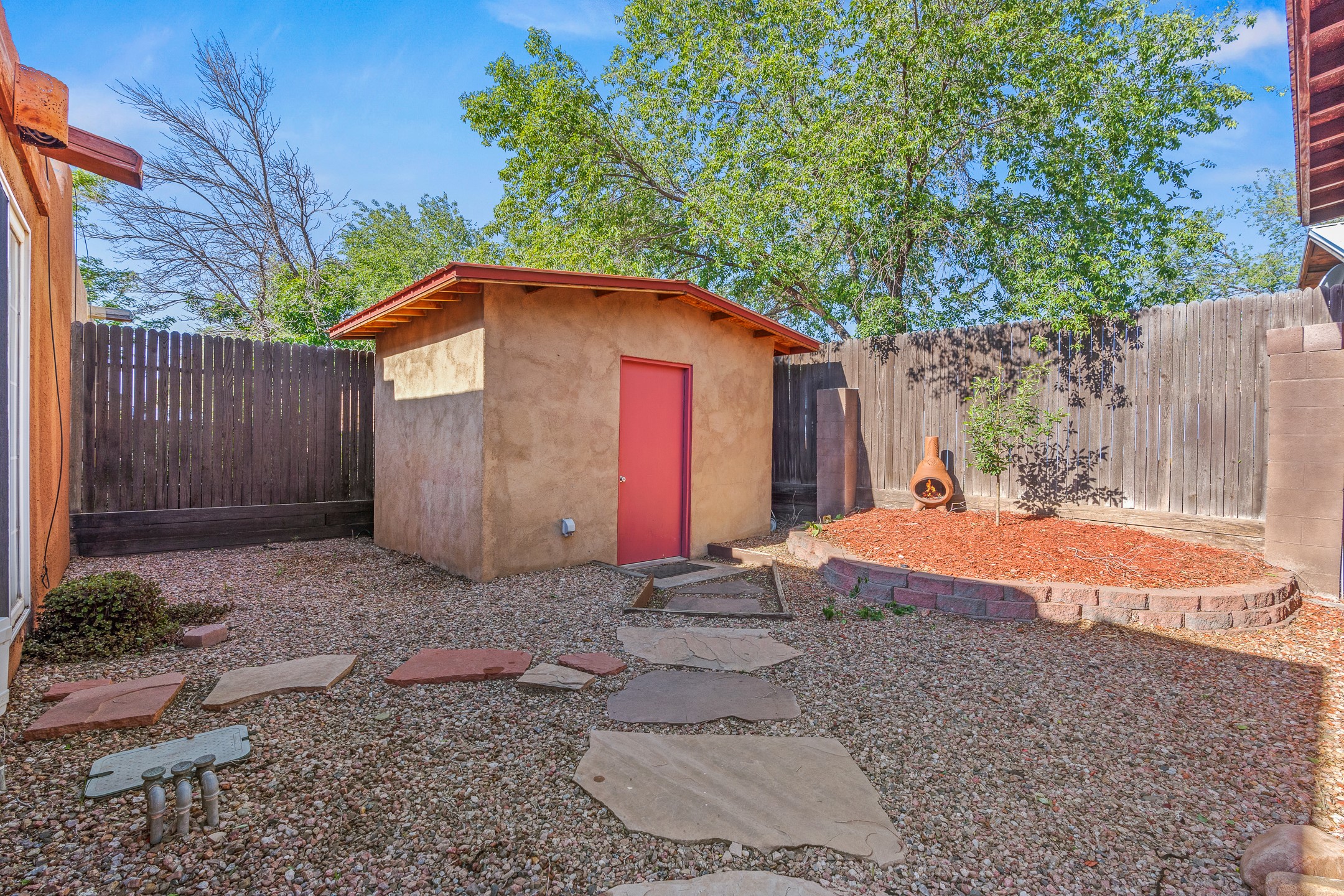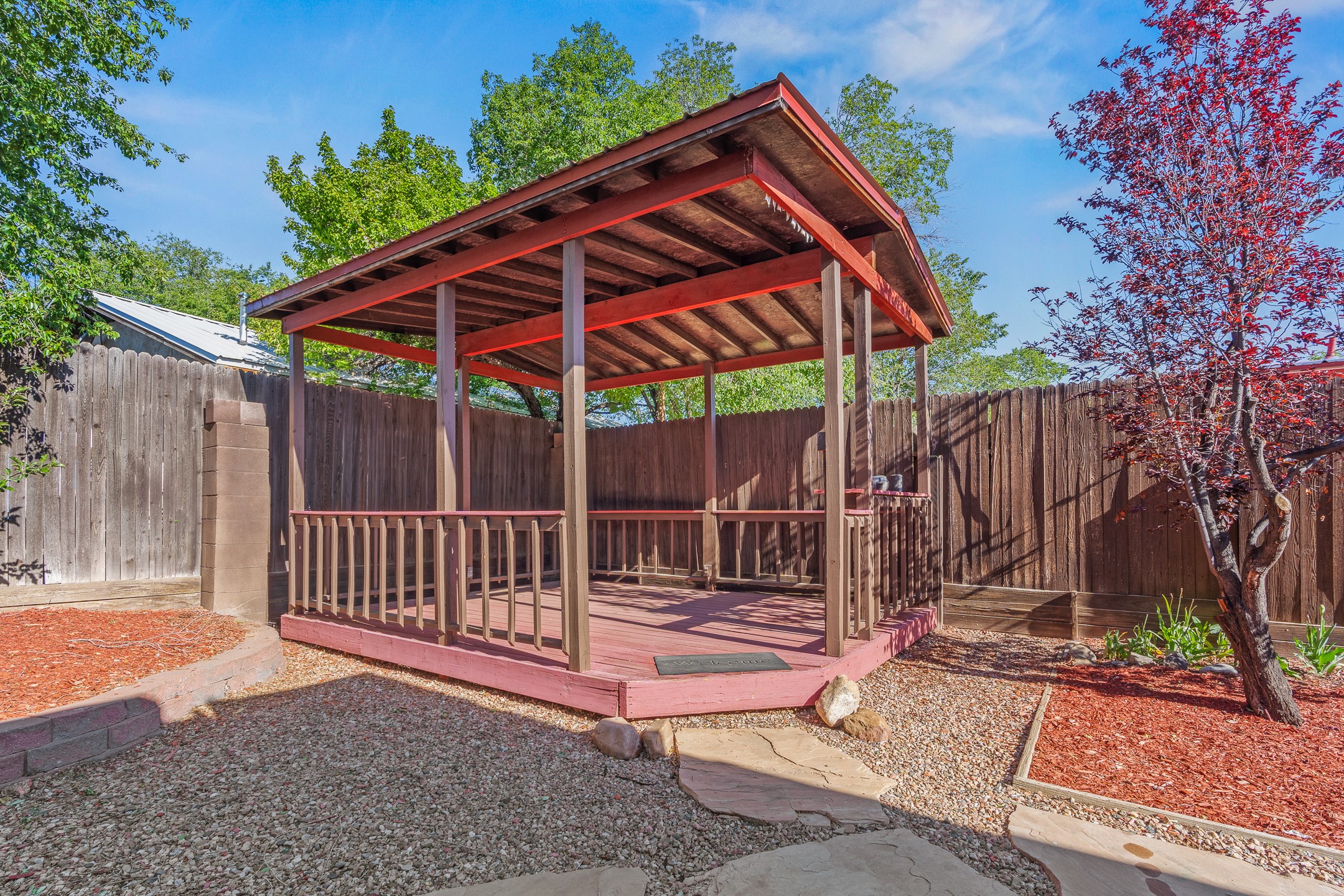 Welcome to a charming home in a convenient location! This 3-bedroom, 2-bathroom residence offers the perfect blend of comfort and convenience. As you step through the gated courtyard, you'll be greeted by a sense of serenity and charm. There are fruit trees and plantings, and even a beautiful fountain. The split floorplan allows everyone to meet in the middle - the living room and the kitchen, while providing nice separation between the primary and secondary bedrooms. Outside there is a newer deck just waiting to host your future hot tub and cool outdoor lighting. For those who love to tinker or garden, a spacious storage shed provides ample room for tool storage. Convenience is key with this home, as it's situated right across the street from a small park and is close to shopping, dining, and the Santa Fe Place Mall. Don't miss your chance to own this lovely home. Make an offer today and get set up for easy summer living!