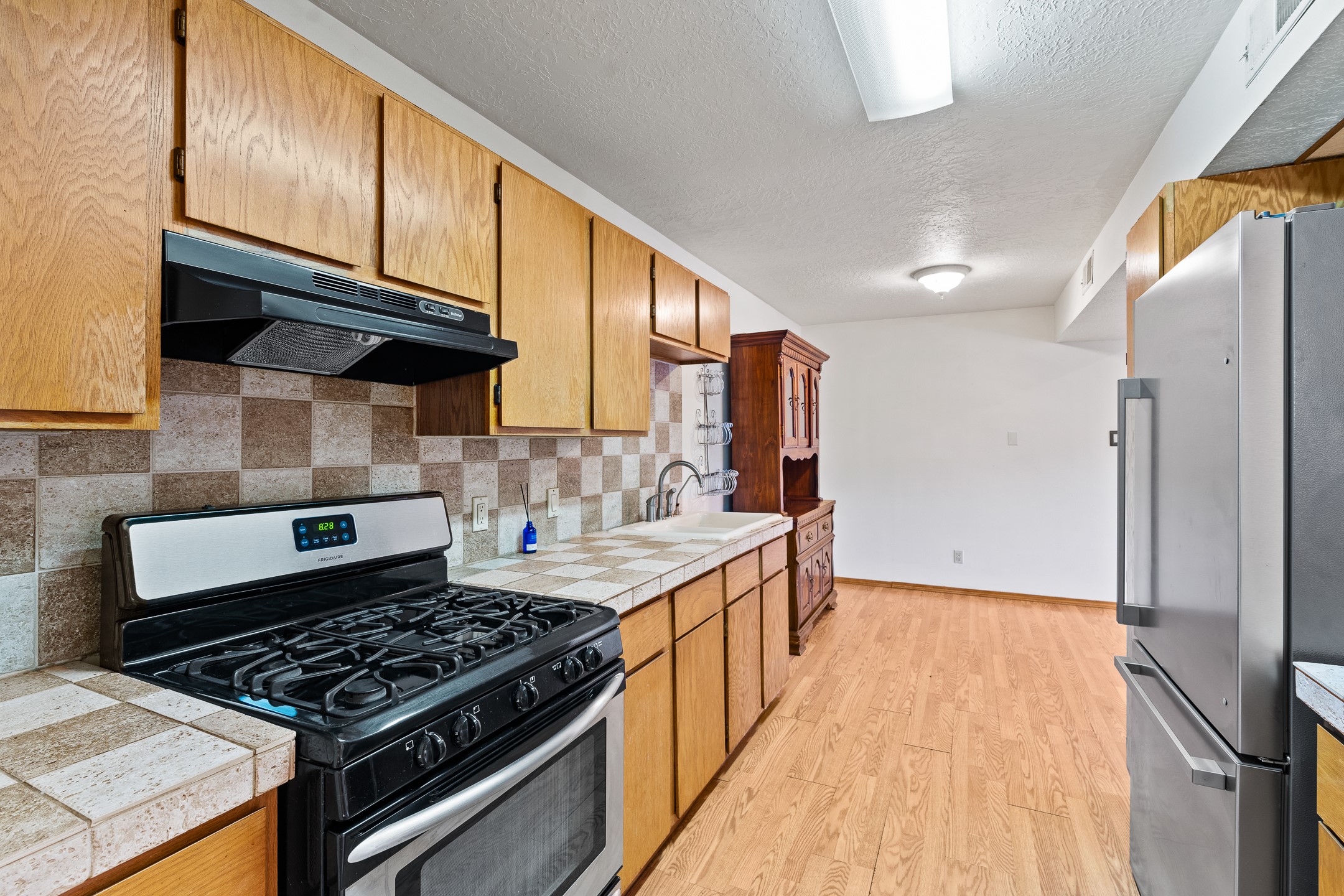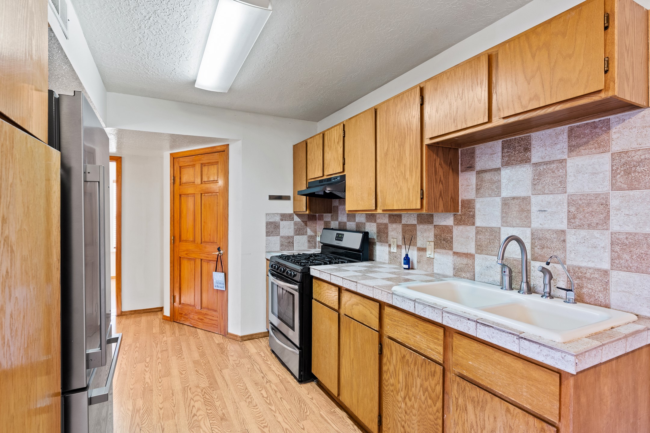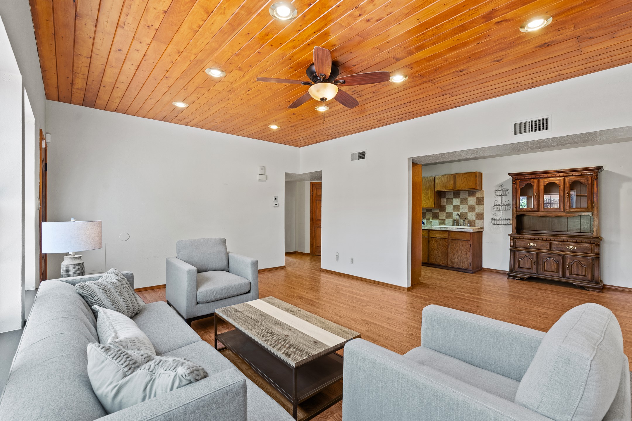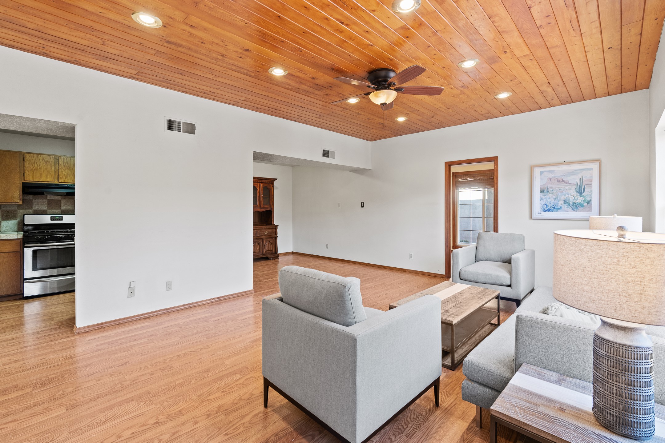 Welcome to a charming home in a convenient location! This 3-bedroom, 2-bathroom residence offers the perfect blend of comfort and convenience. As you step through the gated courtyard, you'll be greeted by a sense of serenity and charm. There are fruit trees and plantings, and even a beautiful fountain. The split floorplan allows everyone to meet in the middle - the living room and the kitchen, while providing nice separation between the primary and secondary bedrooms. Outside there is a newer deck just waiting to host your future hot tub and cool outdoor lighting. For those who love to tinker or garden, a spacious storage shed provides ample room for tool storage. Convenience is key with this home, as it's situated right across the street from a small park and is close to shopping, dining, and the Santa Fe Place Mall. Don't miss your chance to own this lovely home. Make an offer today and get set up for easy summer living!