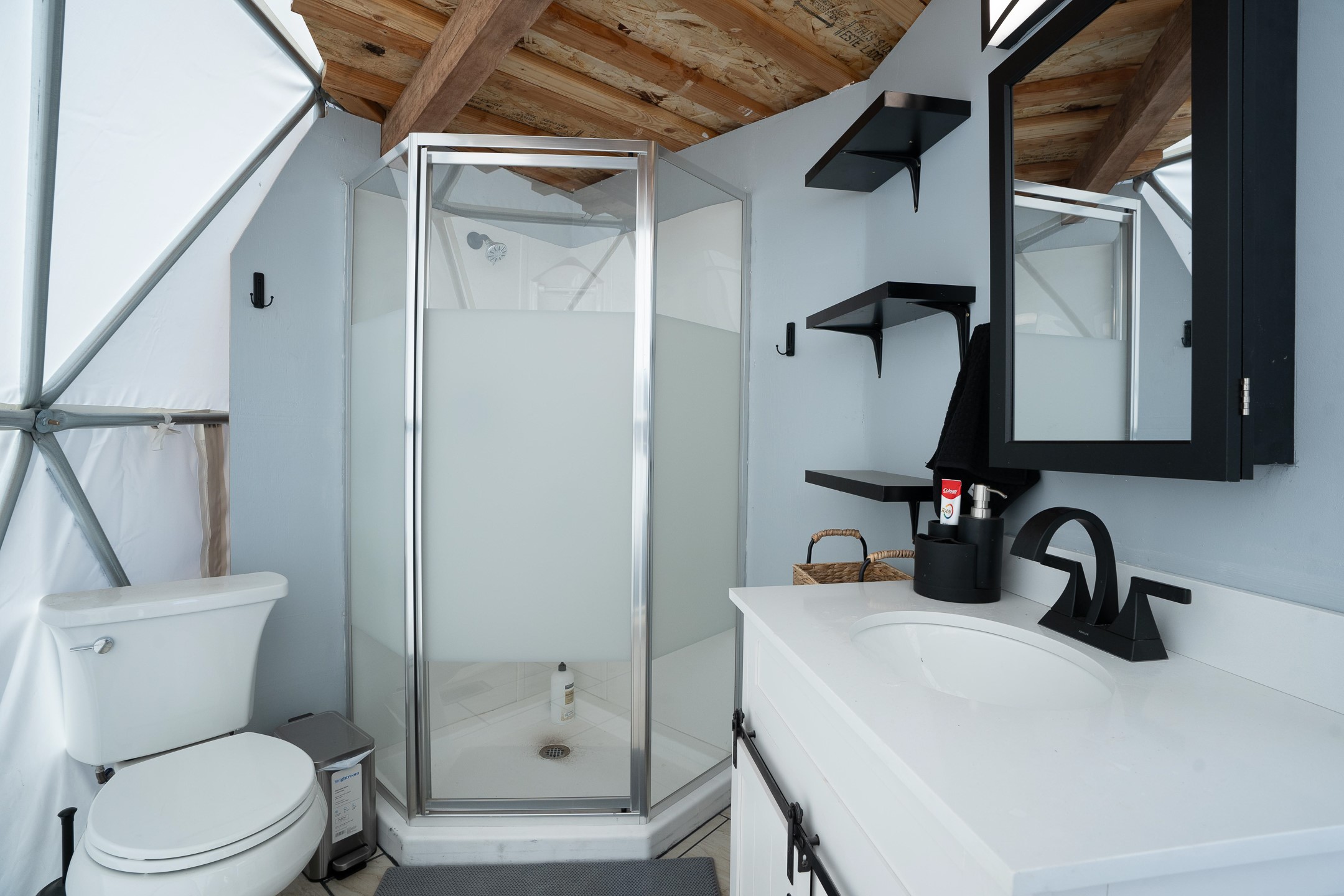 Two hundred and thirty mountain top acres with a PVC dome featuring all modern conveniences near Madrid. On two lots with two wells, this private getaway awaits the adventurous soul who wants to get above it all while still being connected. With 360 degree views from the mountain top, and the dome sited on a slope with amazing views of the Sangre de Cristo's, buyers will find this to be an incomparable view property. This far out, the Milky Way will shine bright, and the wood fired hot tub is the perfect place to stargaze from after a day of exploring the mountain. The dome has a small kitchen, bathroom, loft storage area, mini-split for heating and cooling, a luxurious glamping hideout or a cozy full time home. The solar system is modern and robust, and sewage is handled by an innovative bio-gas system. Closer than it feels, the property is just a half mile from the pavement, but that half mile is a steep and rocky climb, and a 4x4 with some clearance is recommended.