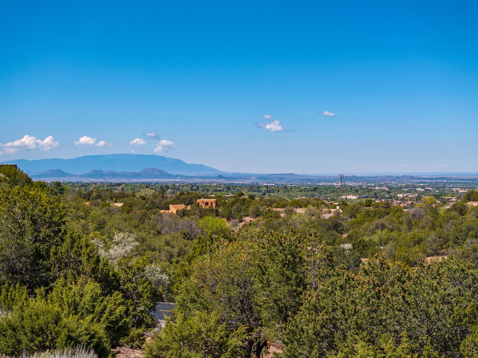 Fantastic development opportunity in the exclusive and conveniently located Canada Ancha Subdivision. With excellent views to the Sandia, Ortiz and Jemez Mountains, this lot has a relatively flat buildable area and gas, electric/transformer, sewer, city water/sewer all on site for added value and development ease. The Seller is also offering a nearly complete, excellent set of plans for a 2900 +/- sq/ft house created by notable local architect Sophia Marquez. The property has direct access to the abundant Dale Ball Trail System with super convenient access to Santa Fe National Forest and Santa Fe Ski Basin yet only a few minutes drive to Downtown Santa Fe.