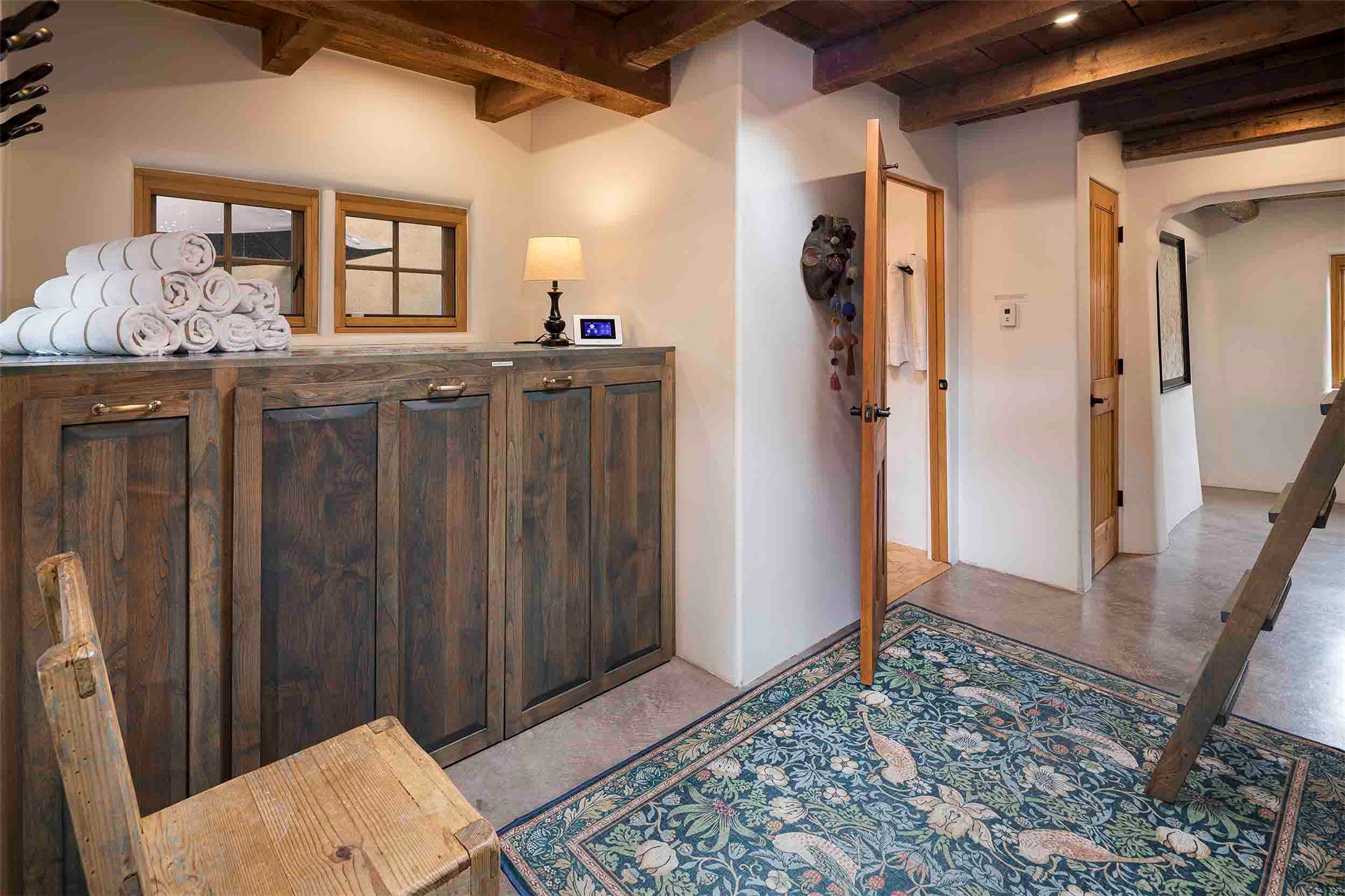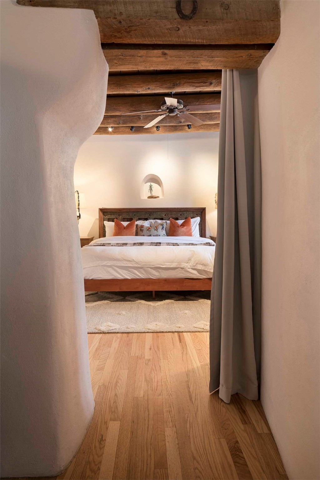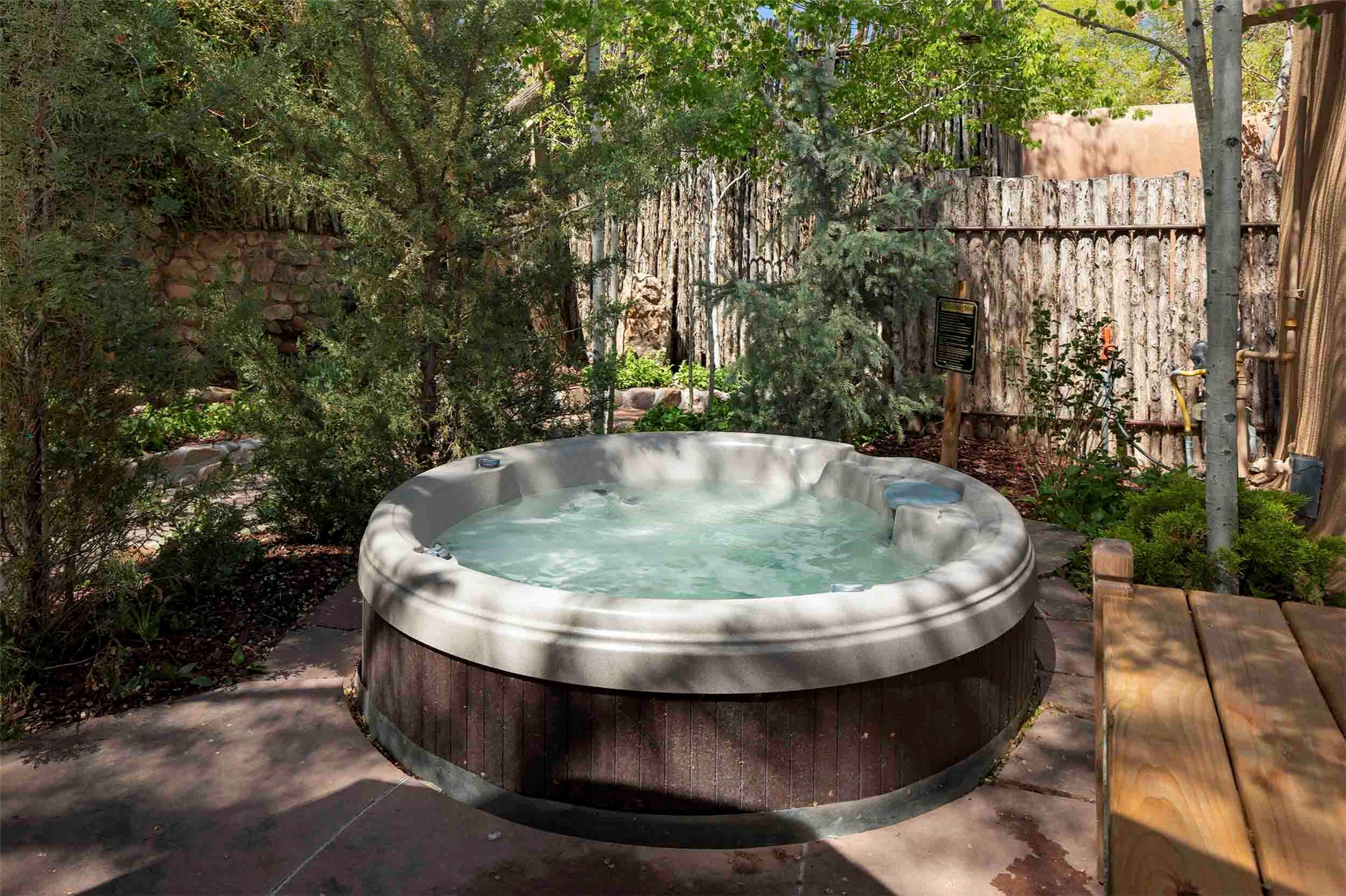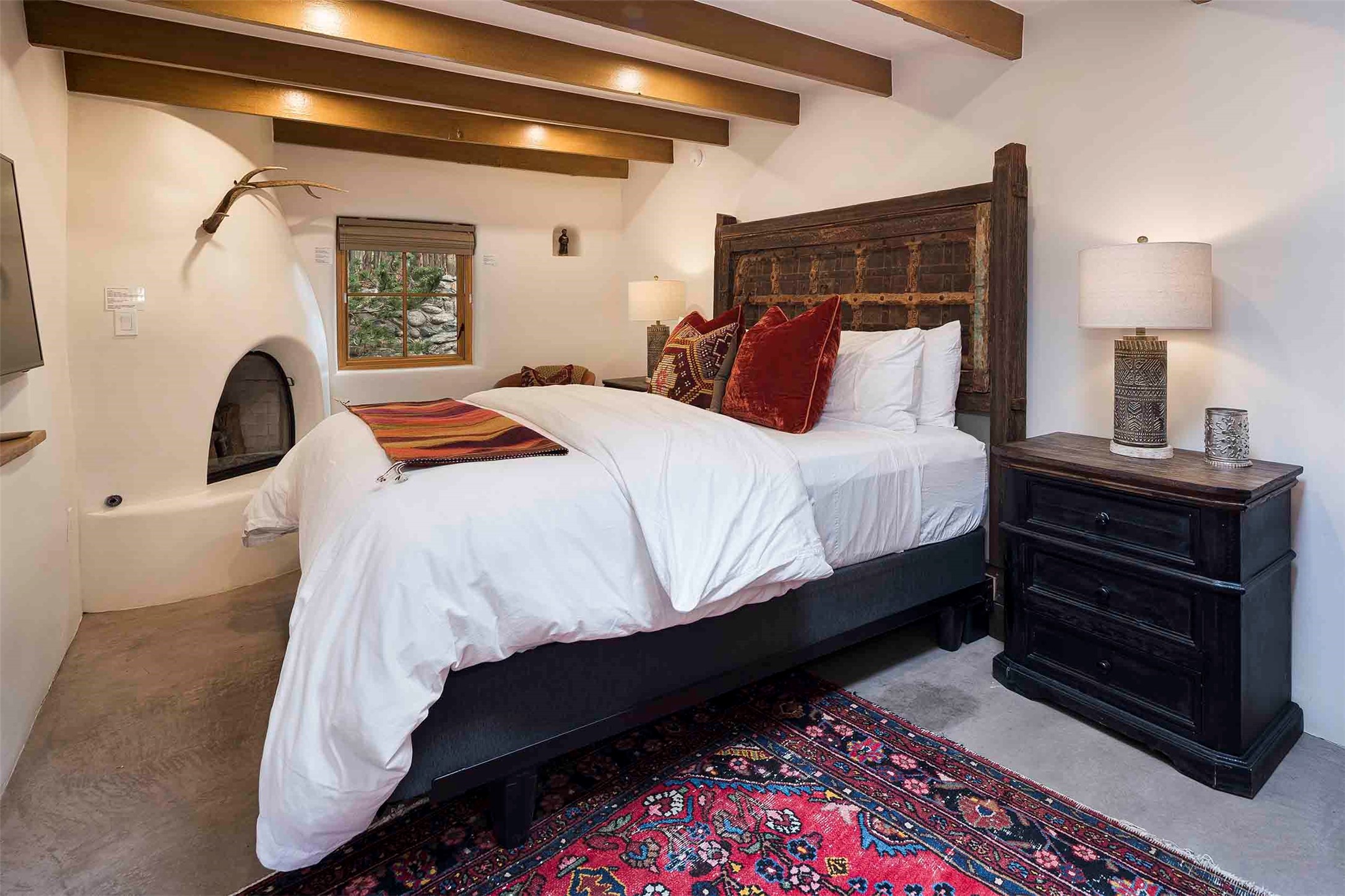 The history of Canyon Road is alive in the artisanal character of these two, Santa Fe classics. This successful Short Term Rental, set on a double lot, offers parking and storage in a desirable setting close to Patrick Smith Park. Each unique residence has been remodeled to a modern standard of comfort yet retains the imprint of its storied past. The back house, said to have started as a stable and tack shop in the early 1800s, has an Acequia Madre address and a dedicated parking spot at the top of a wooden staircase. A flagstone path and patio, with space for dining, a hot tub and a manageable dash of greenery, borders the home. The ceramic artwork of artist and former owner, Patricia Hoback, adds delightful dimension to both properties. The front house, rumored to have been a dance hall in the late 1800s, was Hoback's gallery. Between the two structures is a sheltered patio for alfresco meals and outdoor leisure, a Hoback artwork winking down from the wall. Enjoy the two dwellings for yourself, rent one for offset income, or rent both for maximum investment return. Buyers seeking history, authentic quality, and flexibility in the walkable heart of the Historic Eastside need look no further than this charismatic duet.