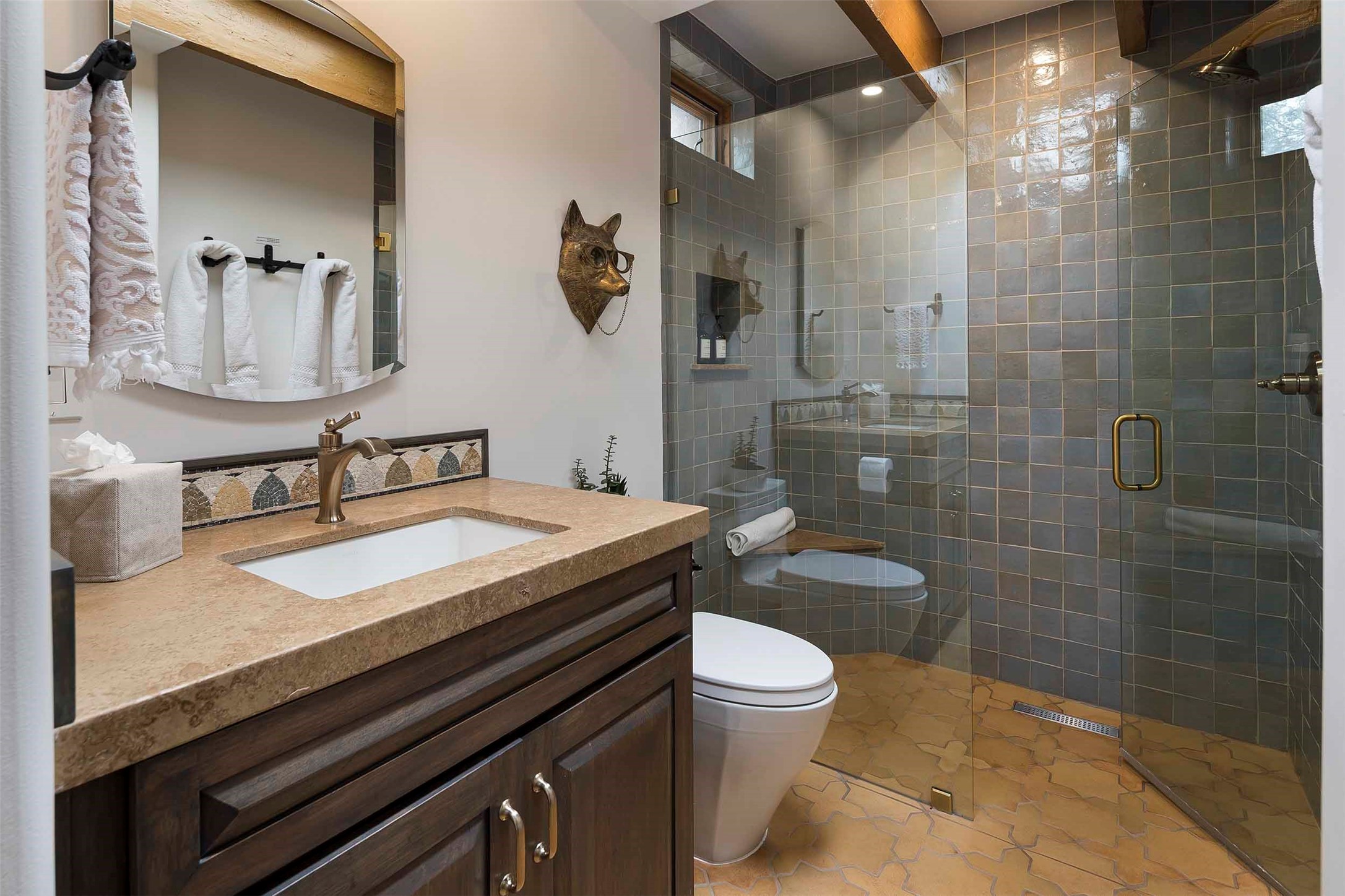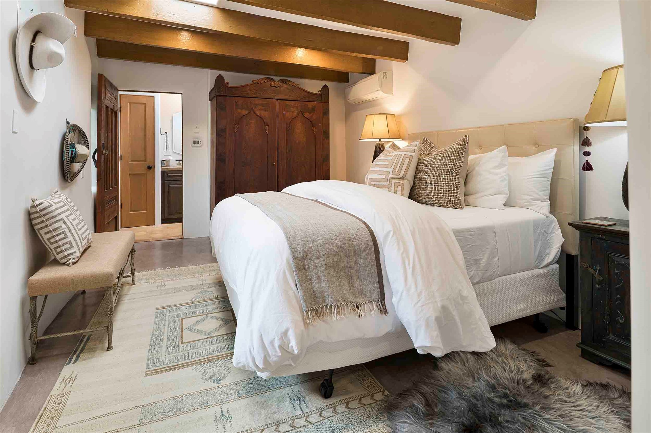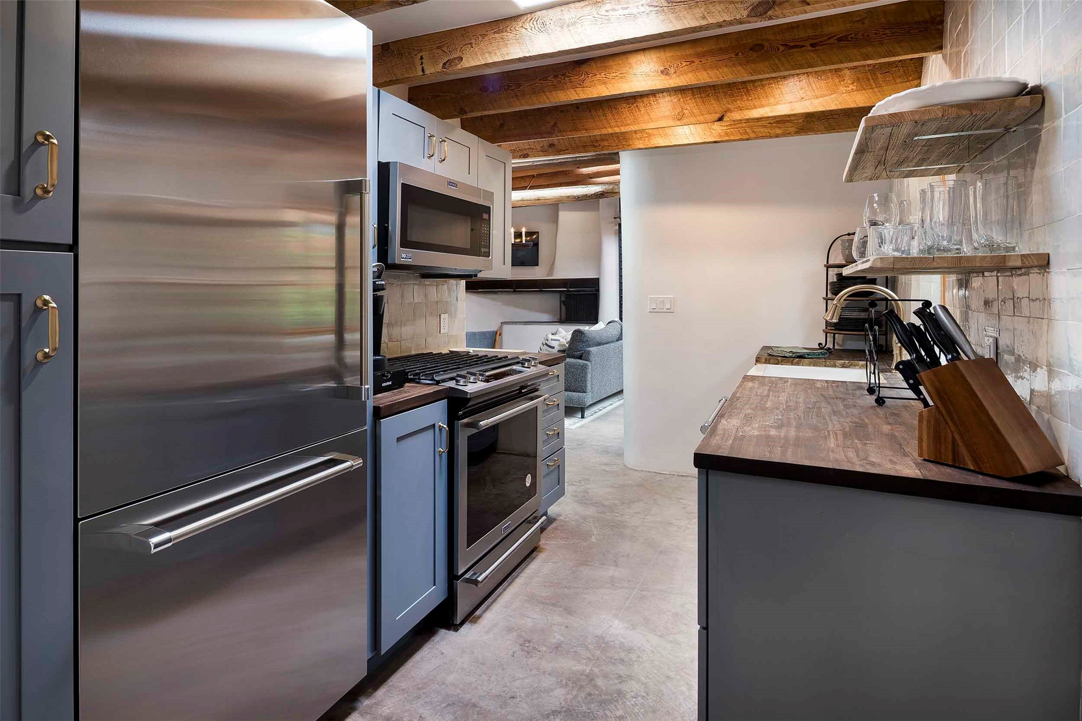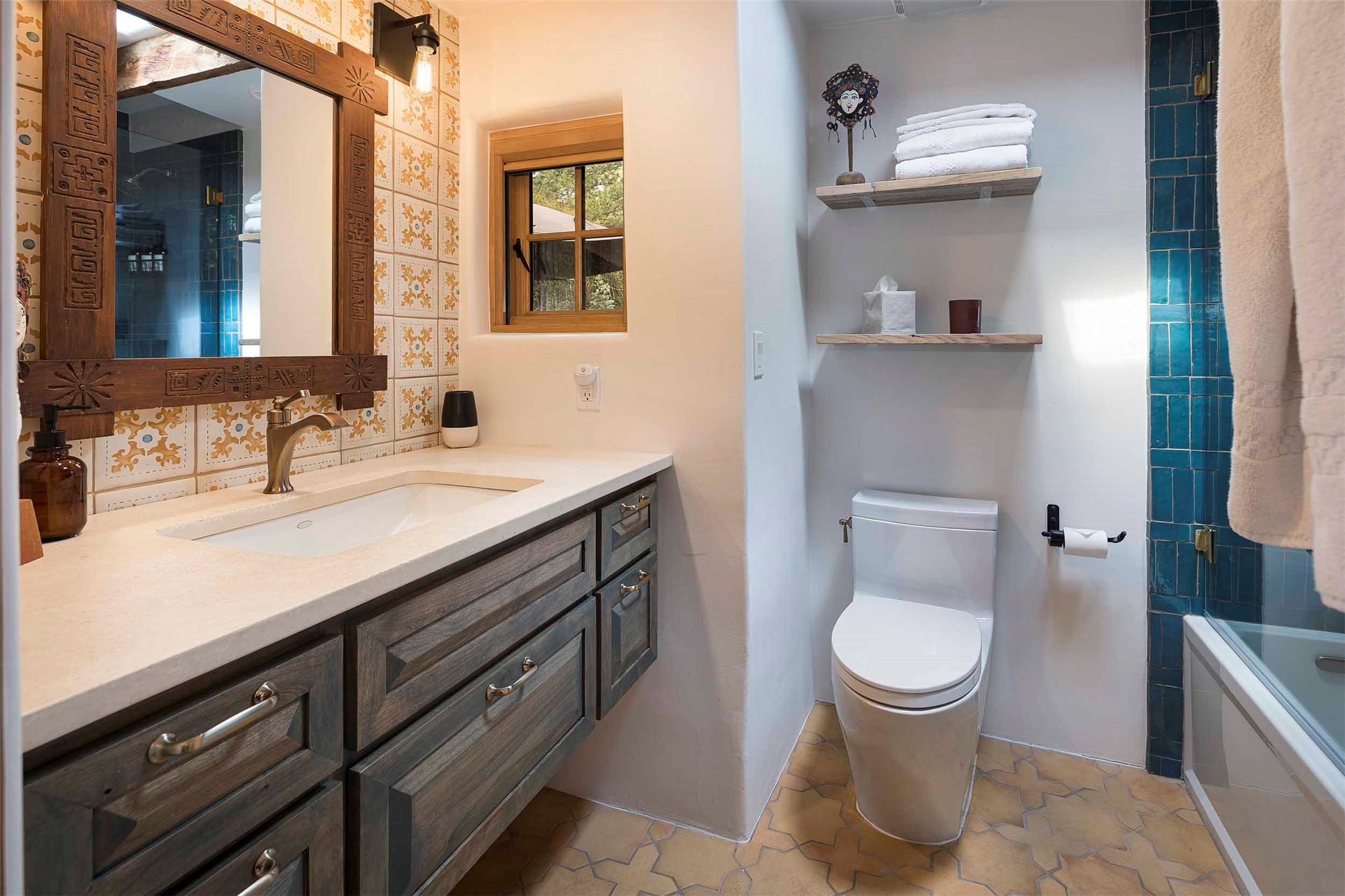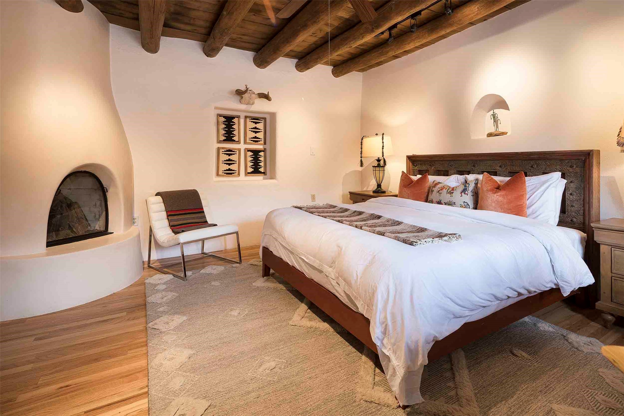 The history of Canyon Road is alive in the artisanal character of these two, Santa Fe classics. This successful Short Term Rental, set on a double lot, offers parking and storage in a desirable setting close to Patrick Smith Park. Each unique residence has been remodeled to a modern standard of comfort yet retains the imprint of its storied past. The back house, said to have started as a stable and tack shop in the early 1800s, has an Acequia Madre address and a dedicated parking spot at the top of a wooden staircase. A flagstone path and patio, with space for dining, a hot tub and a manageable dash of greenery, borders the home. The ceramic artwork of artist and former owner, Patricia Hoback, adds delightful dimension to both properties. The front house, rumored to have been a dance hall in the late 1800s, was Hoback's gallery. Between the two structures is a sheltered patio for alfresco meals and outdoor leisure, a Hoback artwork winking down from the wall. Enjoy the two dwellings for yourself, rent one for offset income, or rent both for maximum investment return. Buyers seeking history, authentic quality, and flexibility in the walkable heart of the Historic Eastside need look no further than this charismatic duet.
